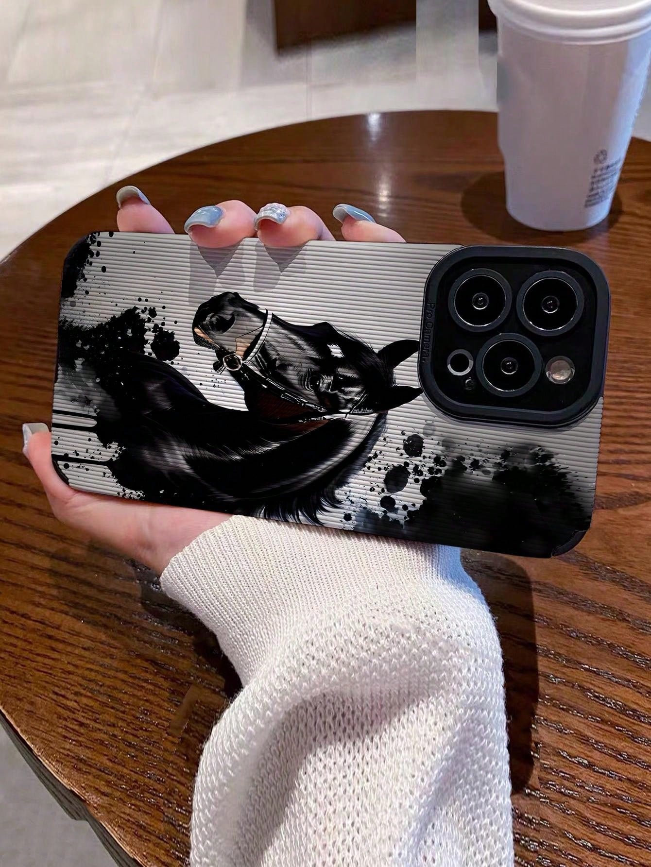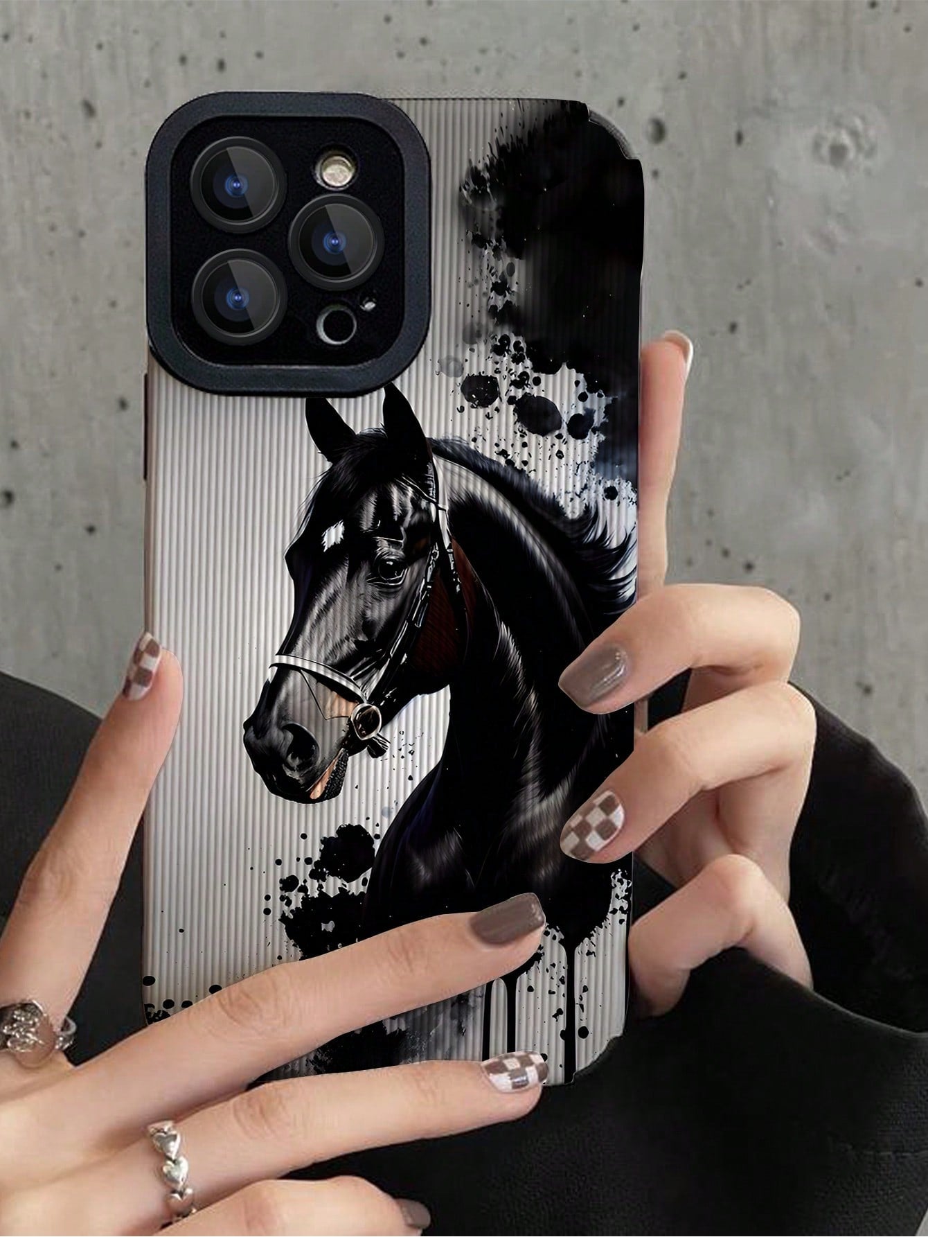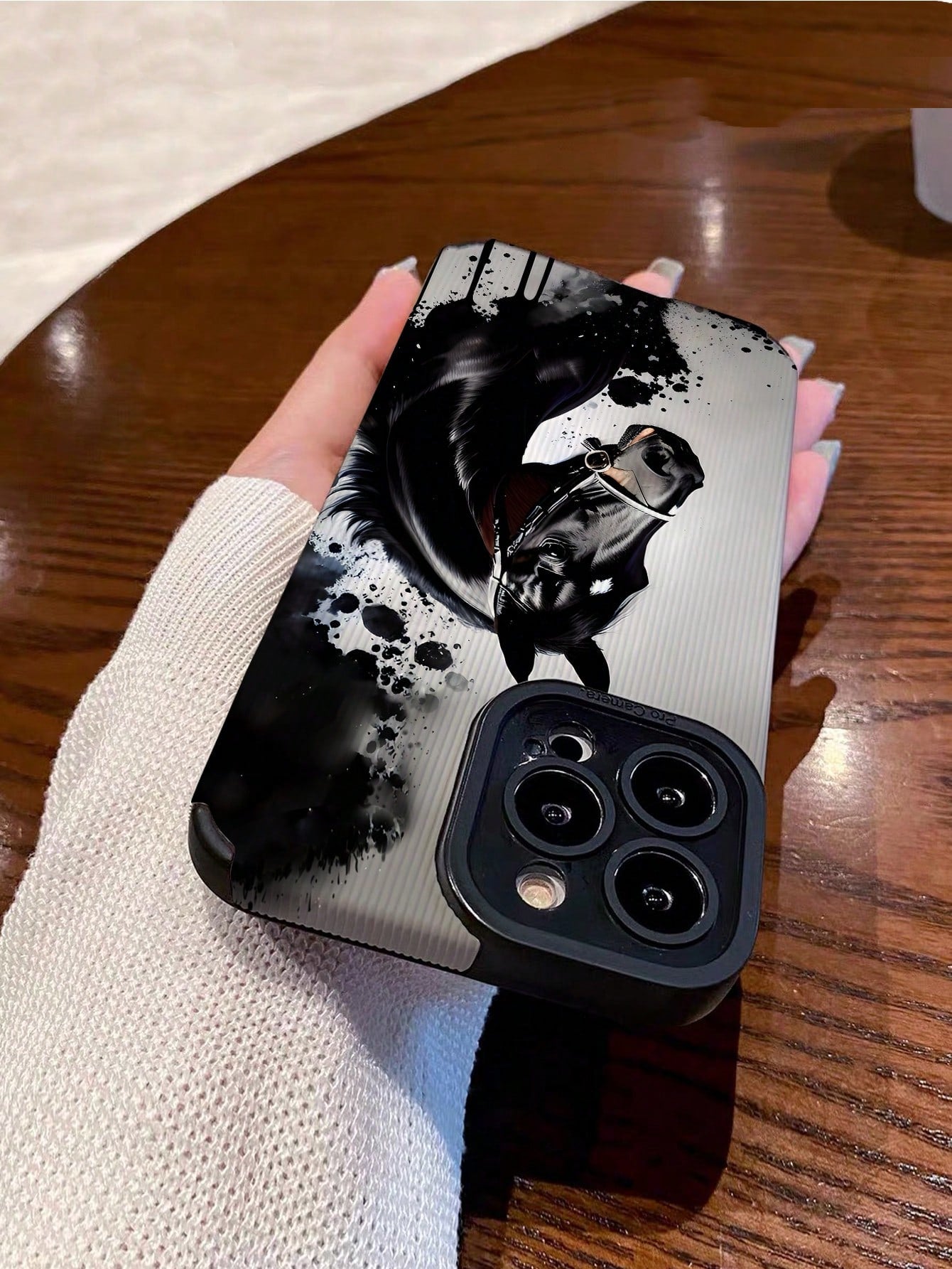 غلاف هاتف للرجال قطعة واحدة من الجلد الاصطناعي مطبوع بنقشة الحصان، ملمس ناعم مقاوم للسقوط