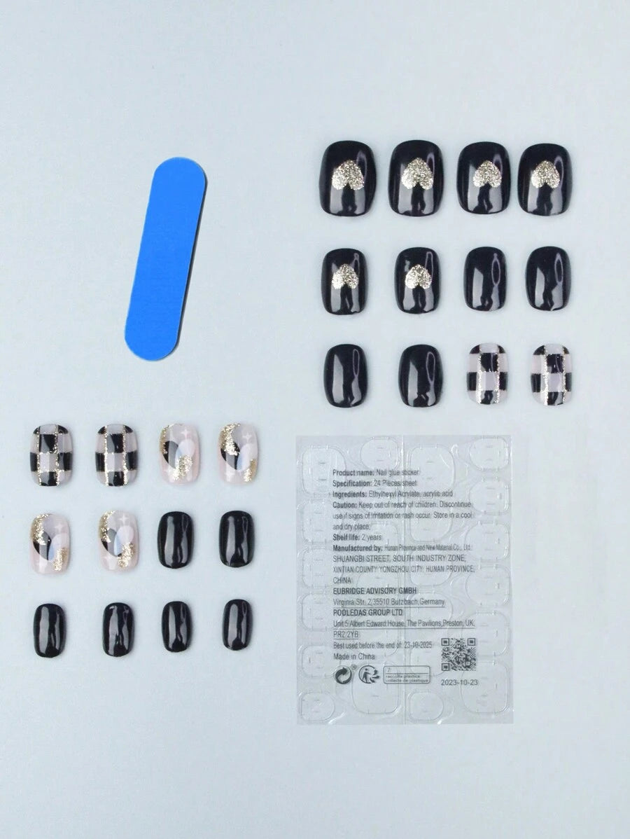 أظافر إصطناعية قصيرة بشكل بيضوي مكونة من 24 قطعة