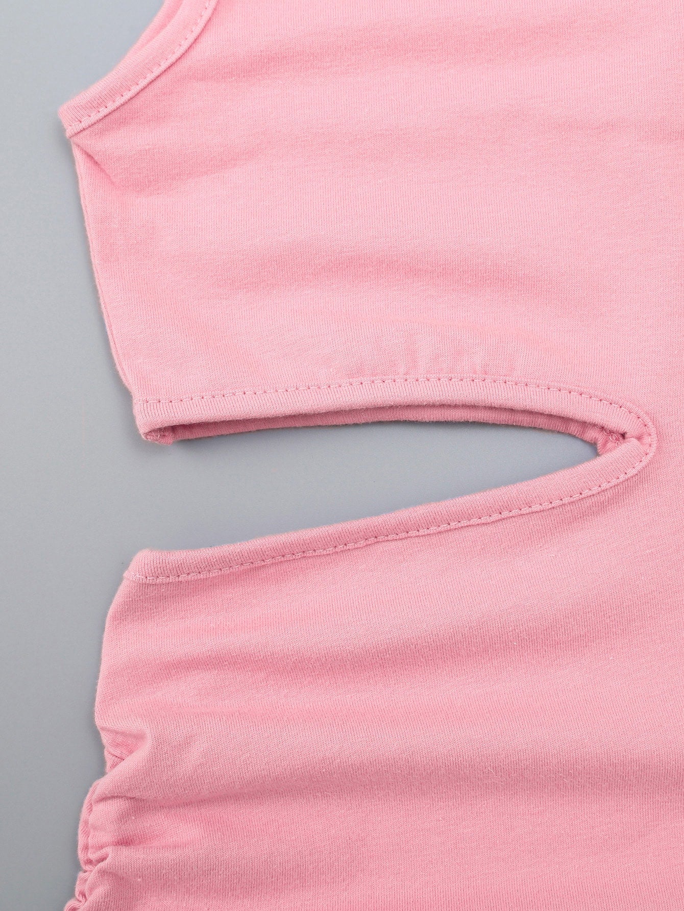 فتاة صغيرة بفستان مطوي برباط حزام الرسالة وياقة غير متناسقة وعنق مفتوح