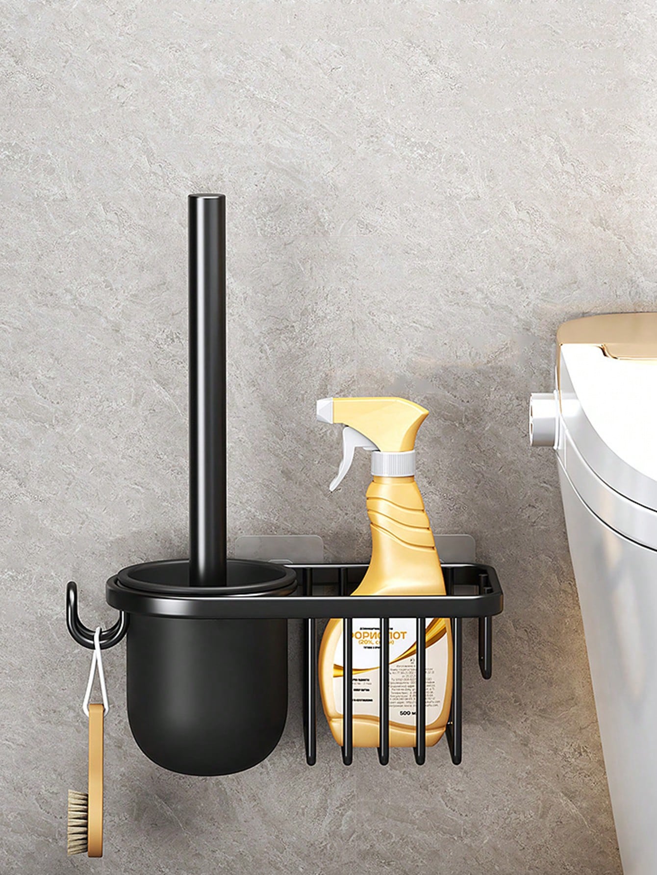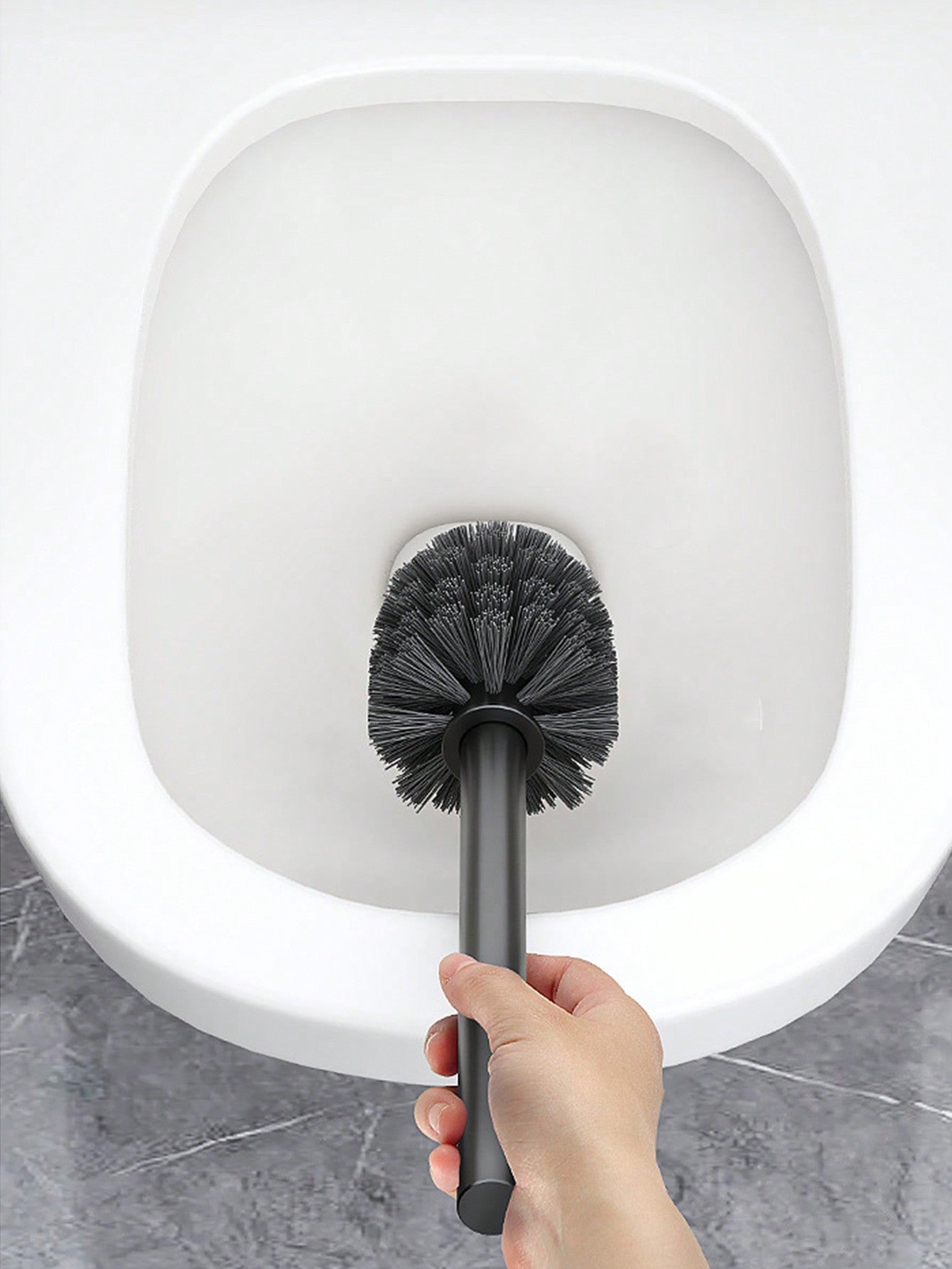 فرشاة مرحاض جدارية واحدة، من دون براغي، تنظيف الزوايا الميتة بدون زاوية يرافقه تصميم لتخزينها، تصميم مقبض ممتد، قاعدة الصرف المجوفة