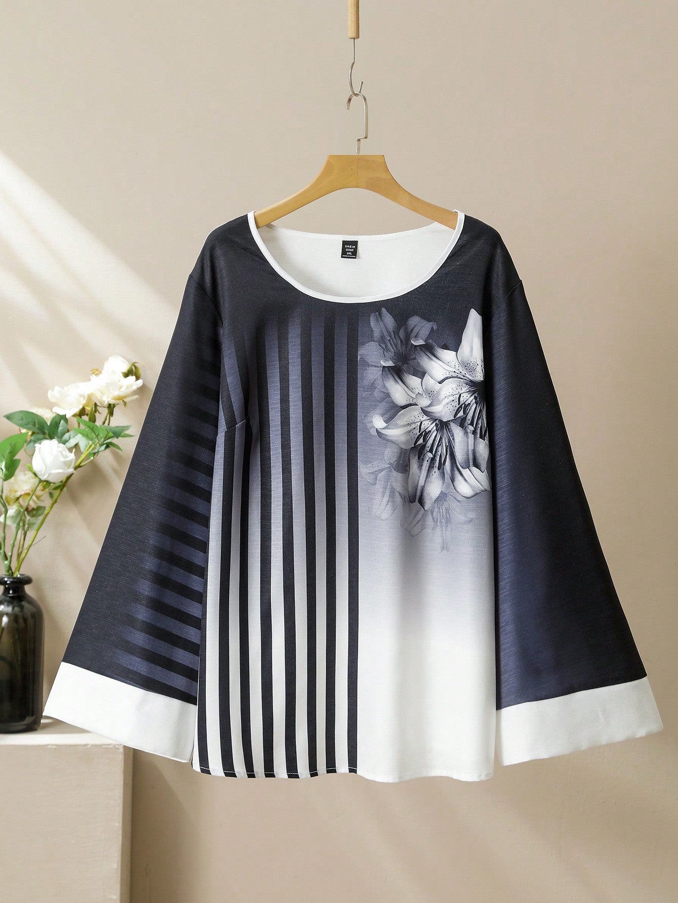 فستان أنيق بطبعة زهرية من القطع المخملية المفككة، مقاس كبير