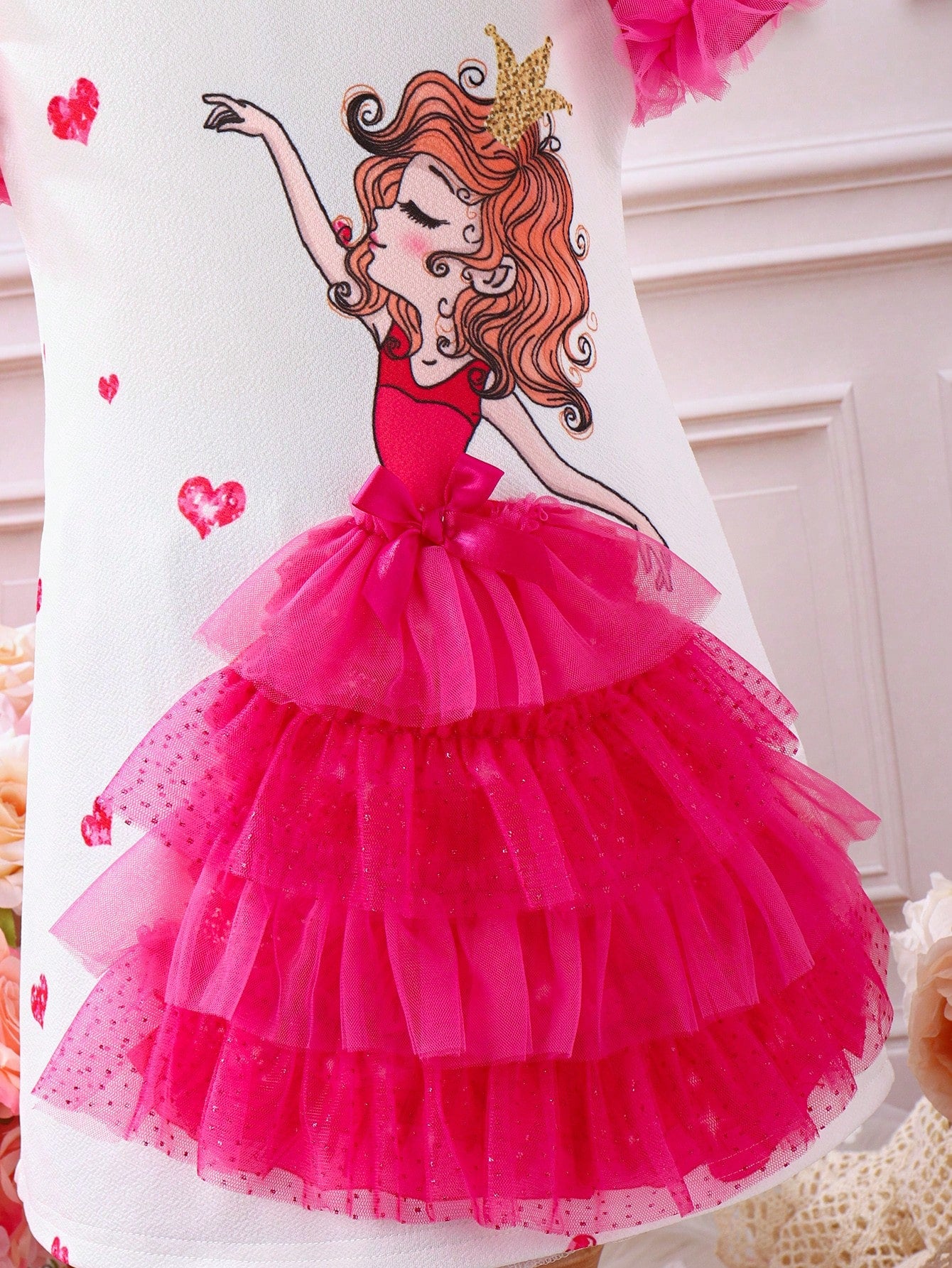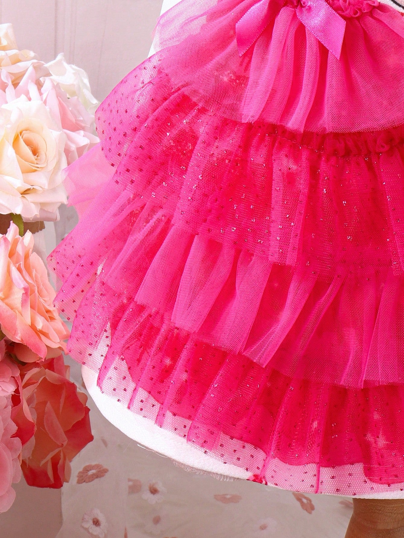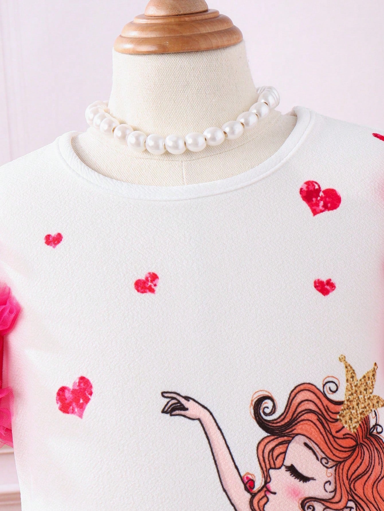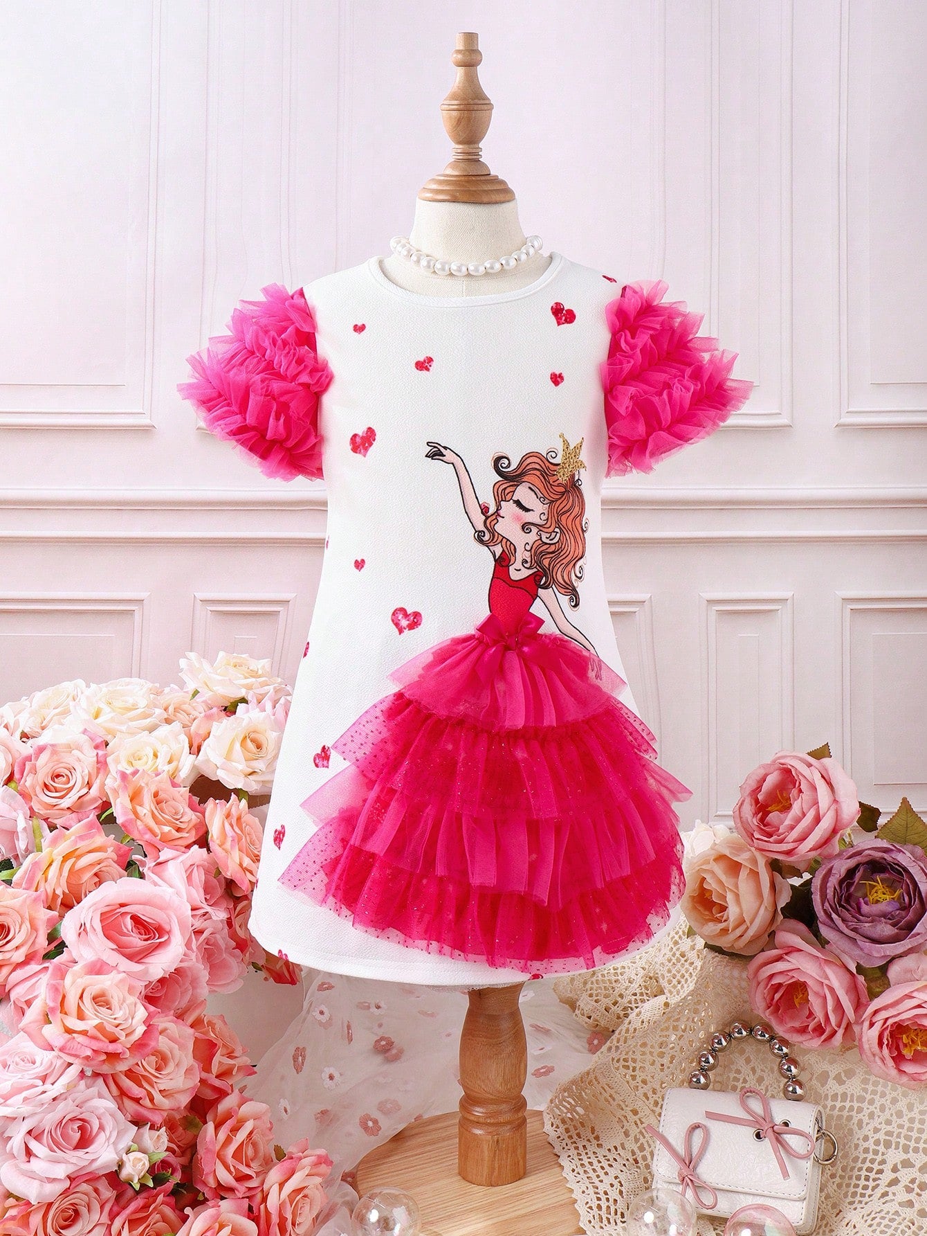 فستان الشبكة مزين بقلب صغير للفتاة الصغيرة
