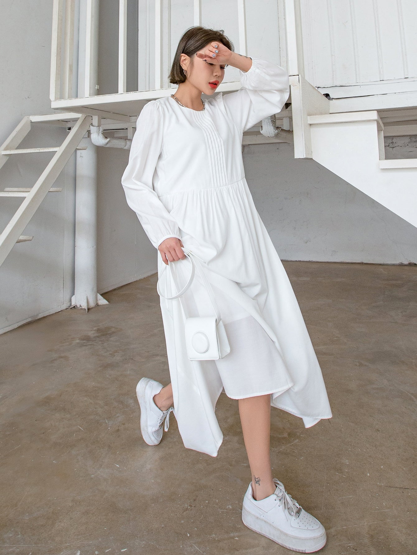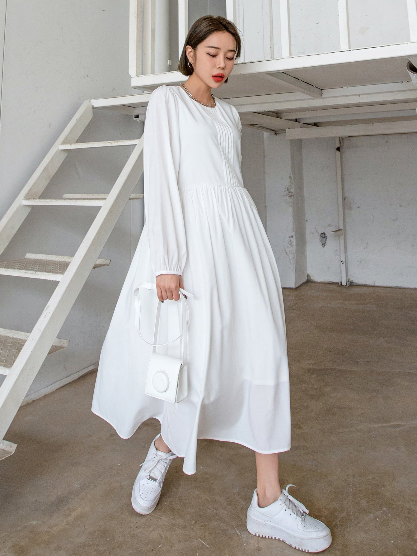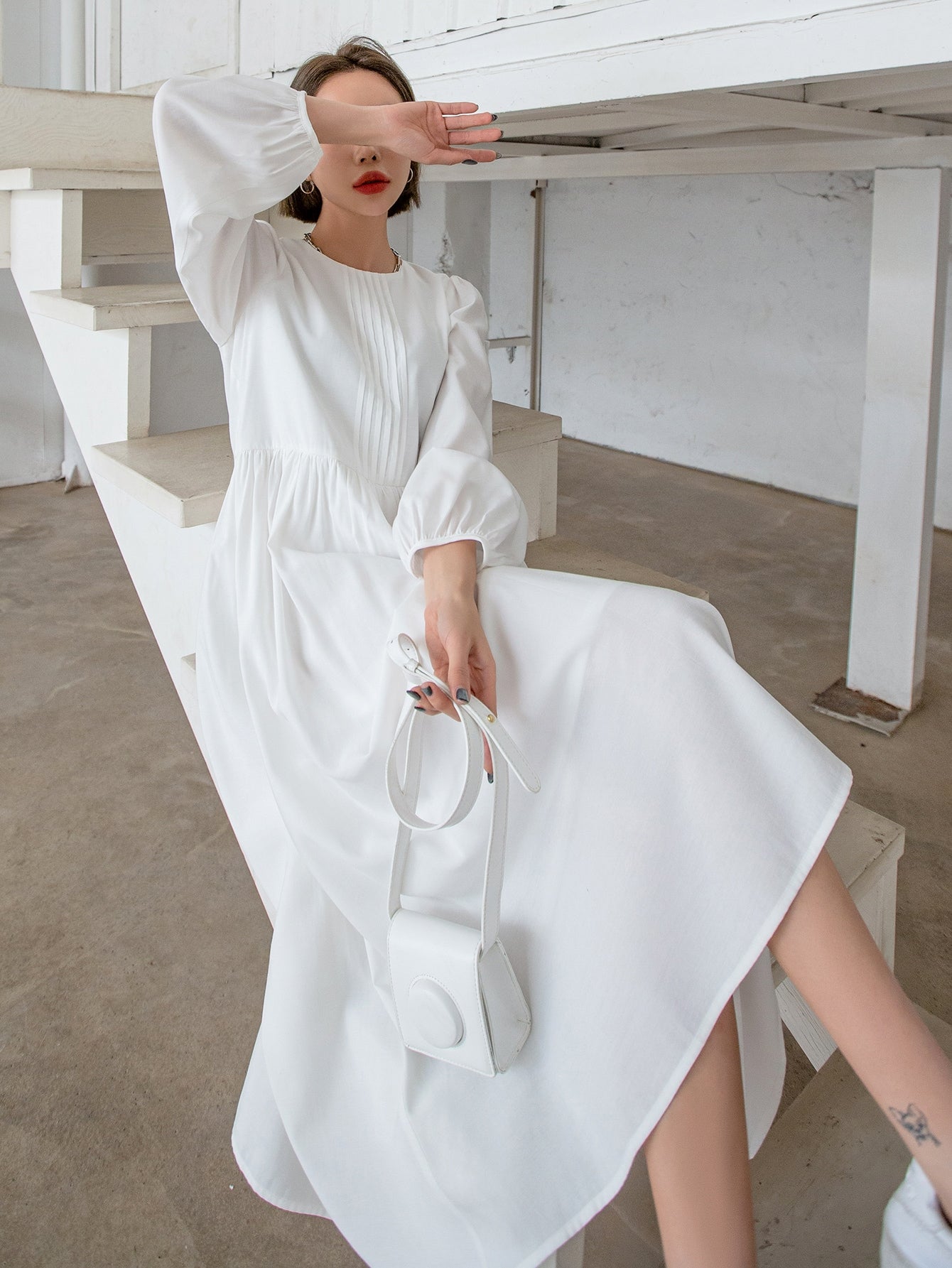 فستان بأكمام الأسقف الصلبة وثقب مفتاح الظهر