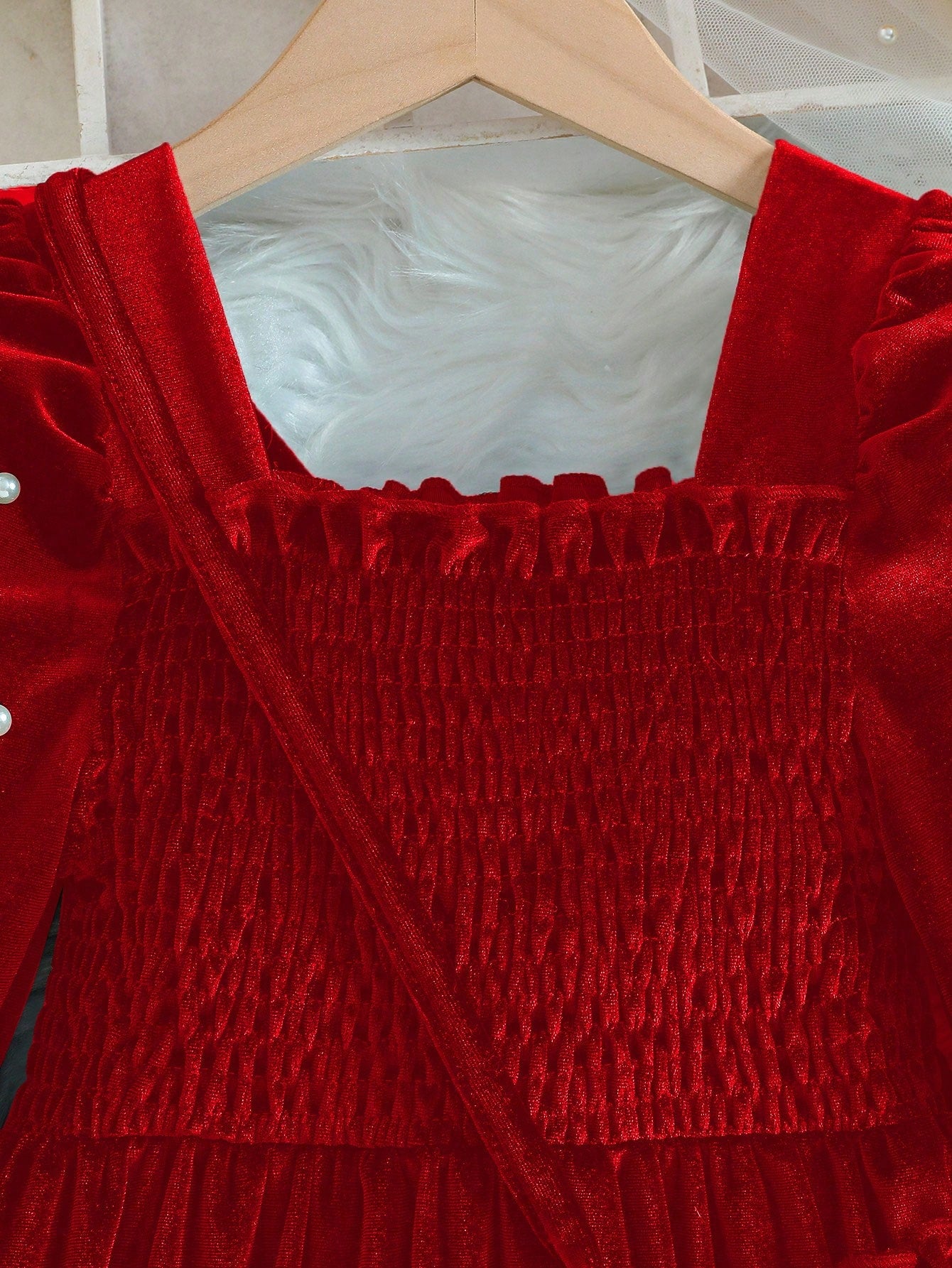 فستان بأكمام طويلة مكسو بالخرز مع حقيبة