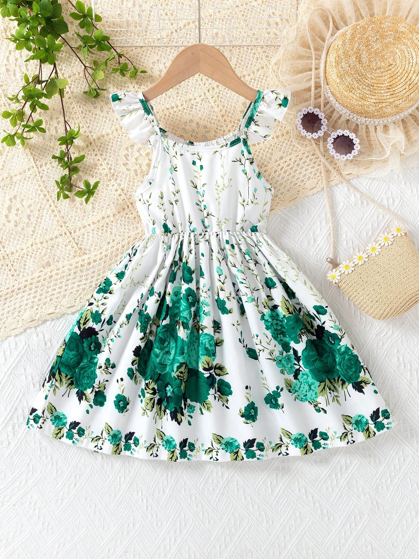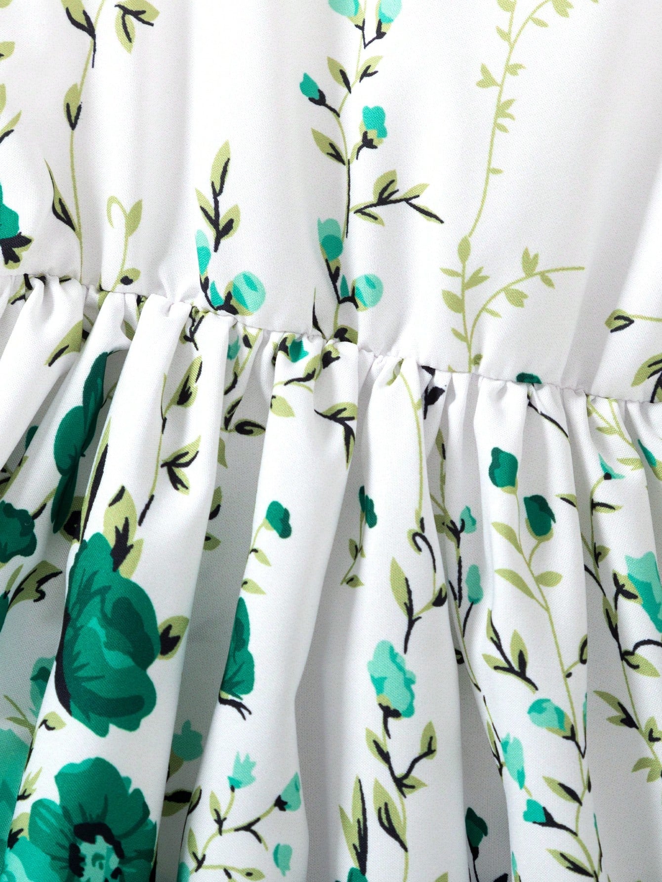 فستان بأكمام منتفخة بطباعة زهرية للفتيات الصغيرات، بأسلوب أميري عصري