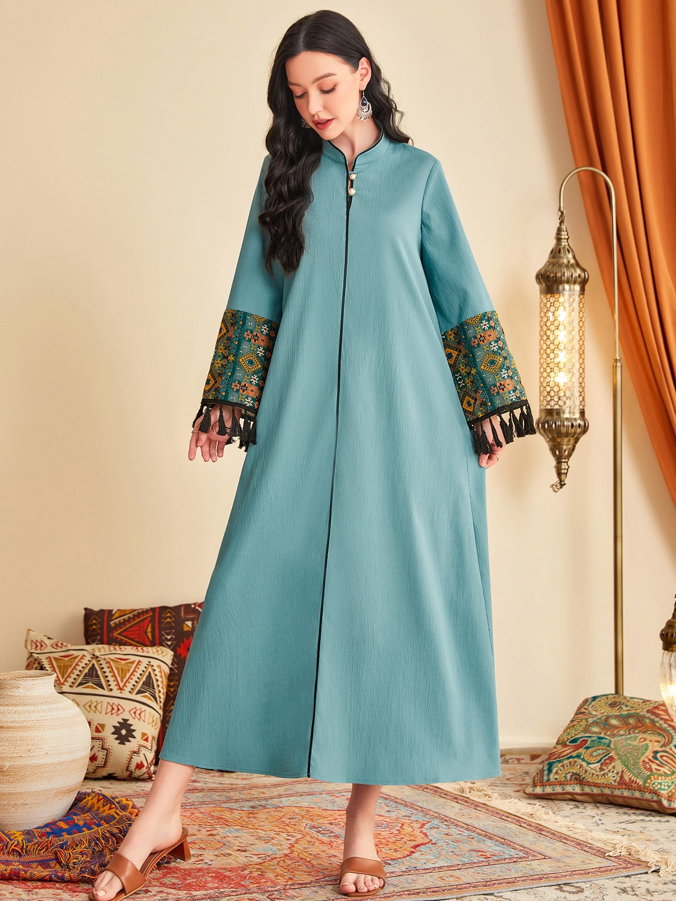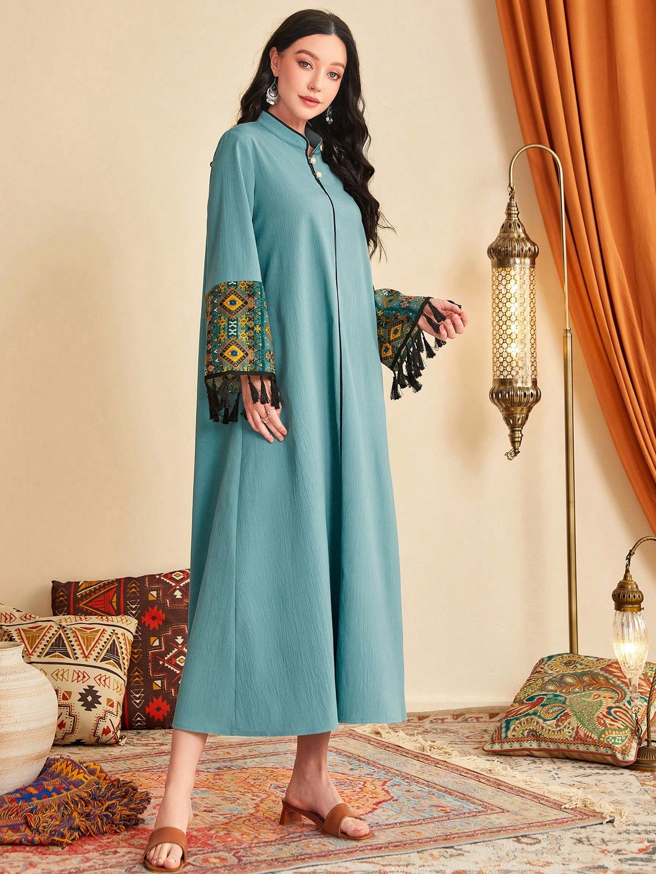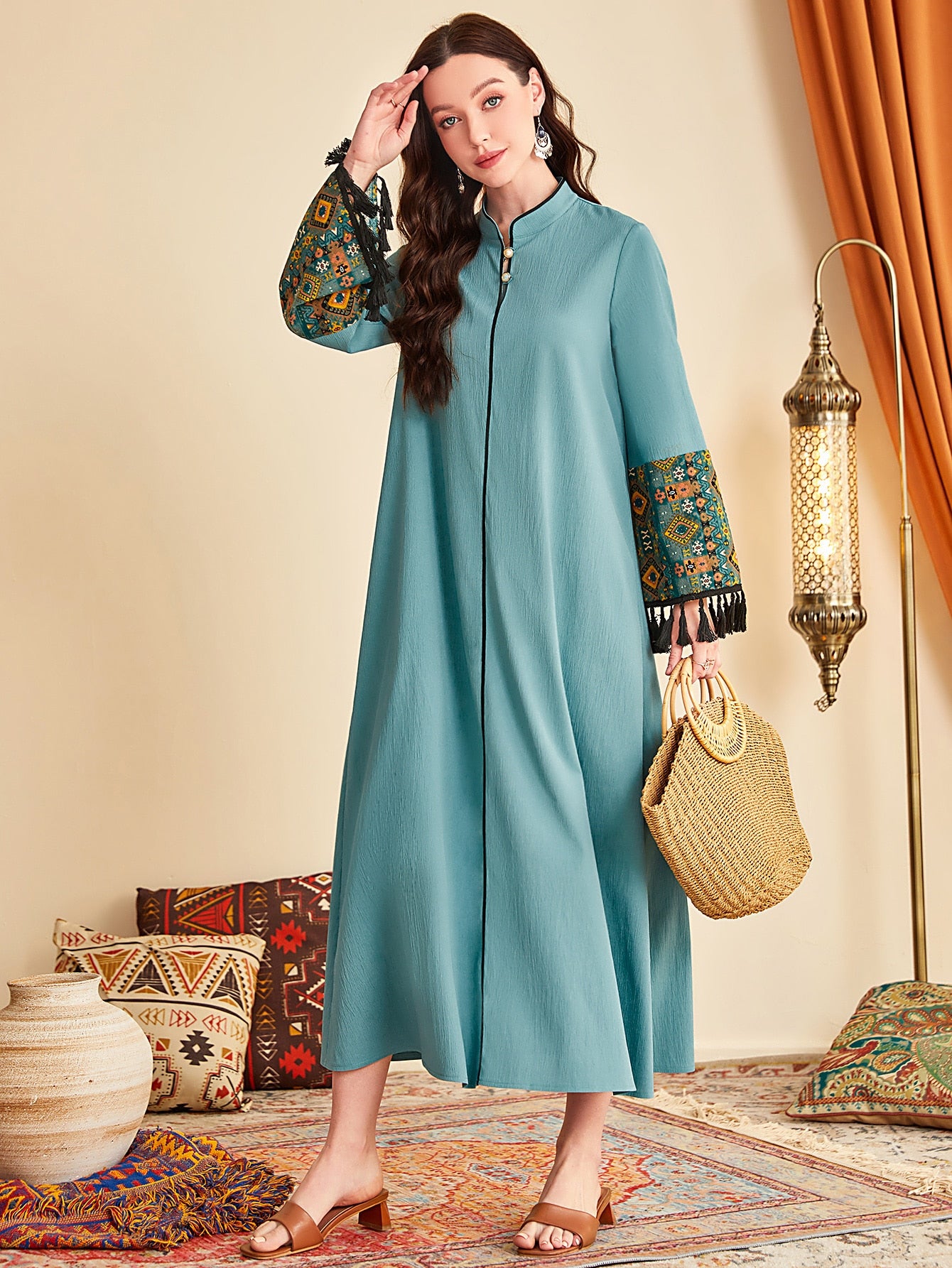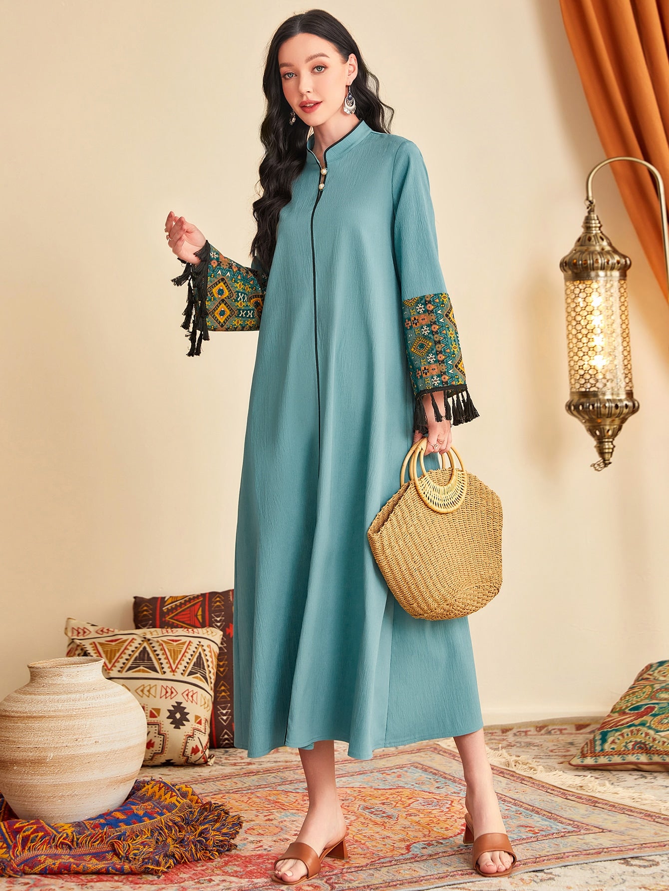 فستان بتفاصيل شرابة شريط متباين