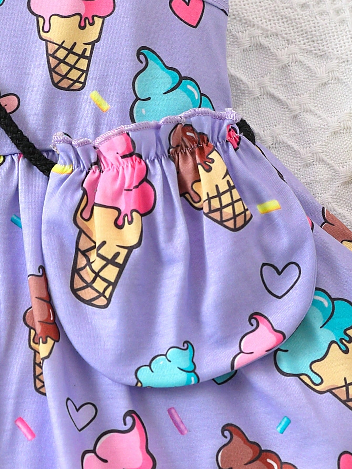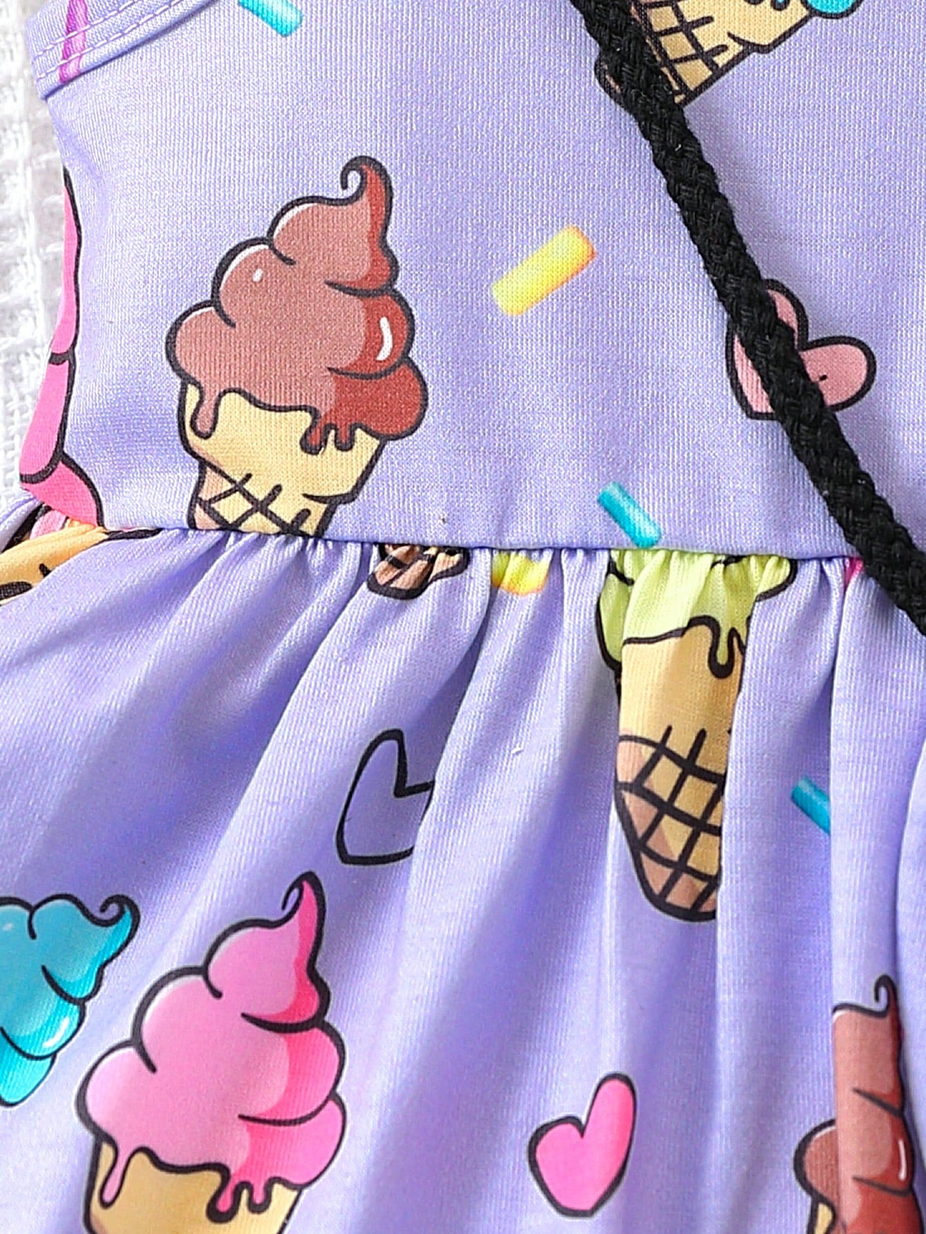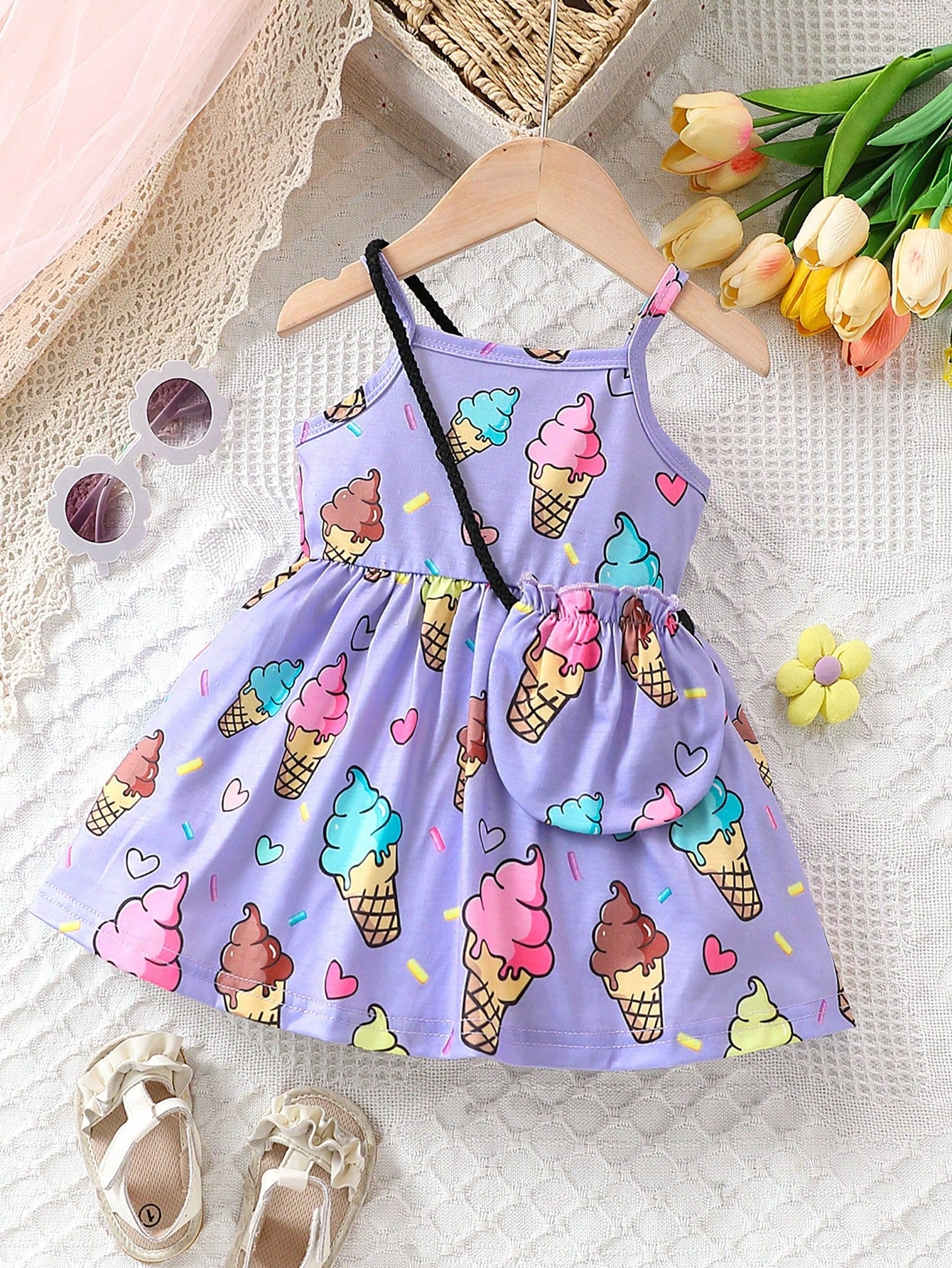 فستان بدون أكمام مناسب لفتاة الأطفال بطبعة جميلة للآيس كريم مع حقيبة ،ربيع/صيف