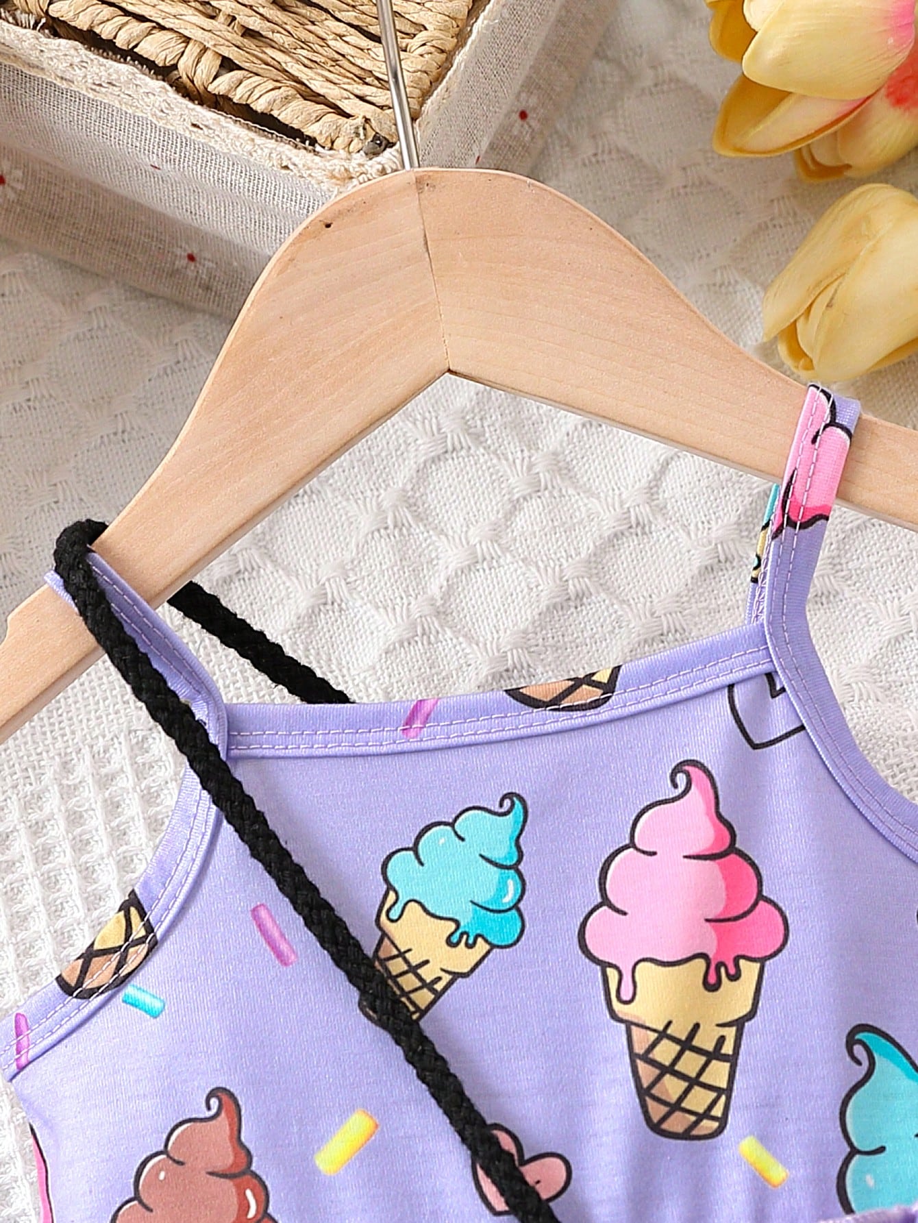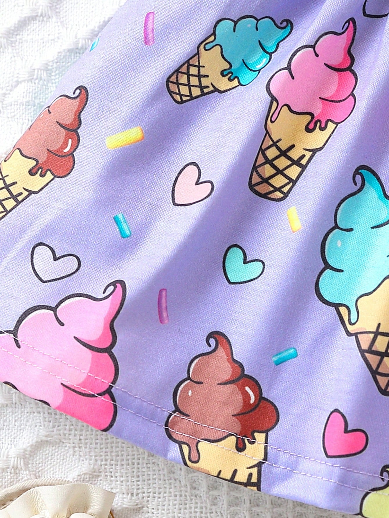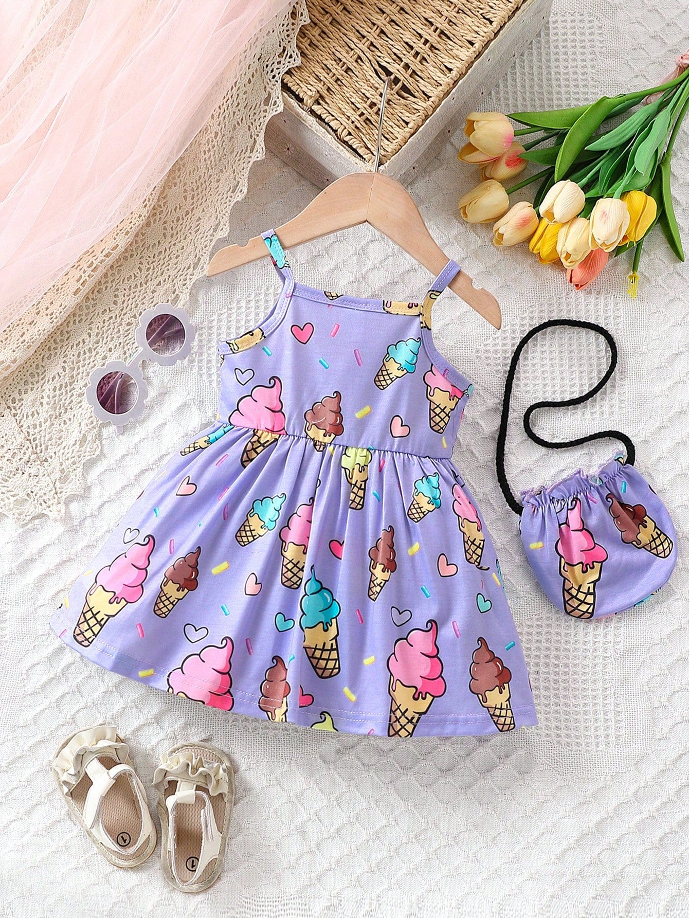 فستان بدون أكمام مناسب لفتاة الأطفال بطبعة جميلة للآيس كريم مع حقيبة ،ربيع/صيف
