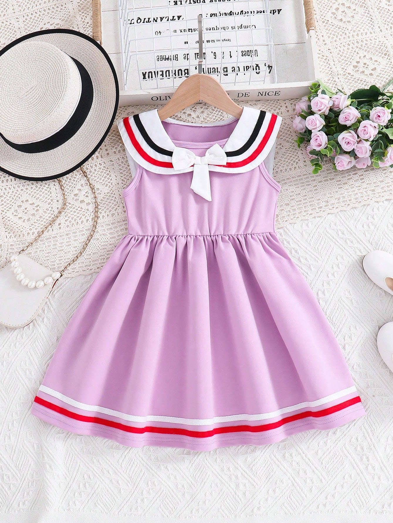 فستان بدون أكمام وياقة بحارة للفتيات الصغيرات