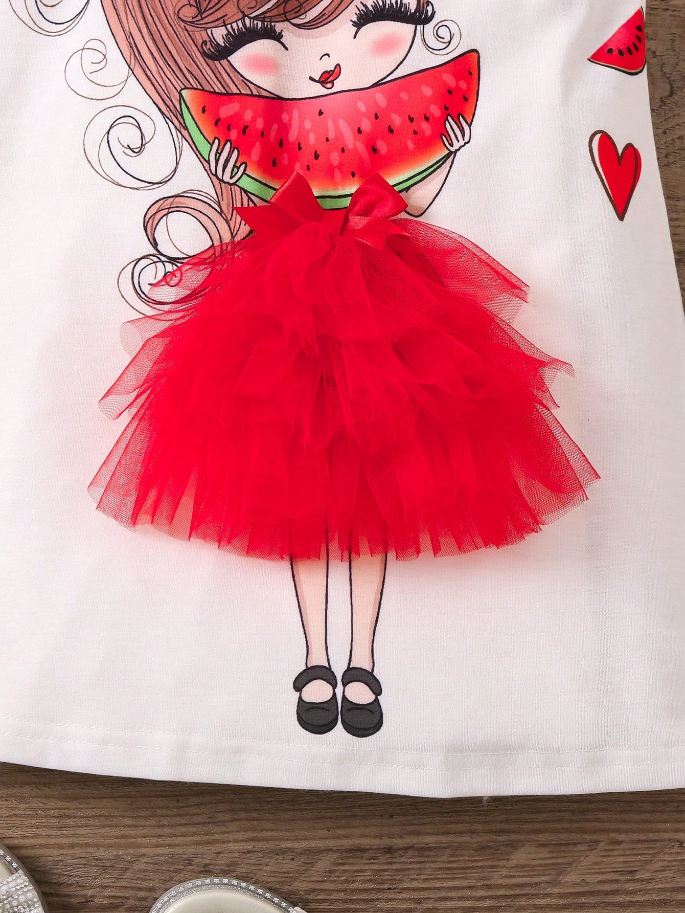 فستان بسيط ومريح للإجازات والأوقات العادية مطبوع عليه شخصية كرتونية لطيفة للفتيات الصغيرات مع هدية حقيبة جميلة