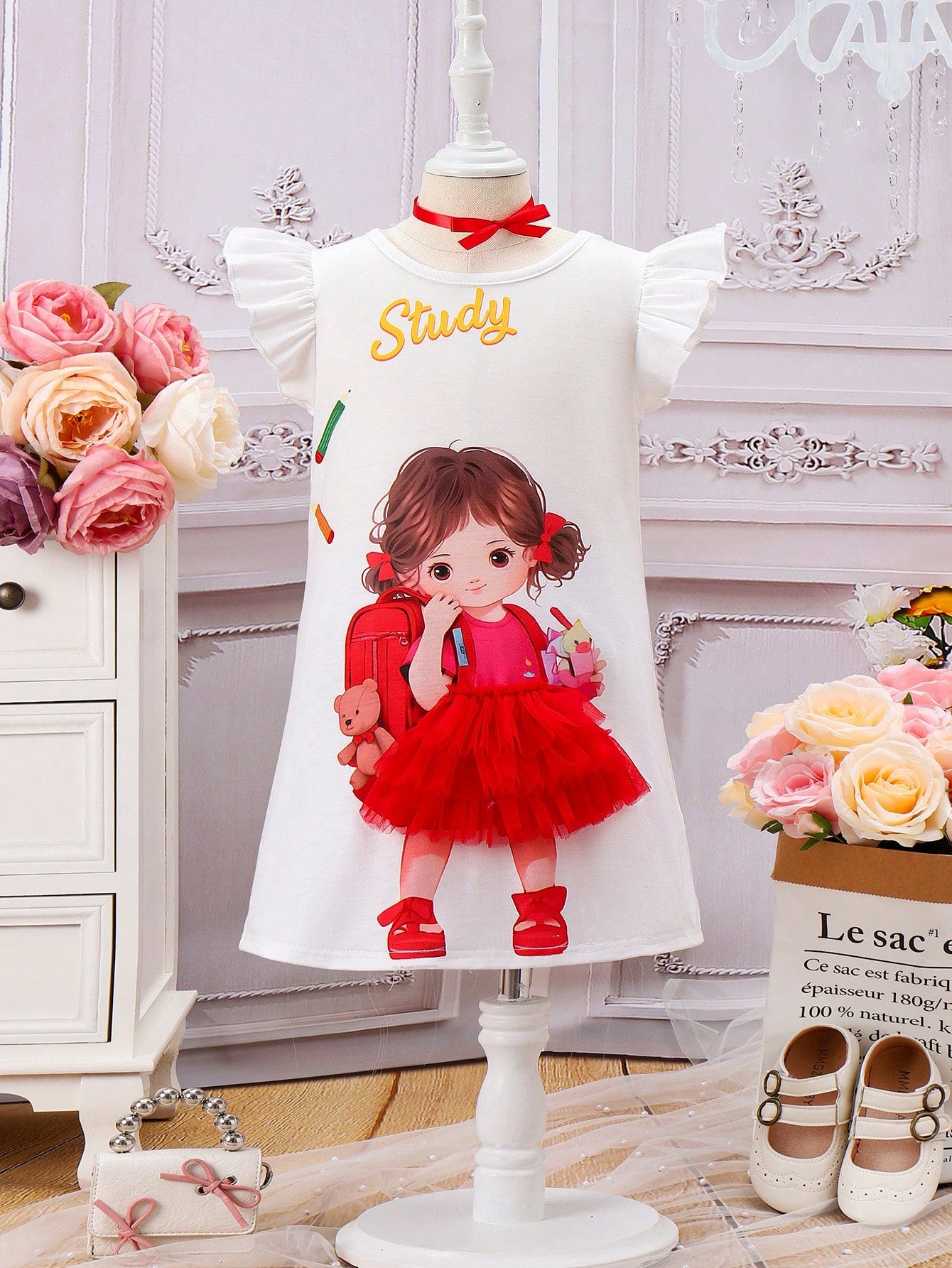 فستان بلا أكمام مطبع لفتاة صغيرة