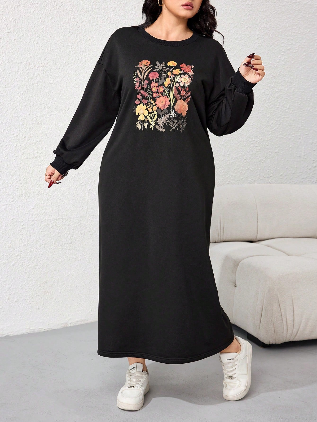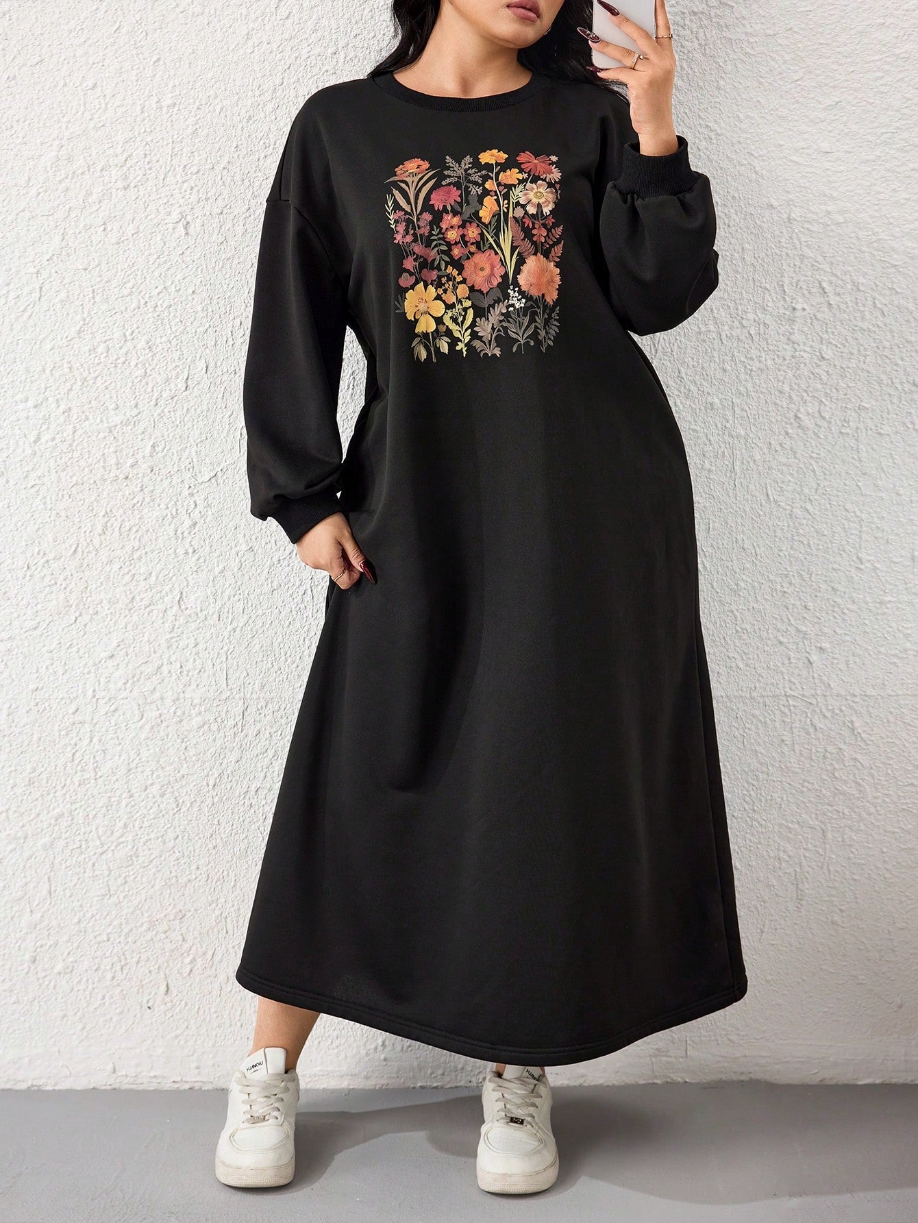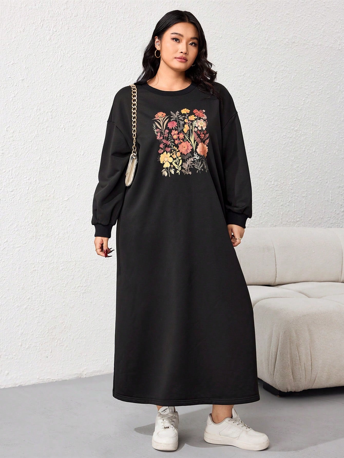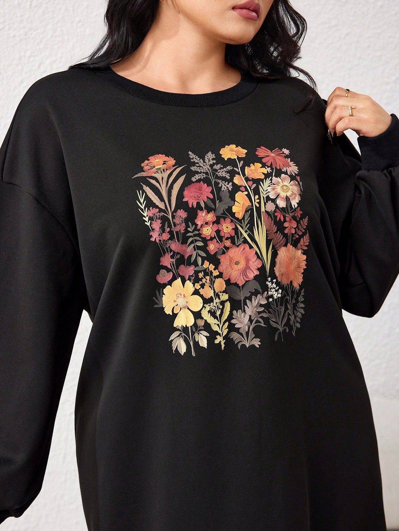 فستان بلوزة رياضية كاجوال بفتحة الكتف المنخفضة وطبعة الأزهار