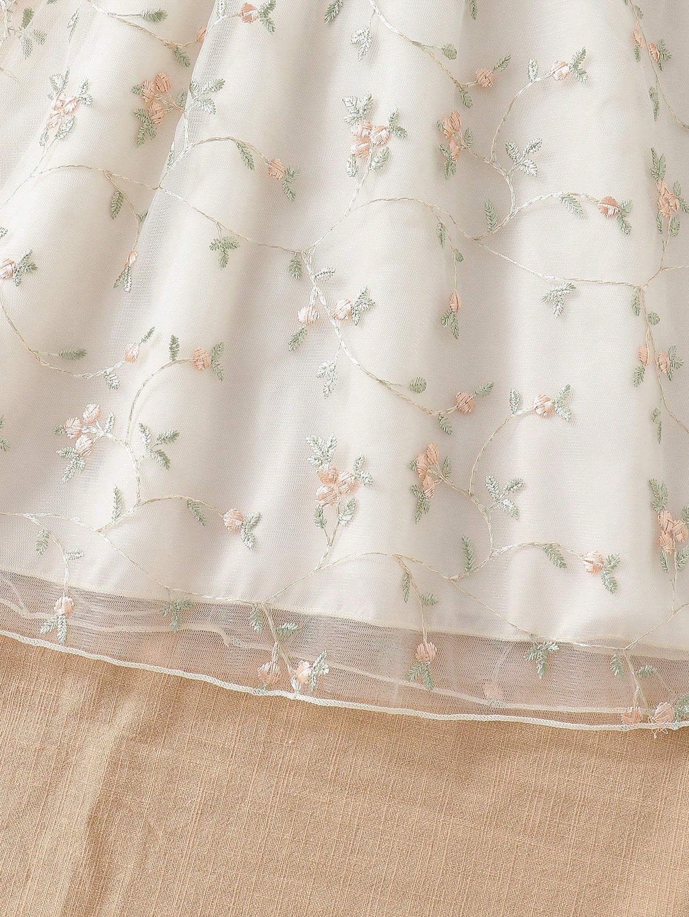 فستان دمية بأكمام متأرجحة بحافة تطريز شبكي مزدوج الطبقة للفتاة الصغيرة، للعطلة الصيفية أو الحفلة
