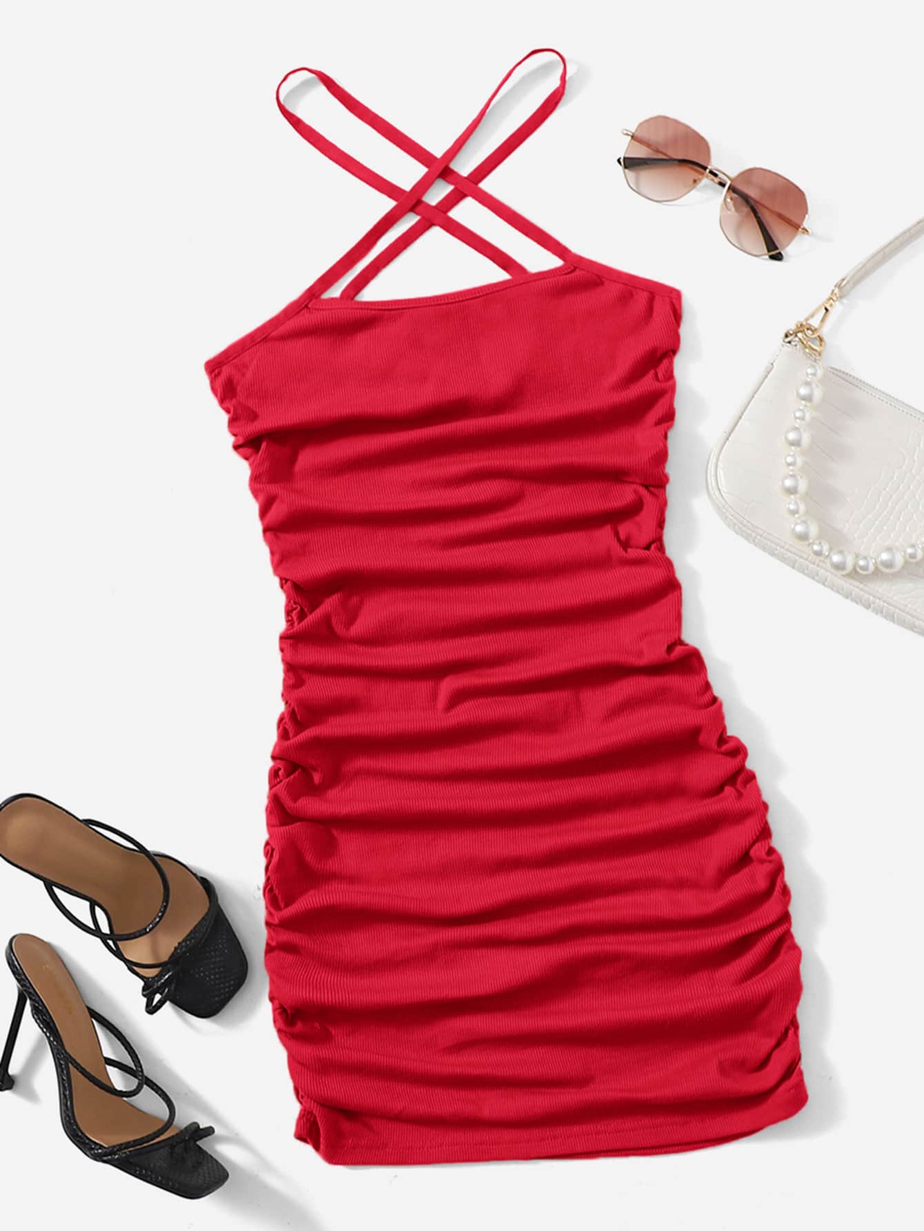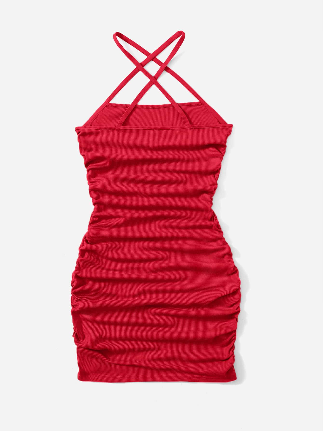 فستان رسن متقاطع بتفاصيل مكشكش