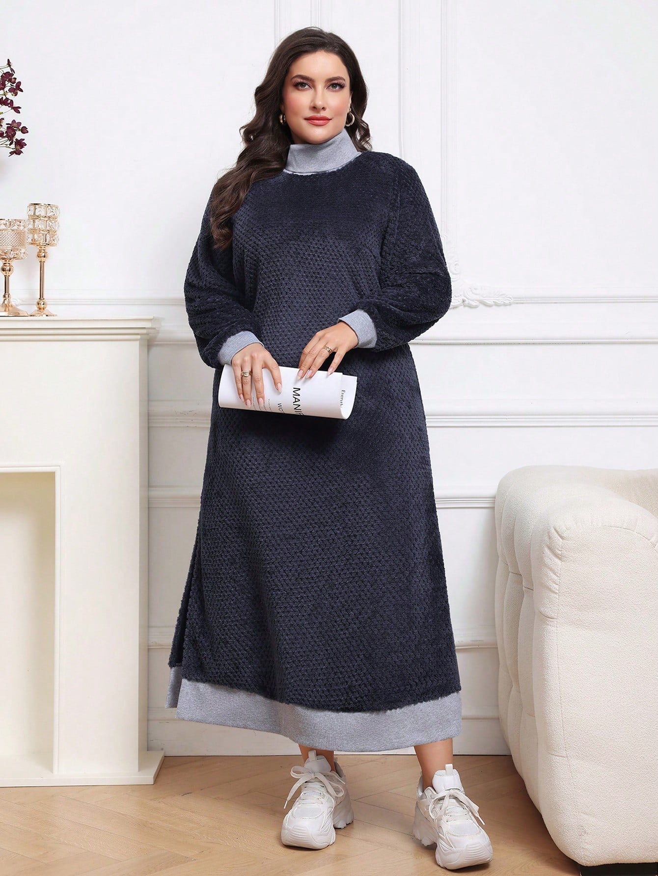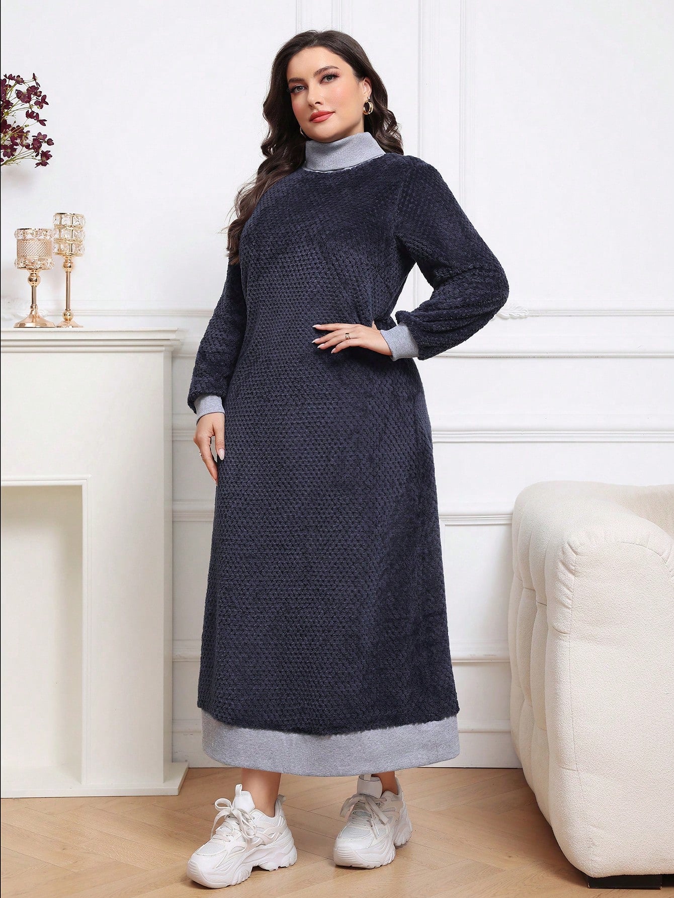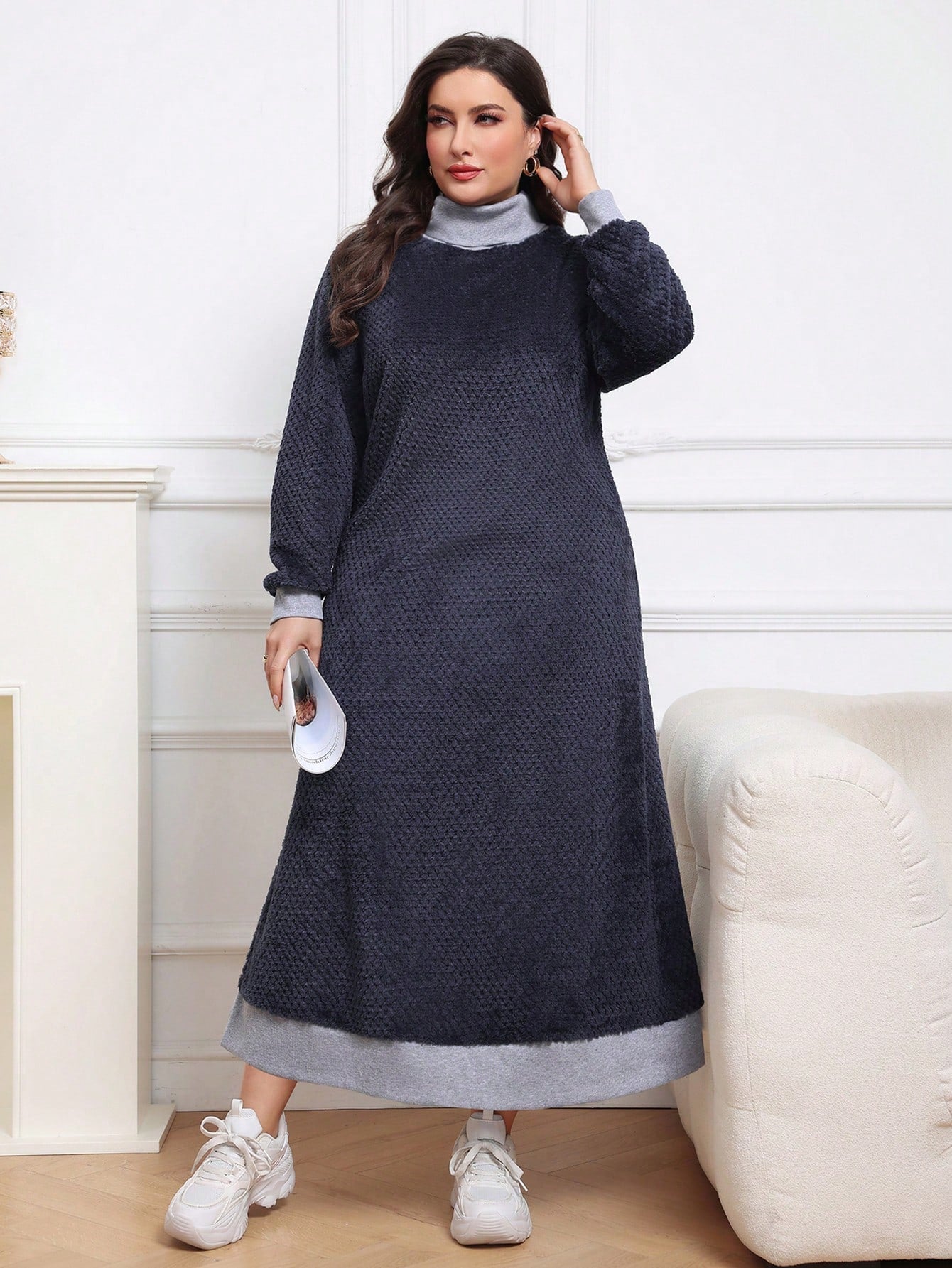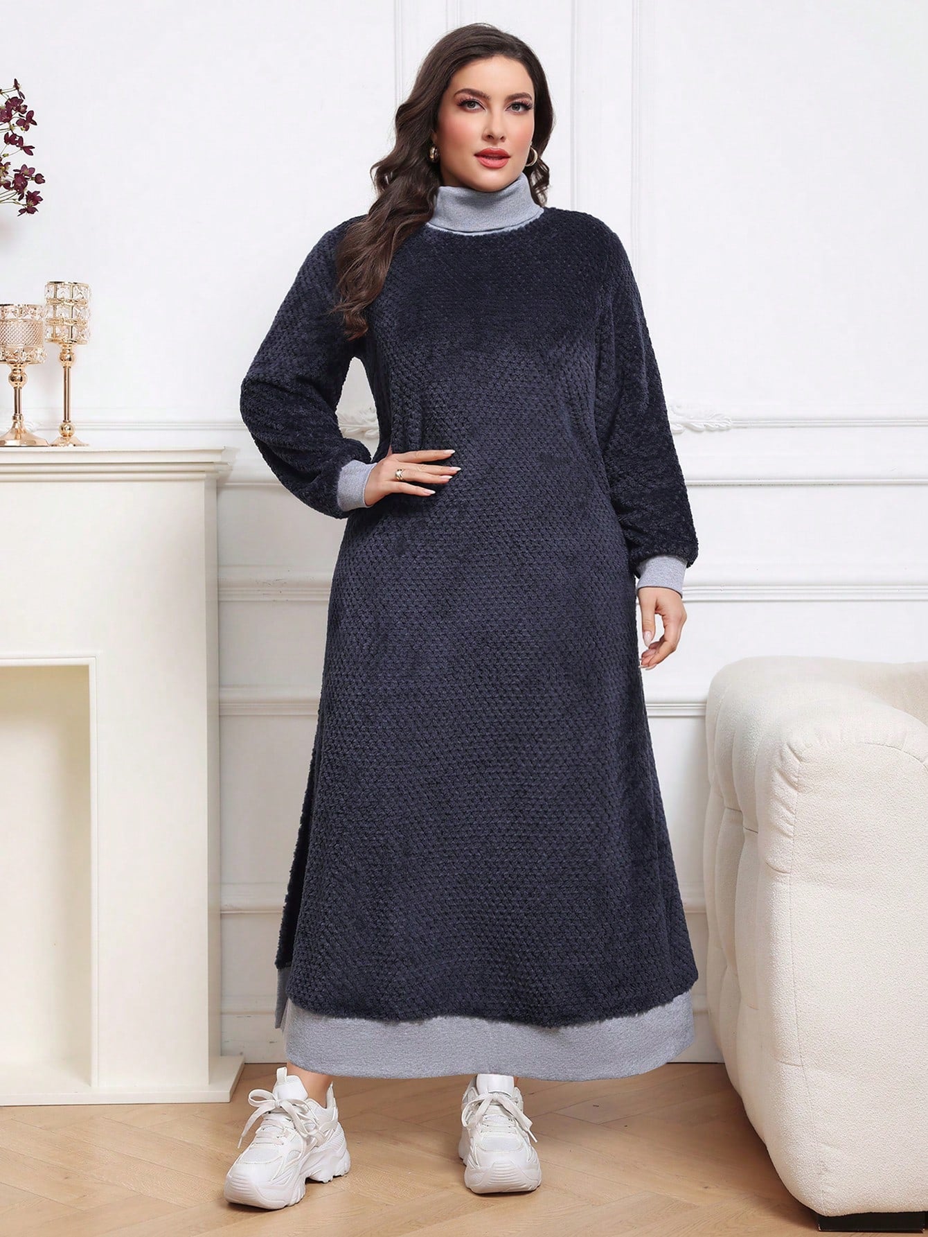 فستان رياضي فضفاض بياقة عالية متعدد الألوان للاستخدام اليومي المناسب للمقاسات الكبيرة