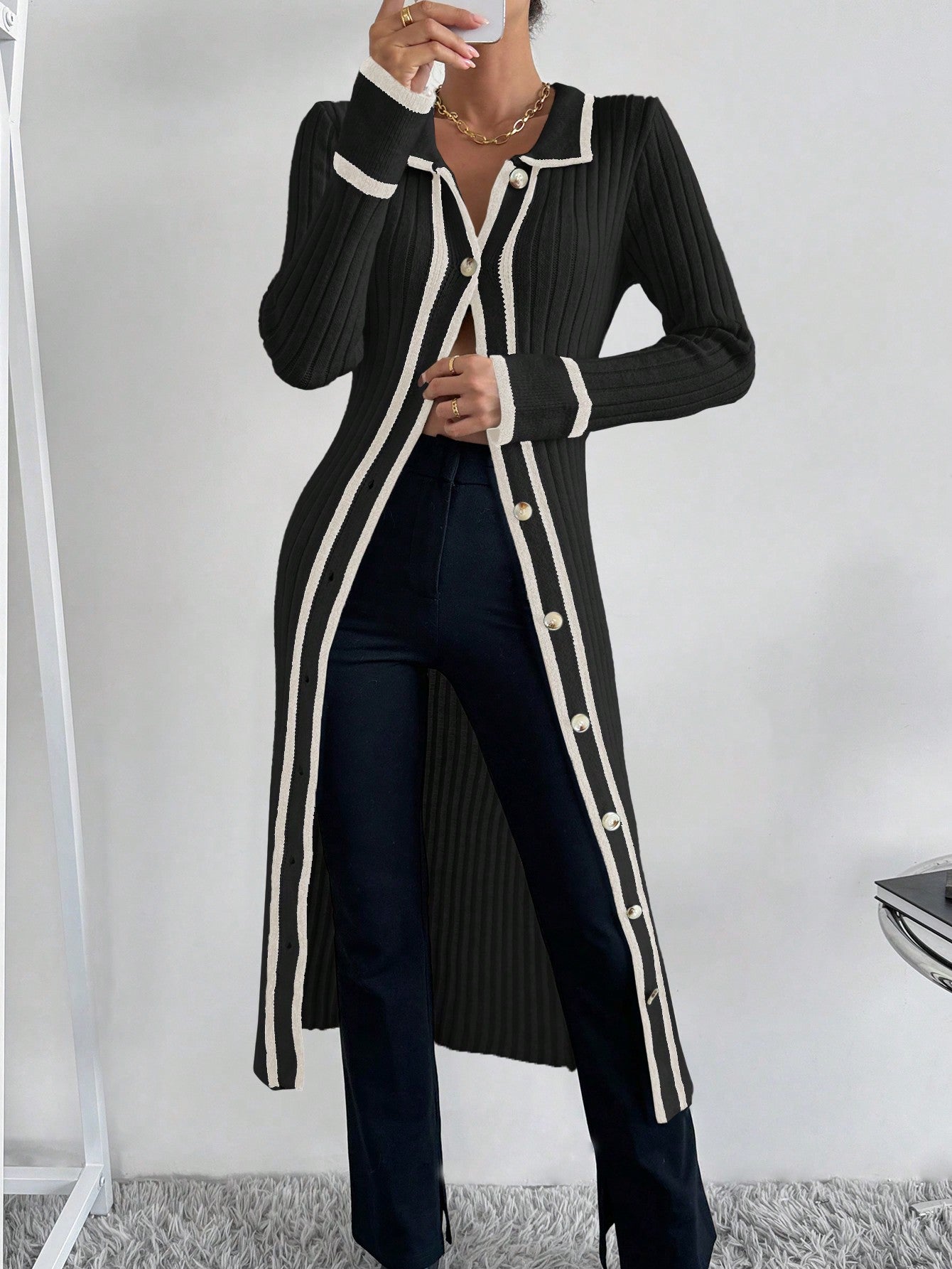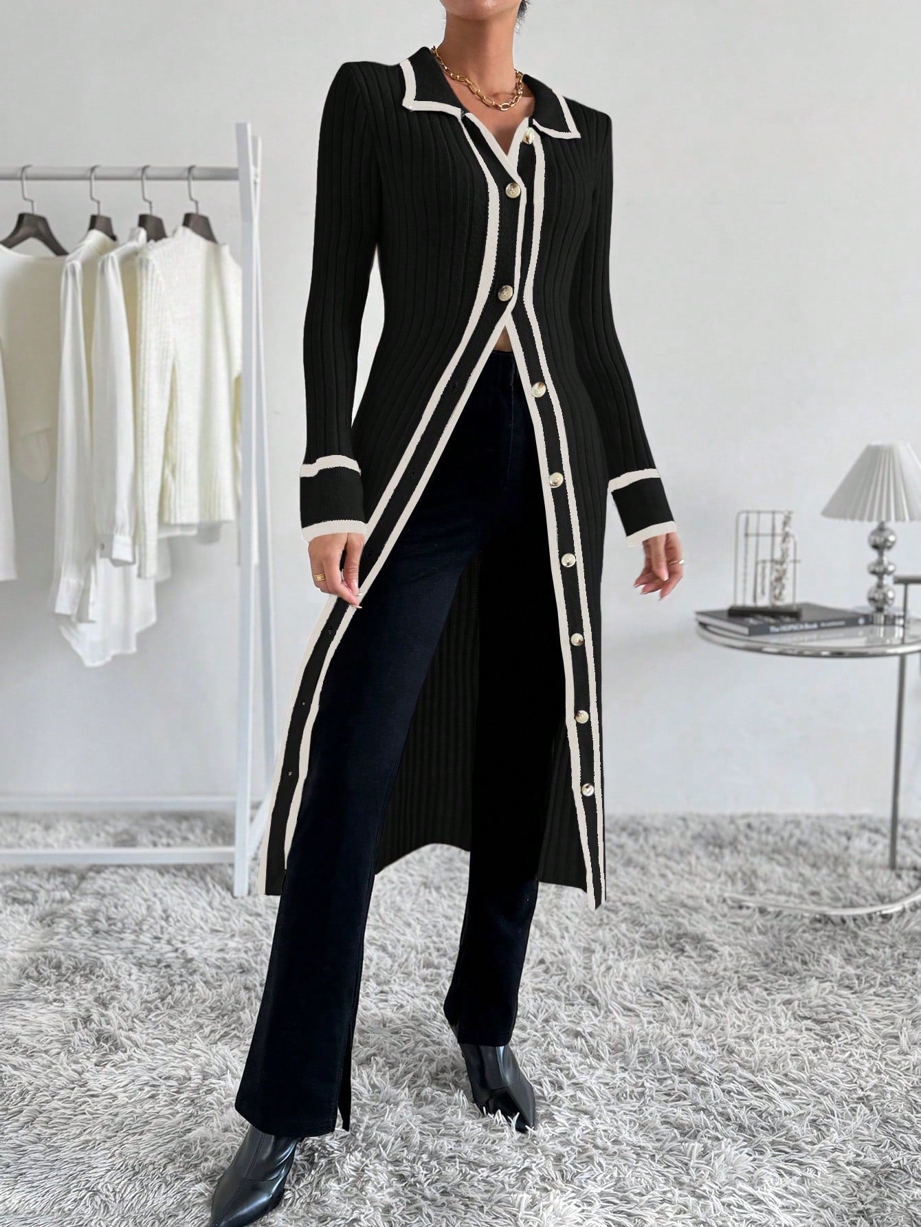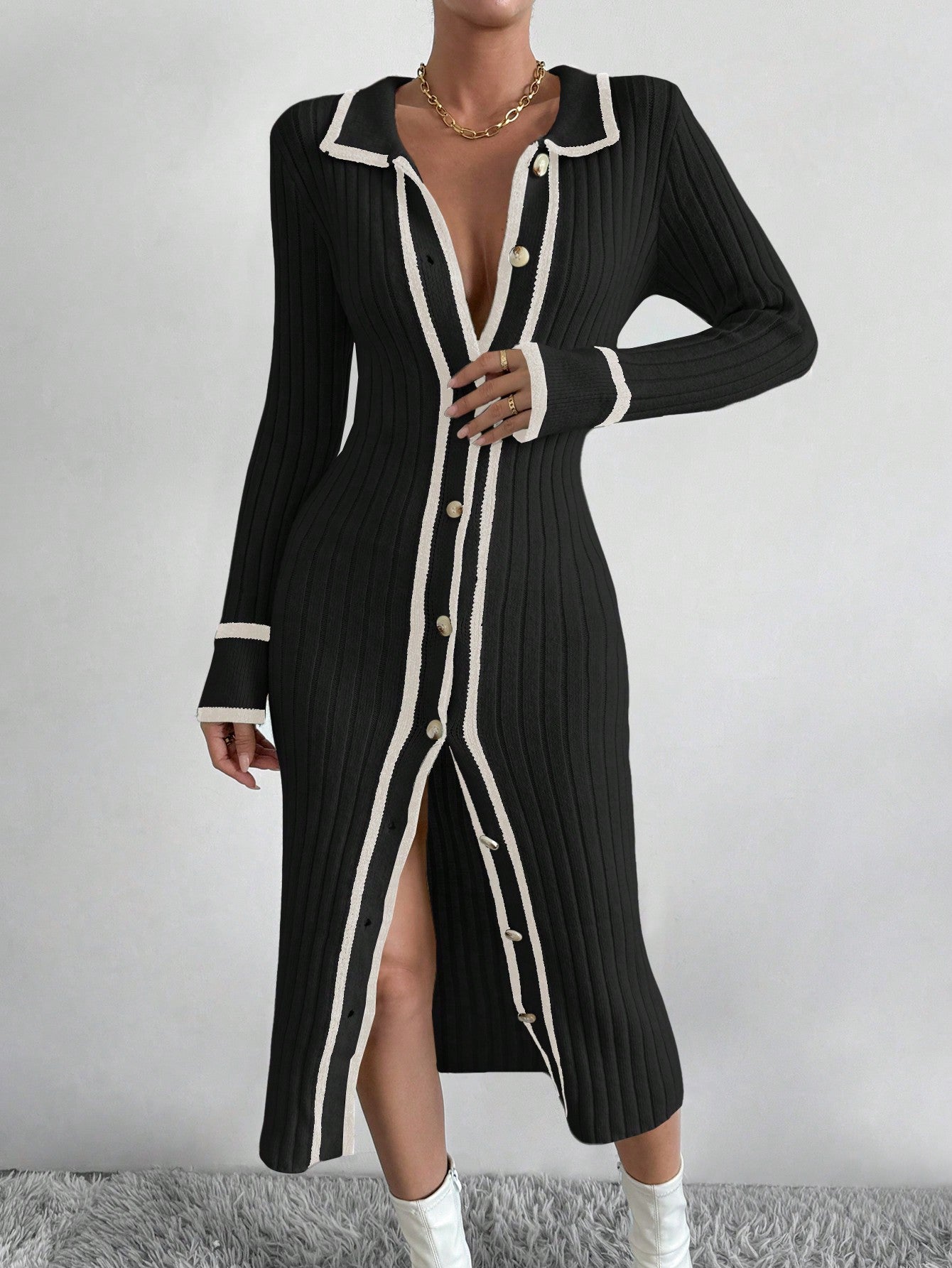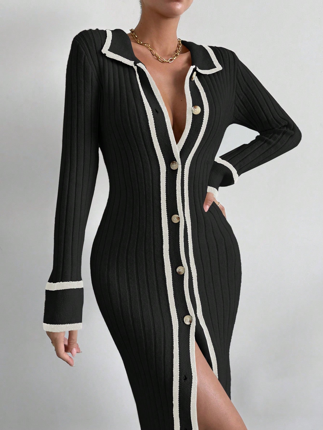 تفاصيل : الزر, بشريط متاين, شق عالية إلى الفخذ