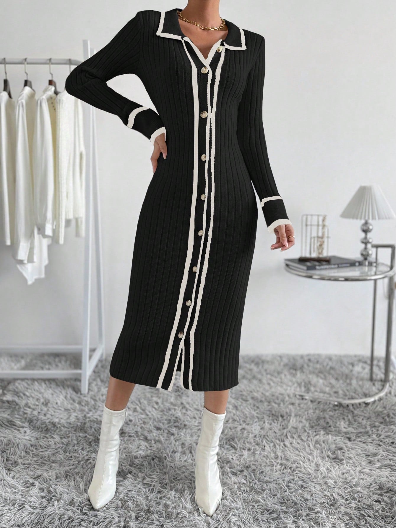 فستان سترة منقسم بألوان متداخلة وأطراف ملتفة و أزرار
