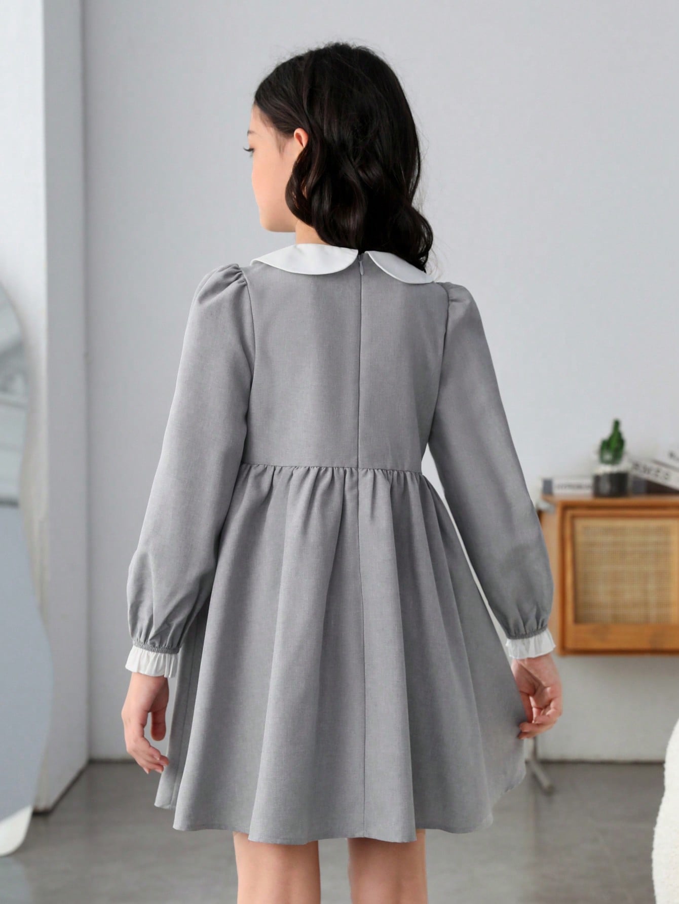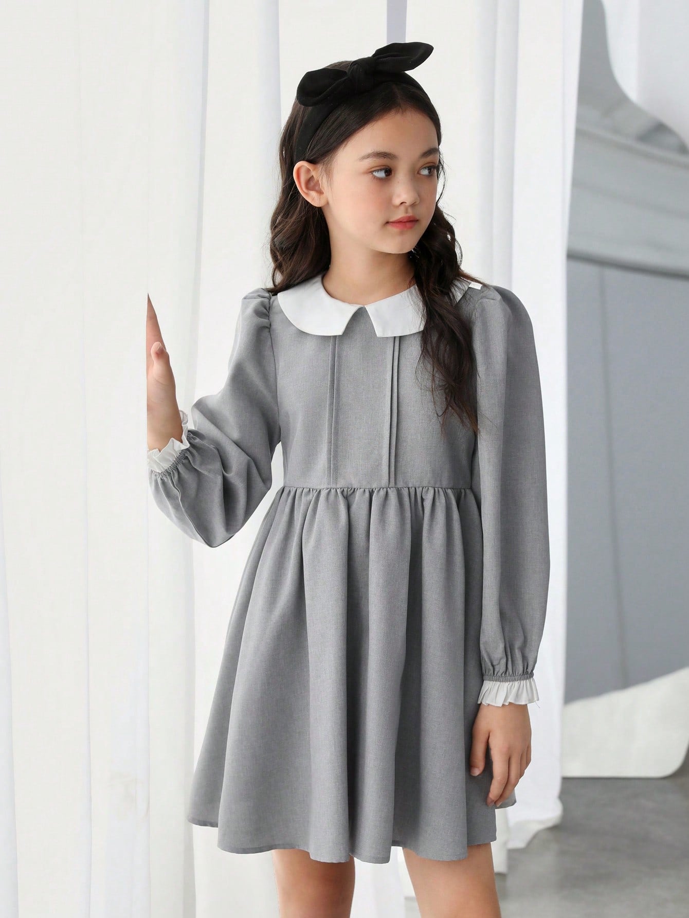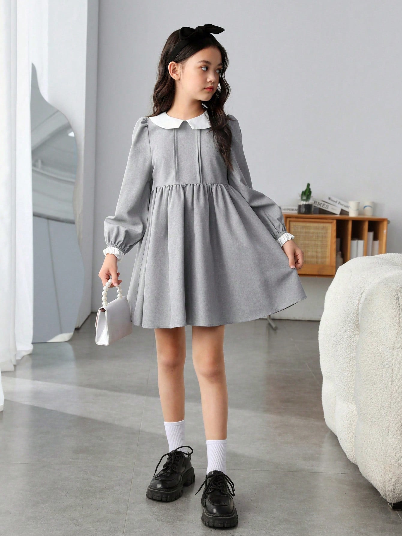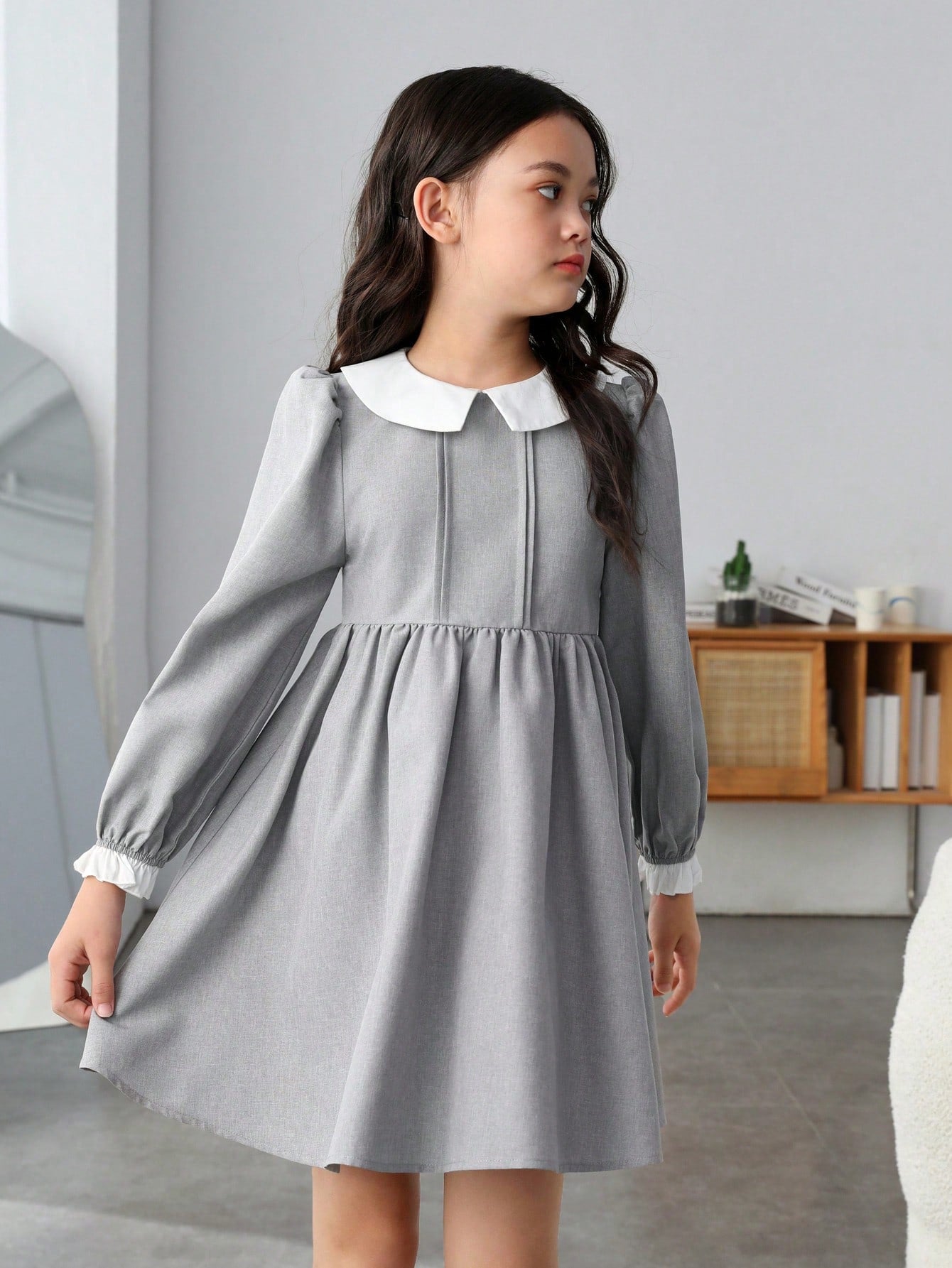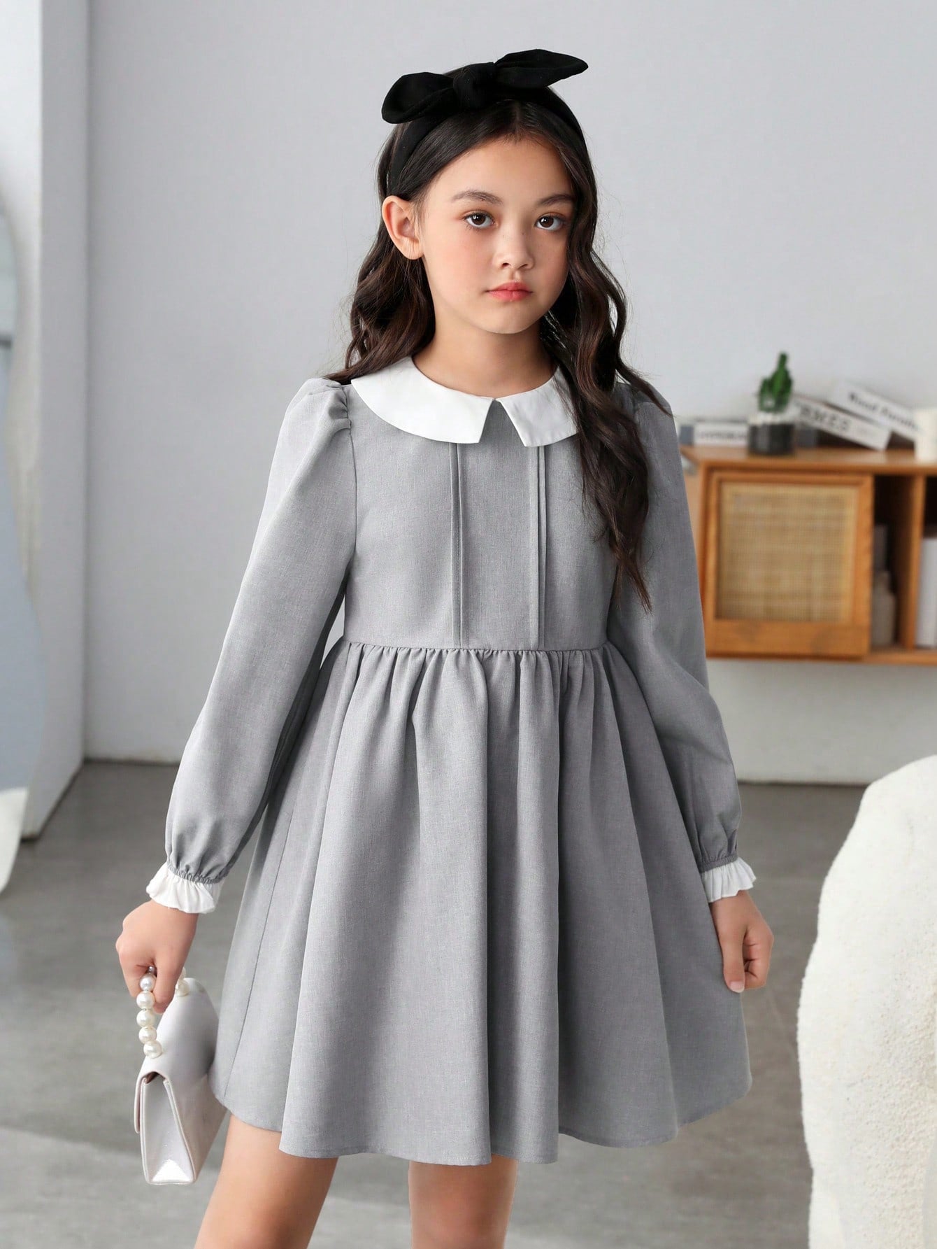 فستان سموك ياقة سحري اكمام منتفضة بنت طفل