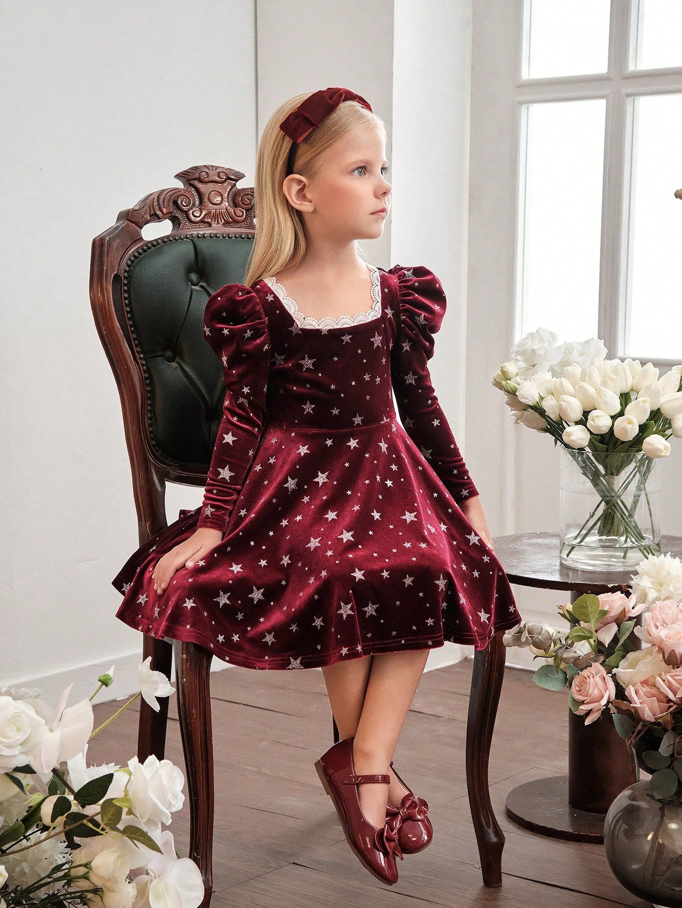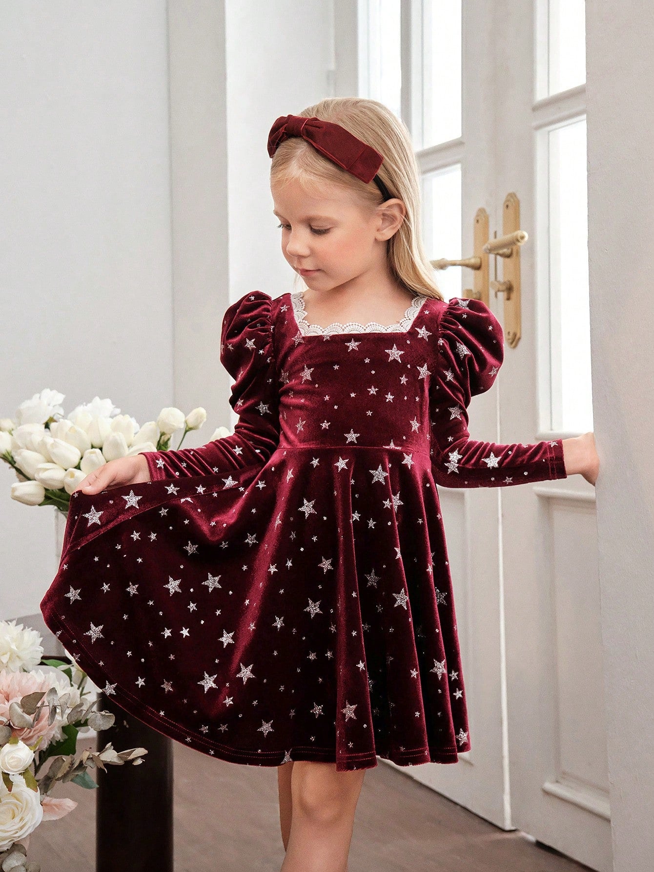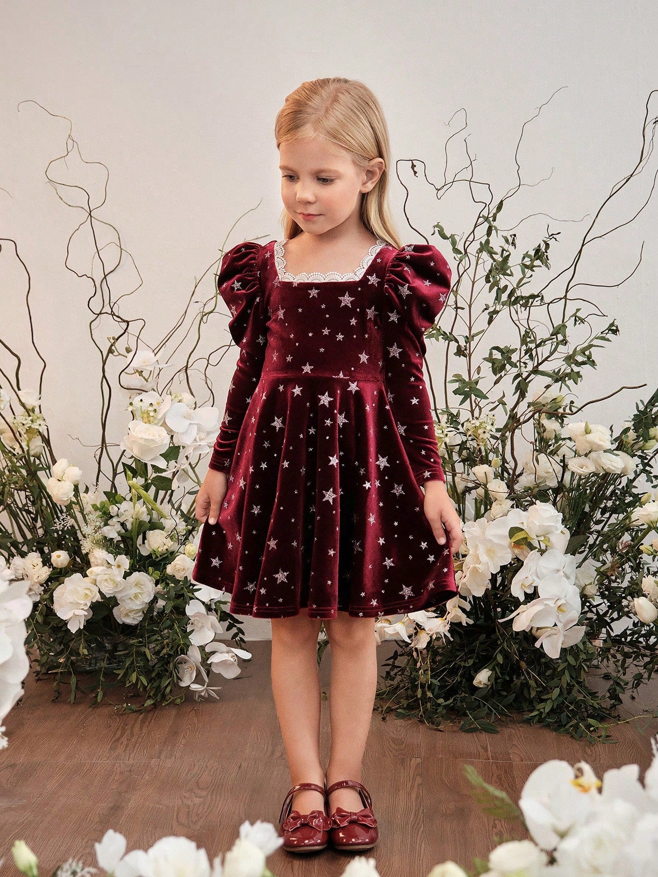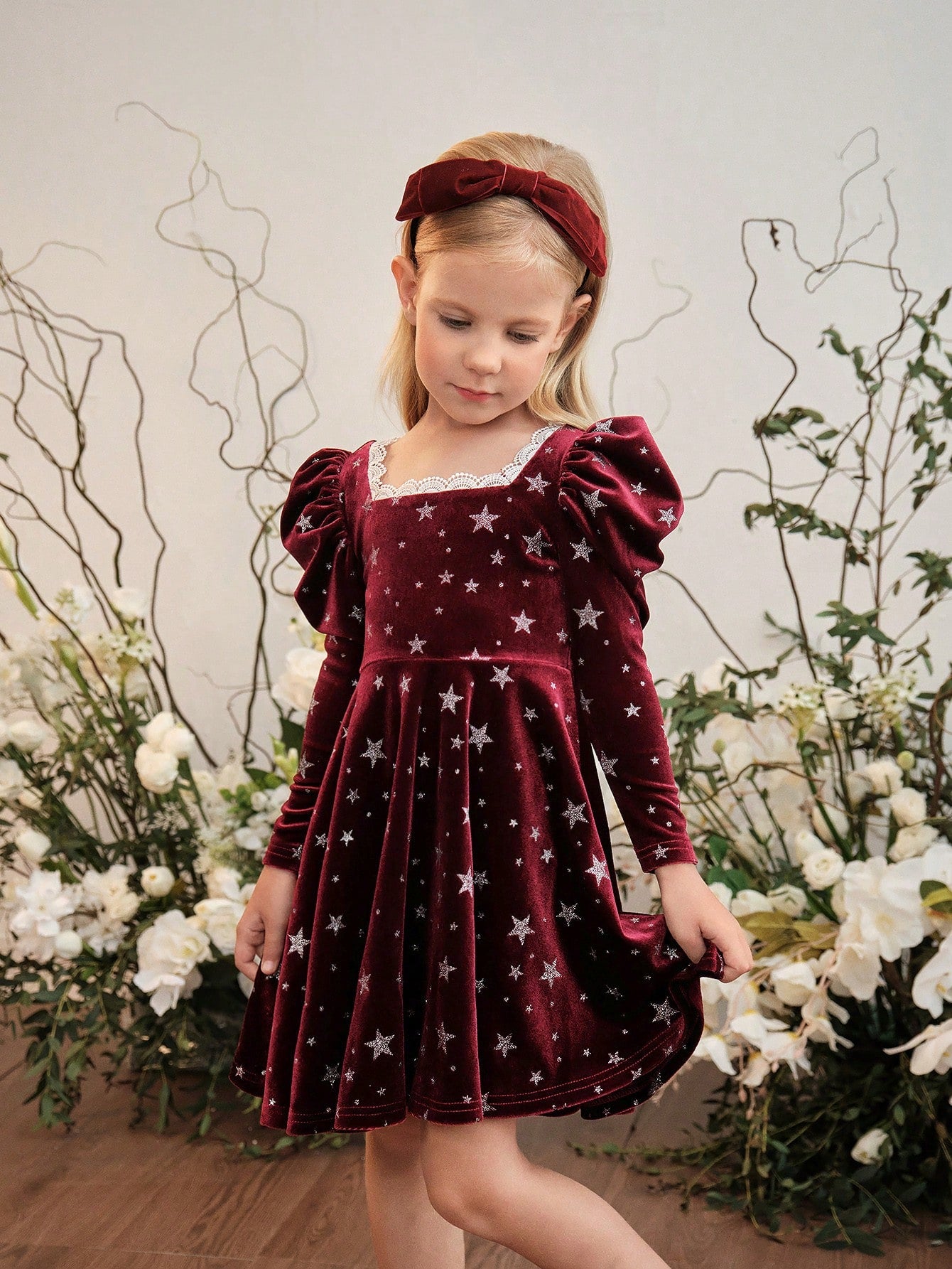 فستان سهرة بنقشة نجمة من الفيلكس الأحمر للفتيات