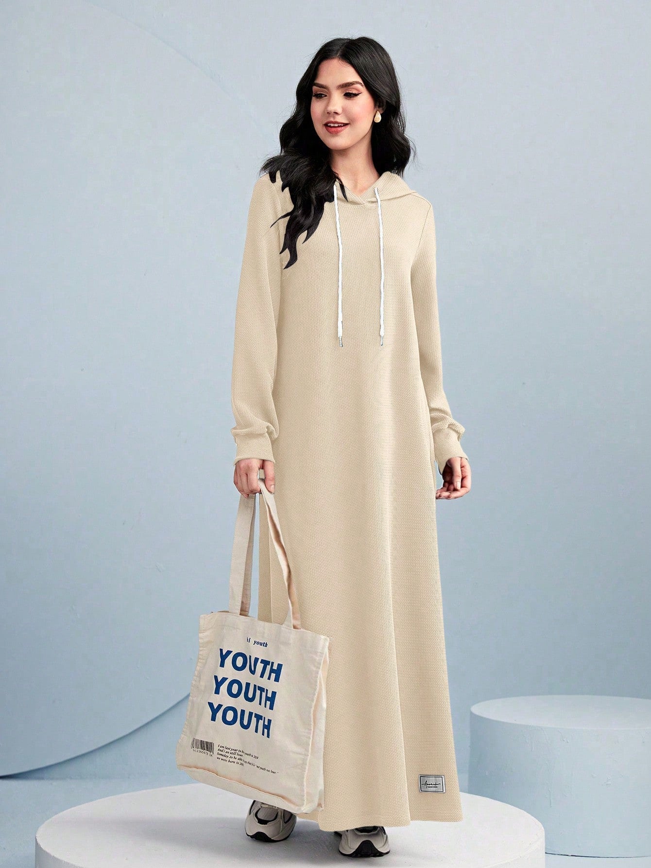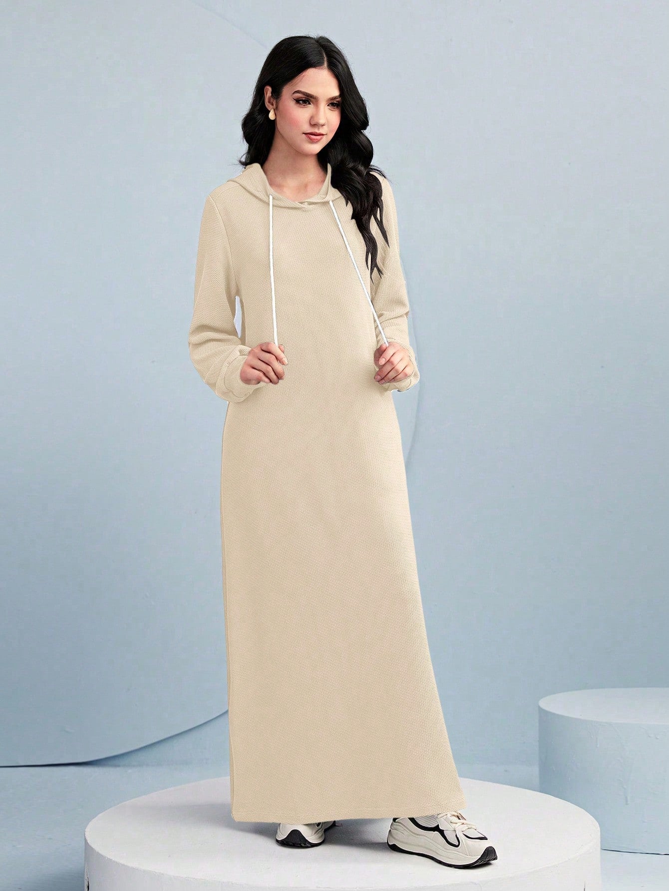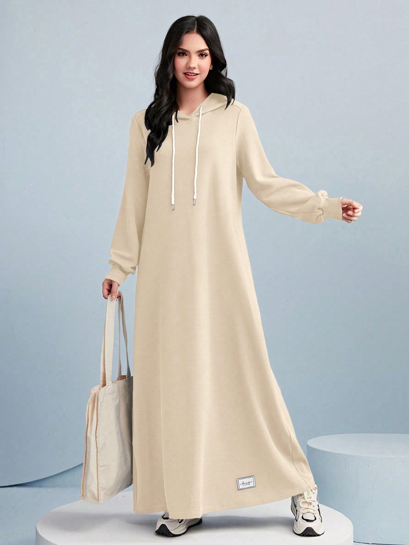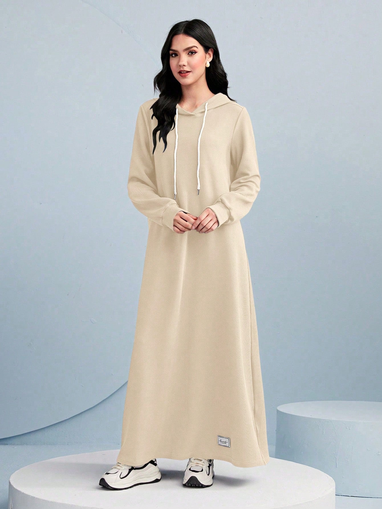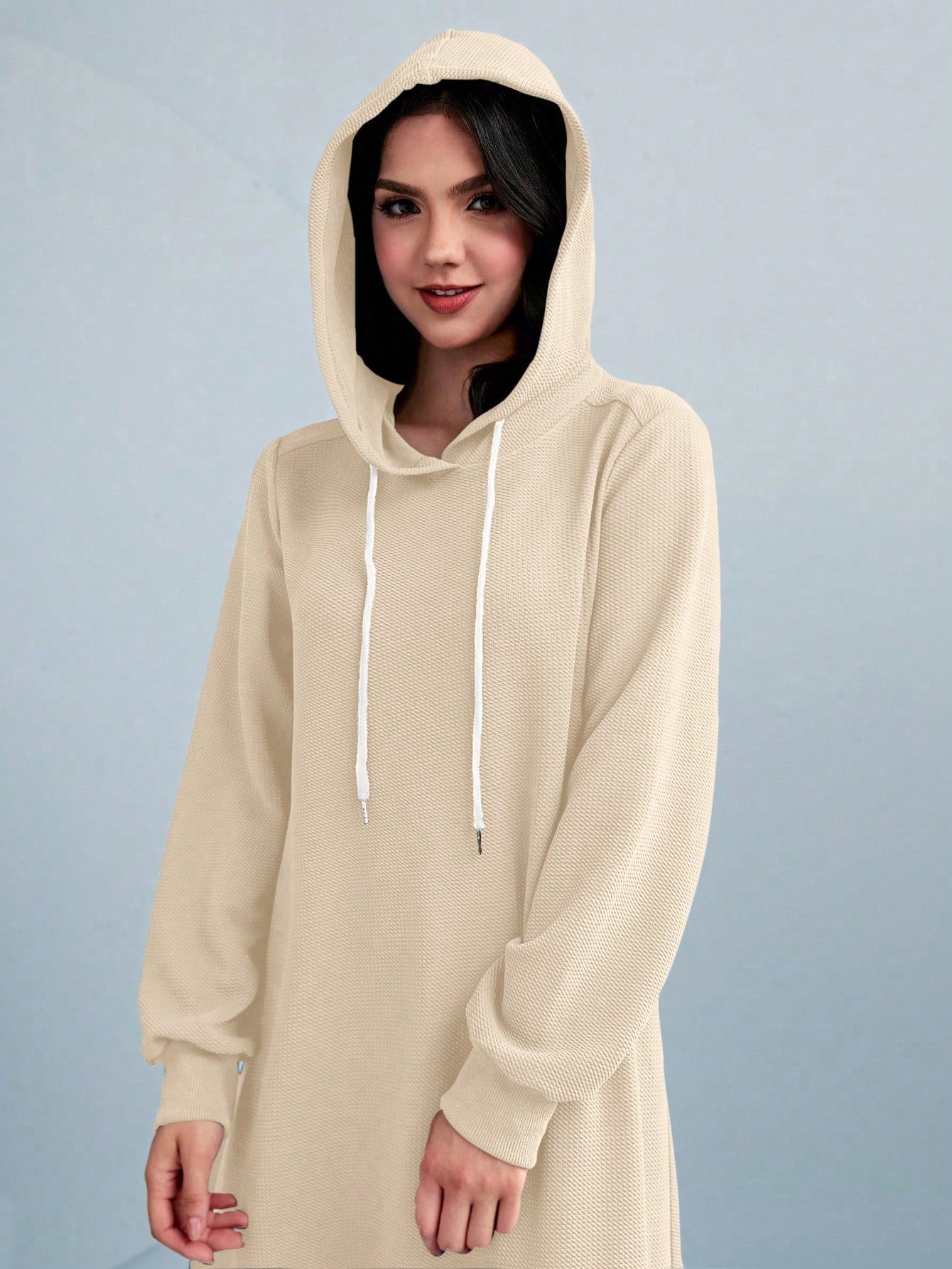 فستان سويت شيرت كاجوال فضفاض برباط من النساء ذو موحد اللون وكابوشون