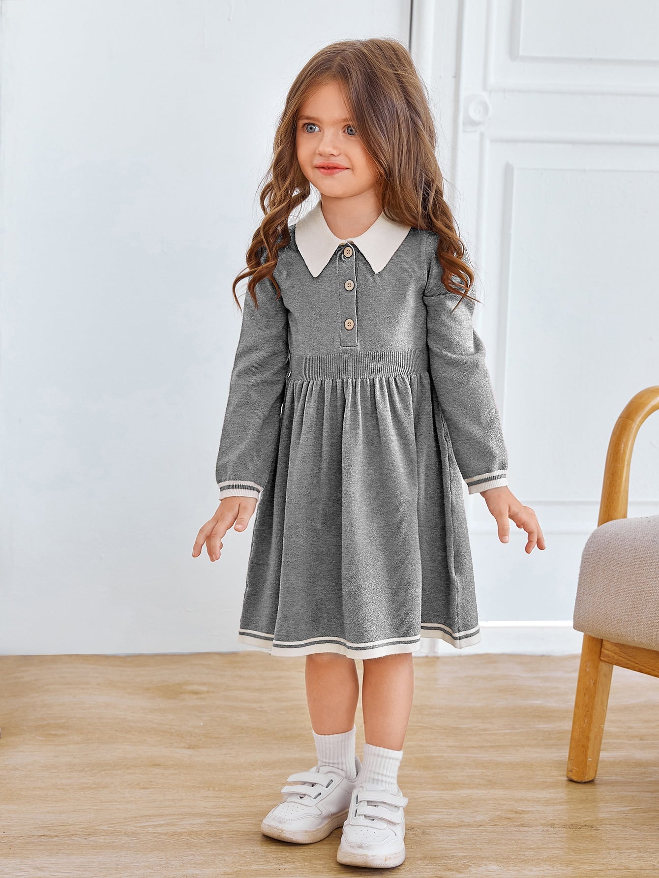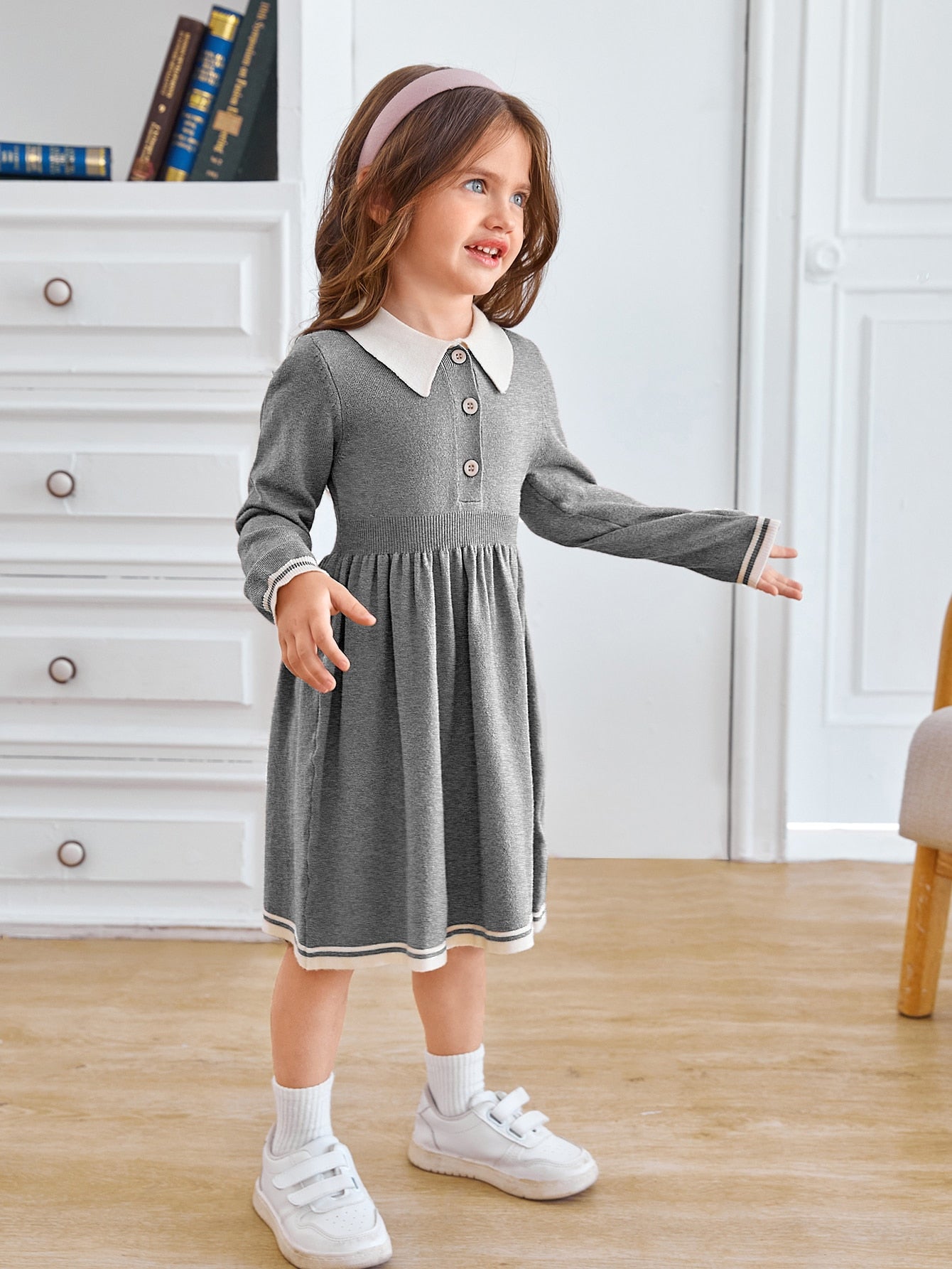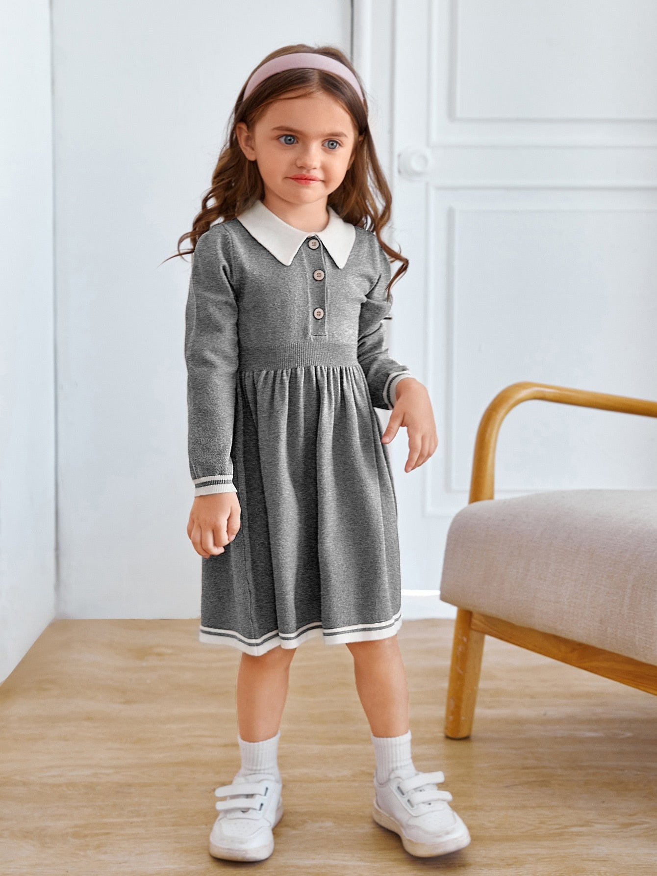 فستان صوفي للفتاة الصغيرة بأزرار وتفاصيل متباينة