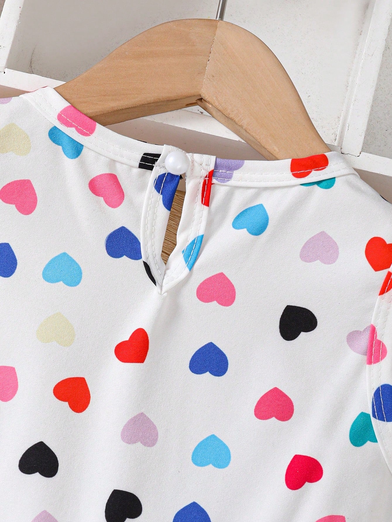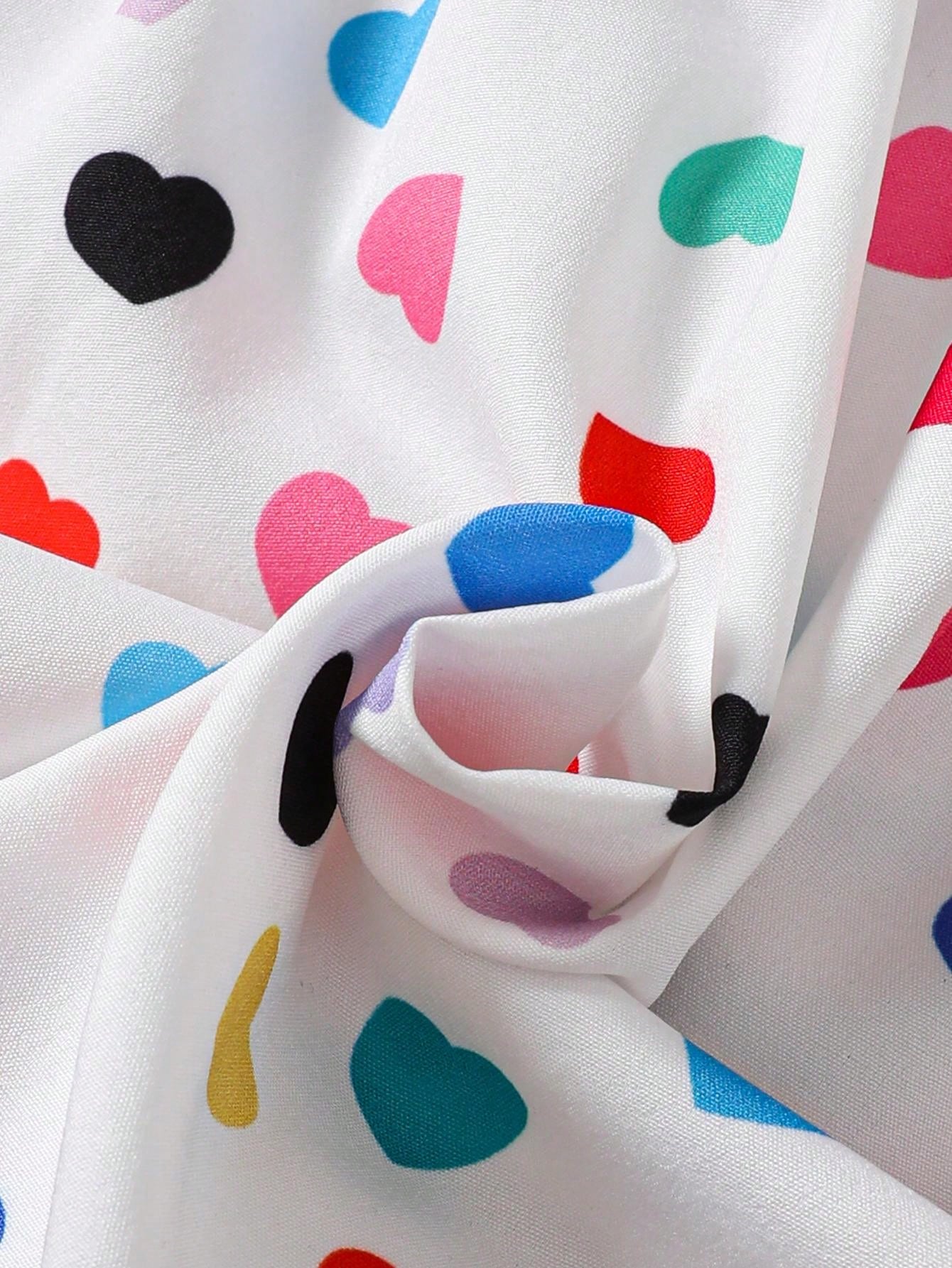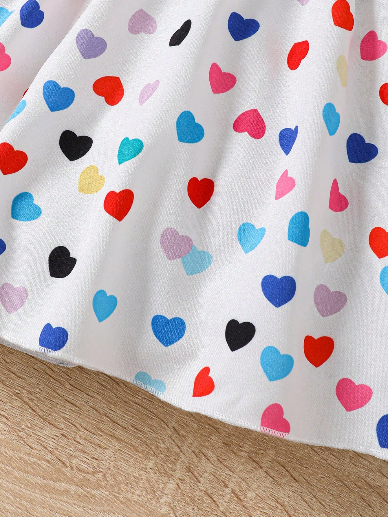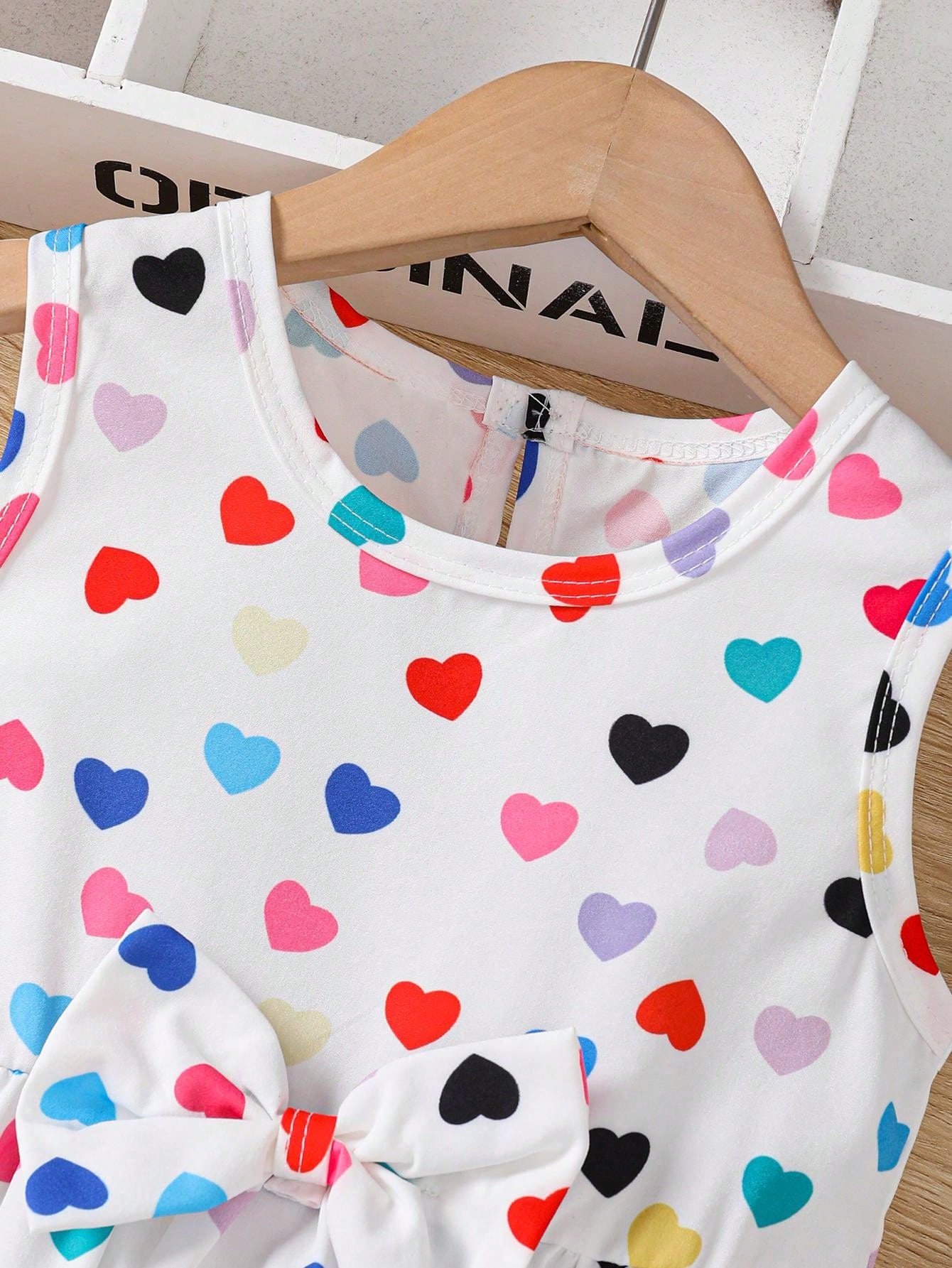 فستان صيفي لطيف للفتاة الصغيرة مطبوع بقلوب ملونة مع قبعة مطابقة