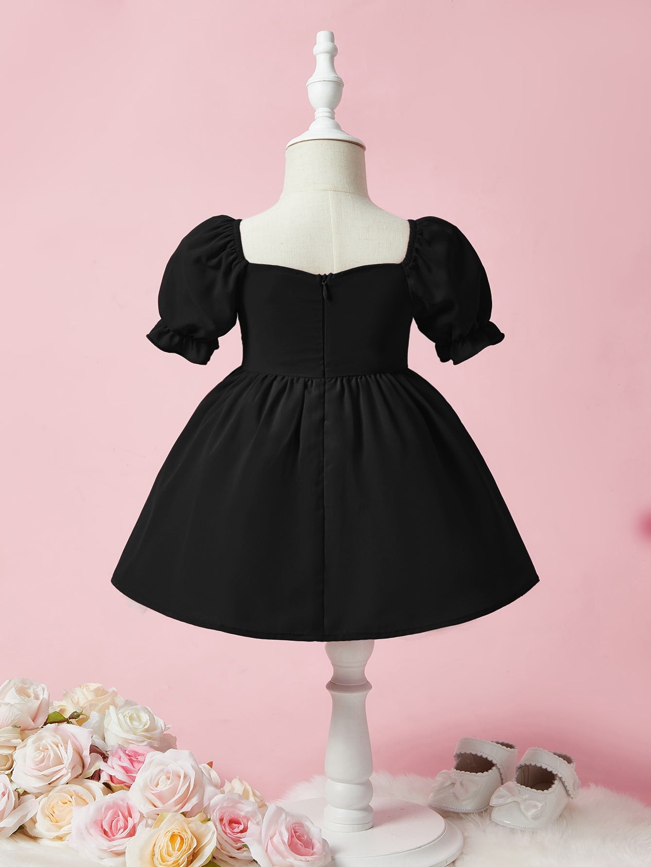 فستان طفلة بأكمام منتفخة وياقة حبيبة