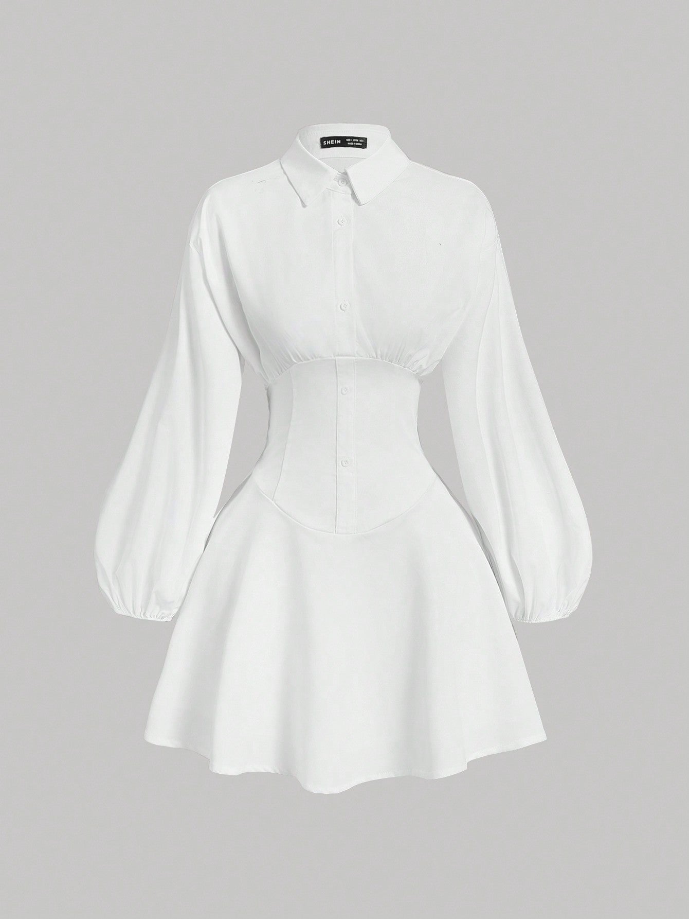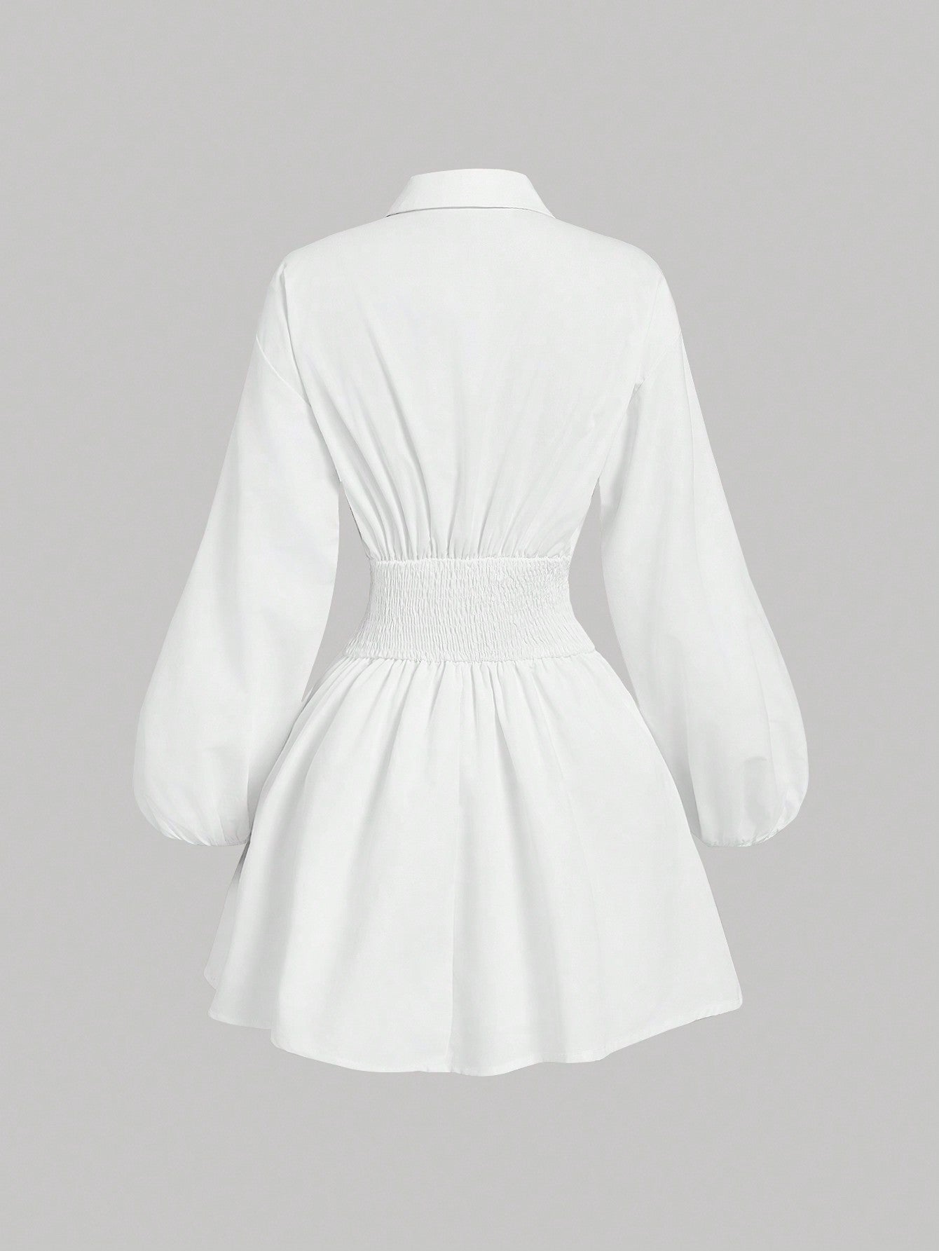 فستان قميص نسائي مخصر بأكمام منتفخة ذو أكمام طويلة