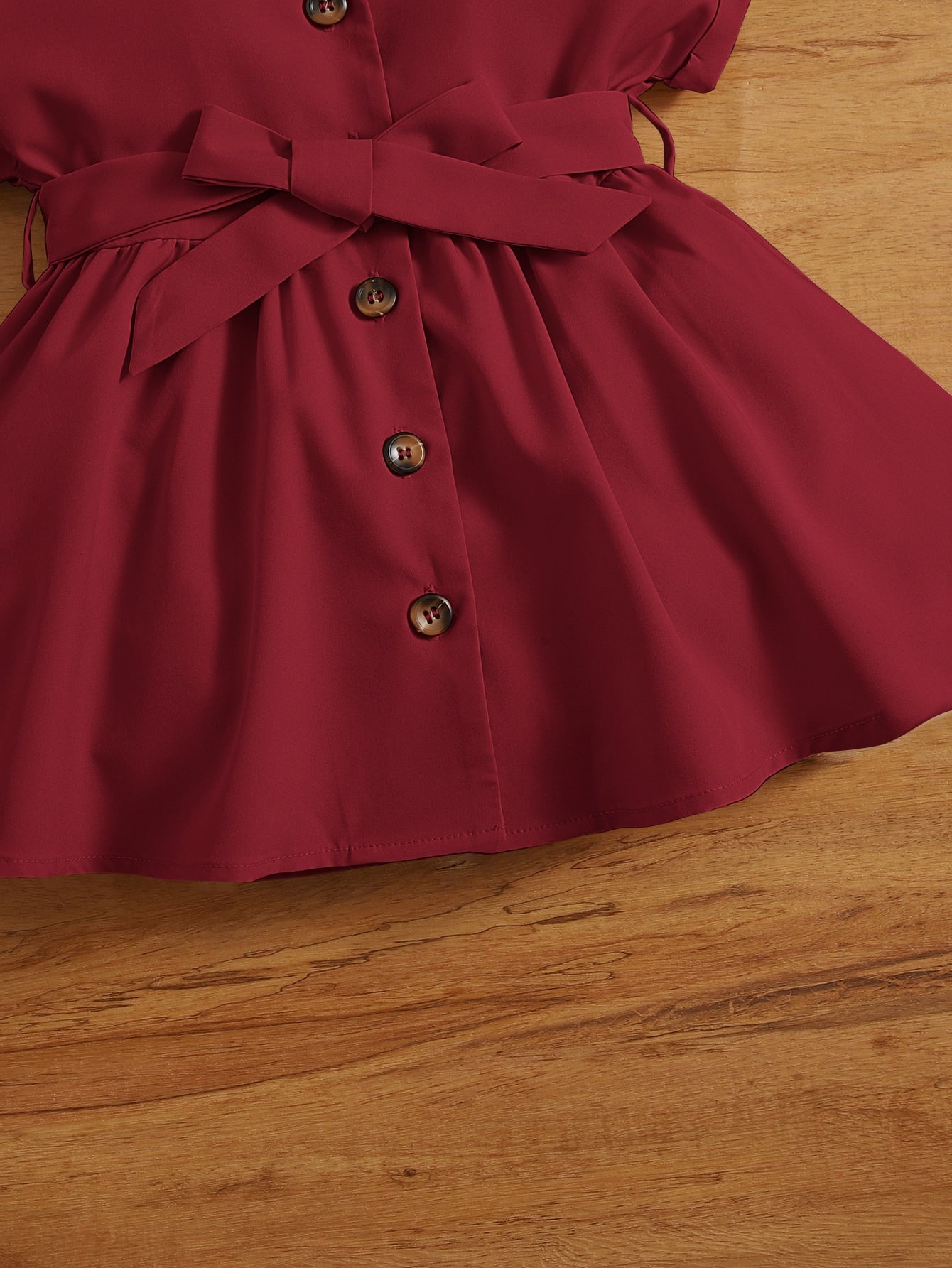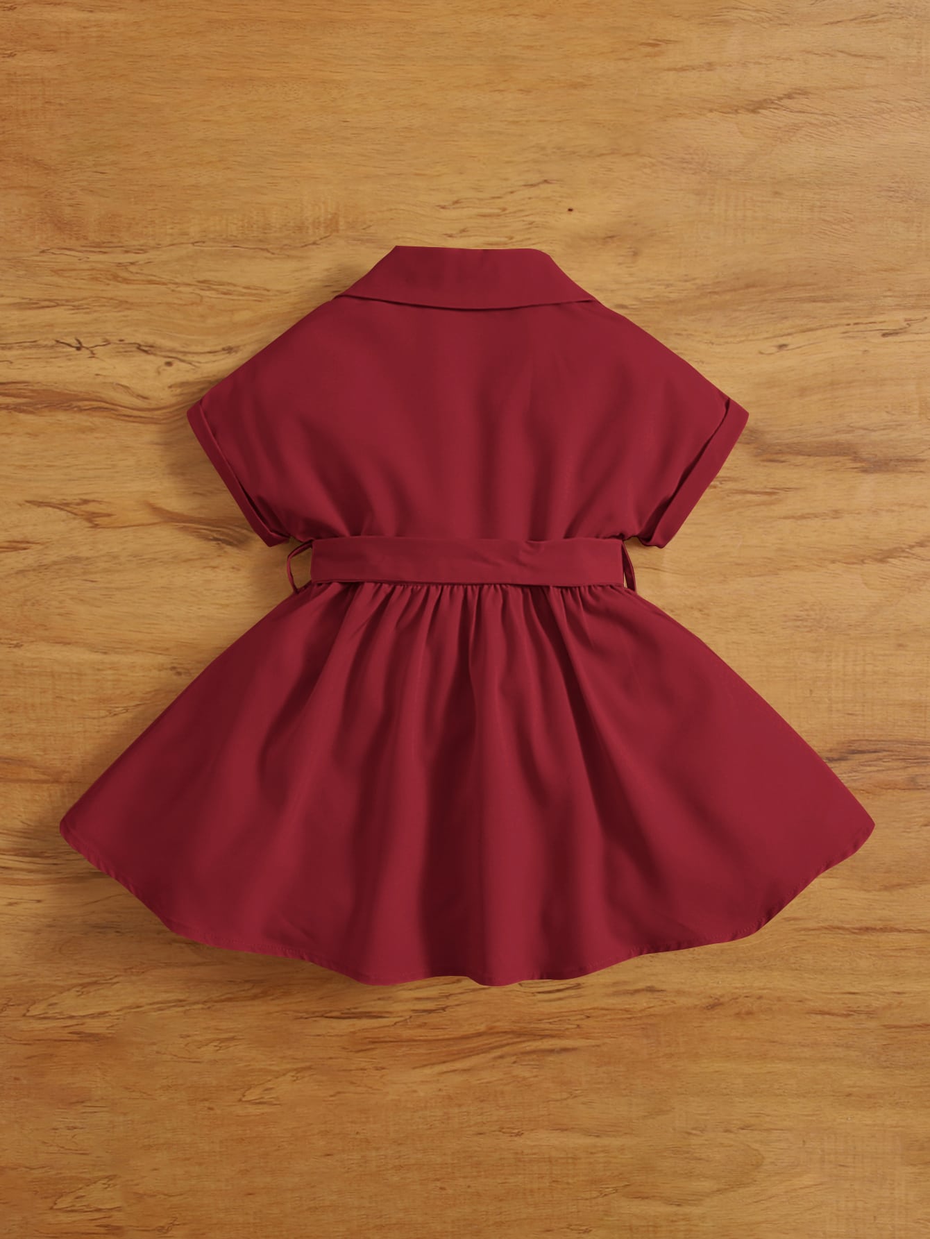 فستان قميص ياقة مطوي مسنن حزام للاطفال