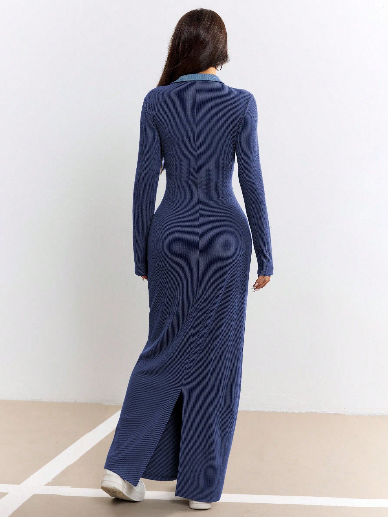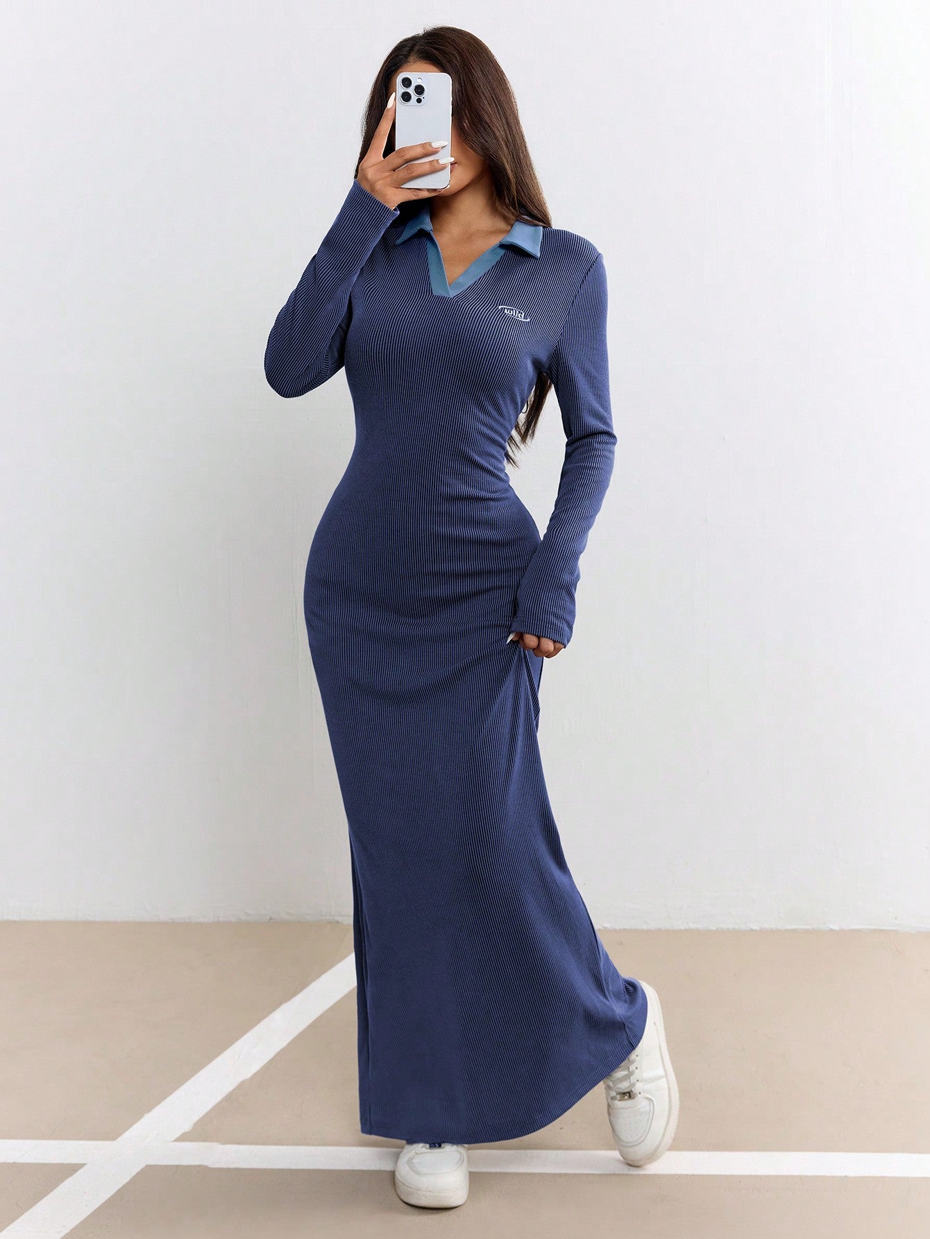 فستان كاجوال بأكمام طويلة مع طباعة أحرف وألوان متباينة على الطوق، للربيع والصيف