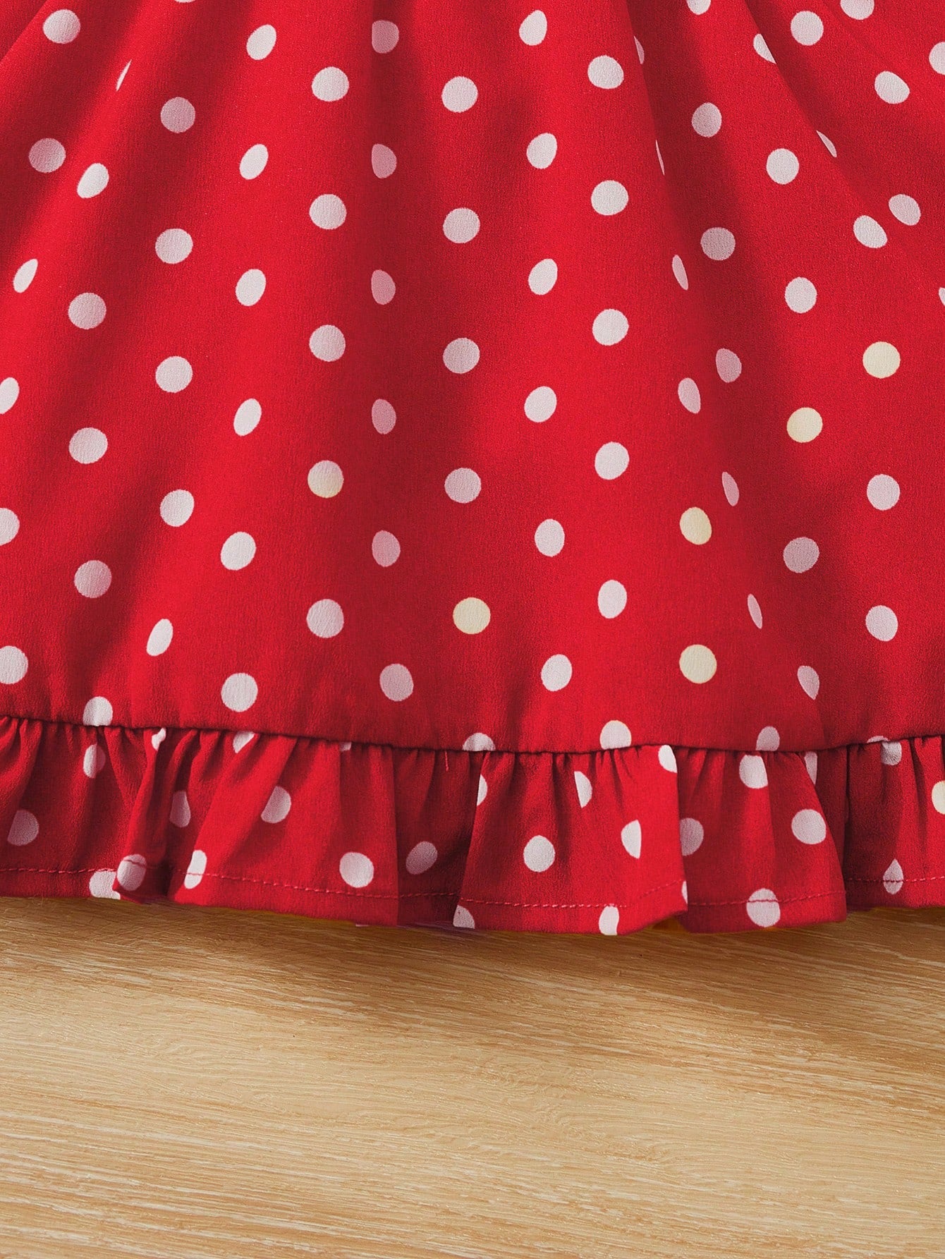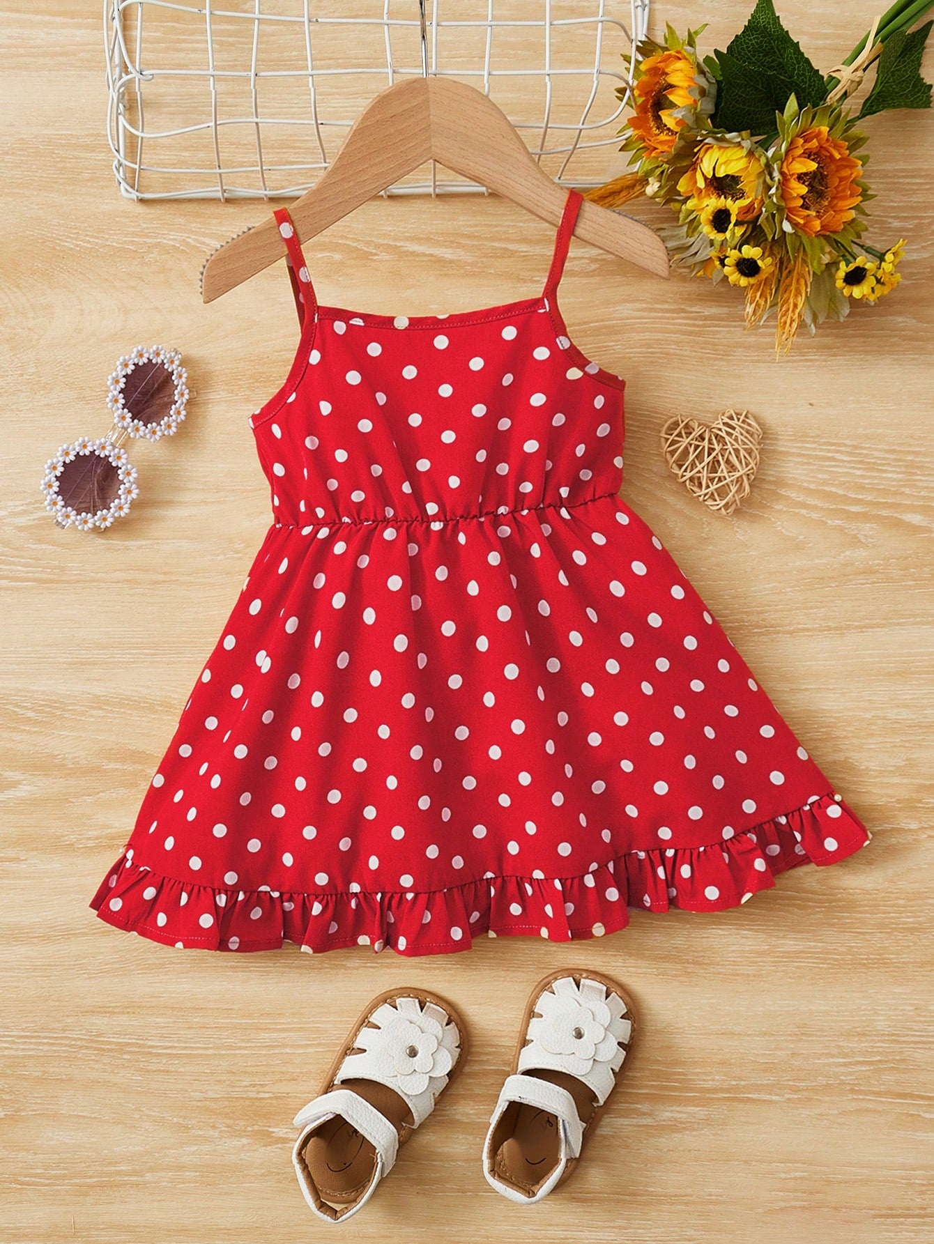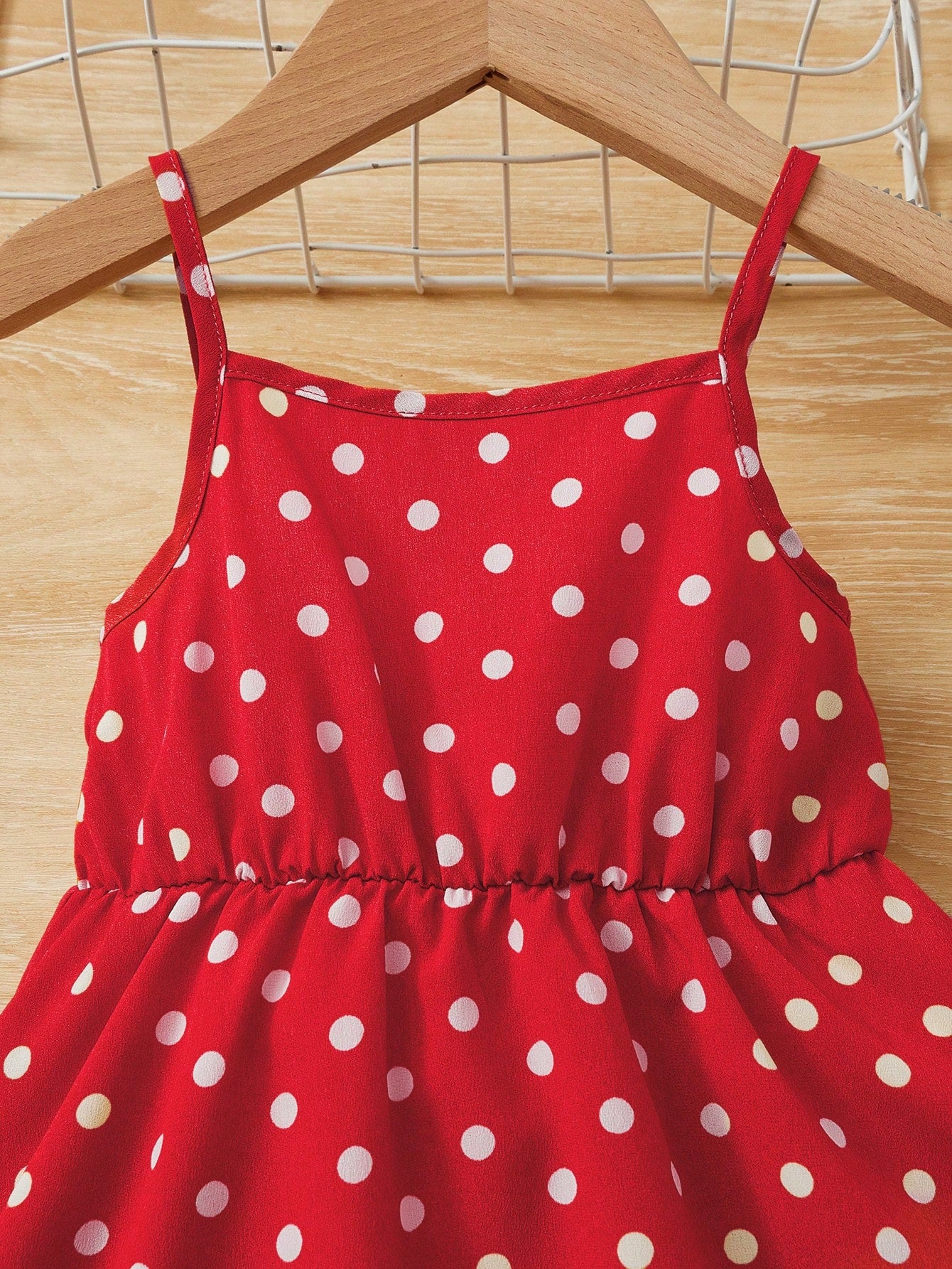 فستان كامي بناتي بنمط النقاط المذهبة و جنزير مزين بطبقات