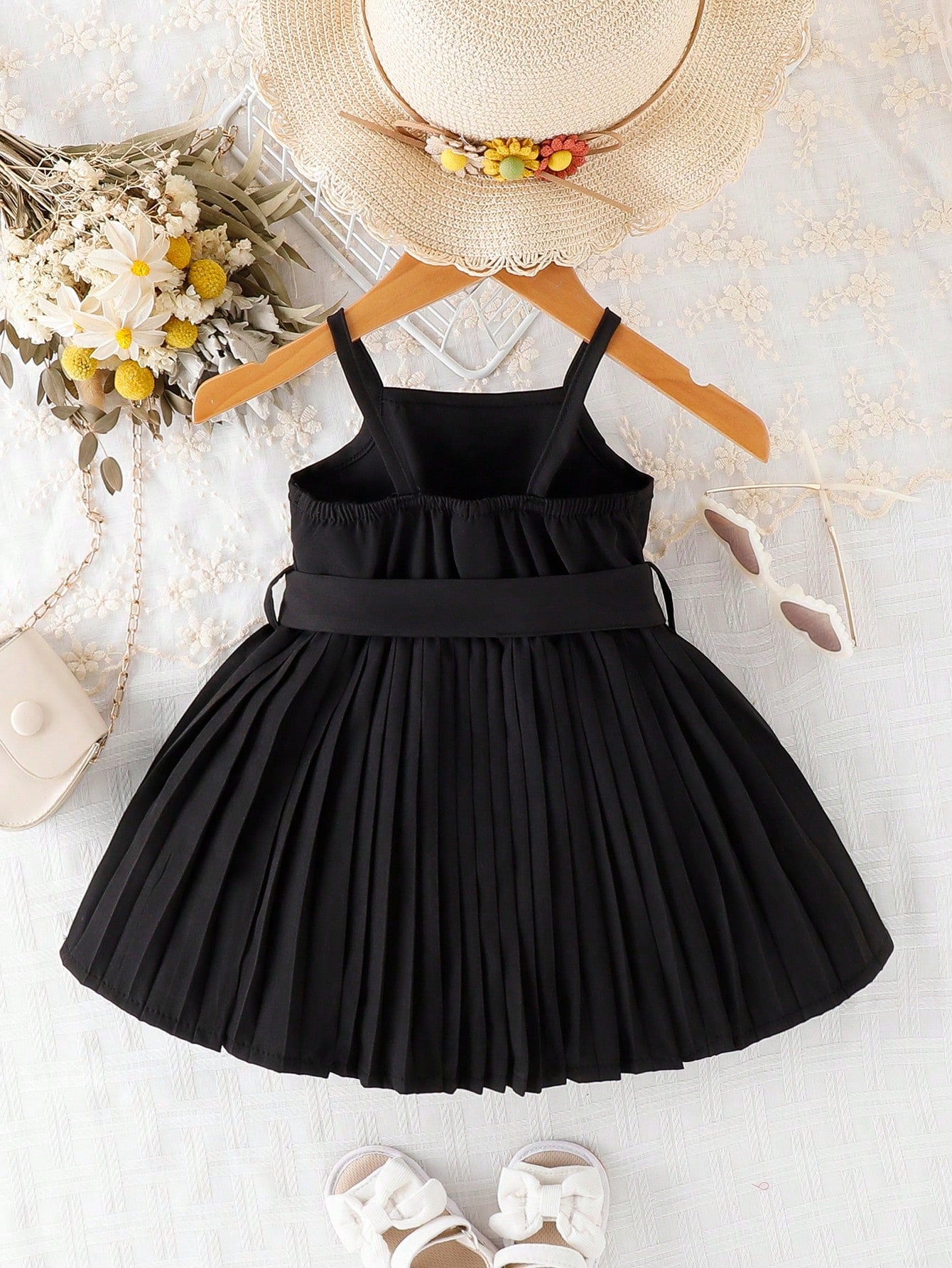 فستان كامي موحدة اللون حافة تجاعيد للاطفال
