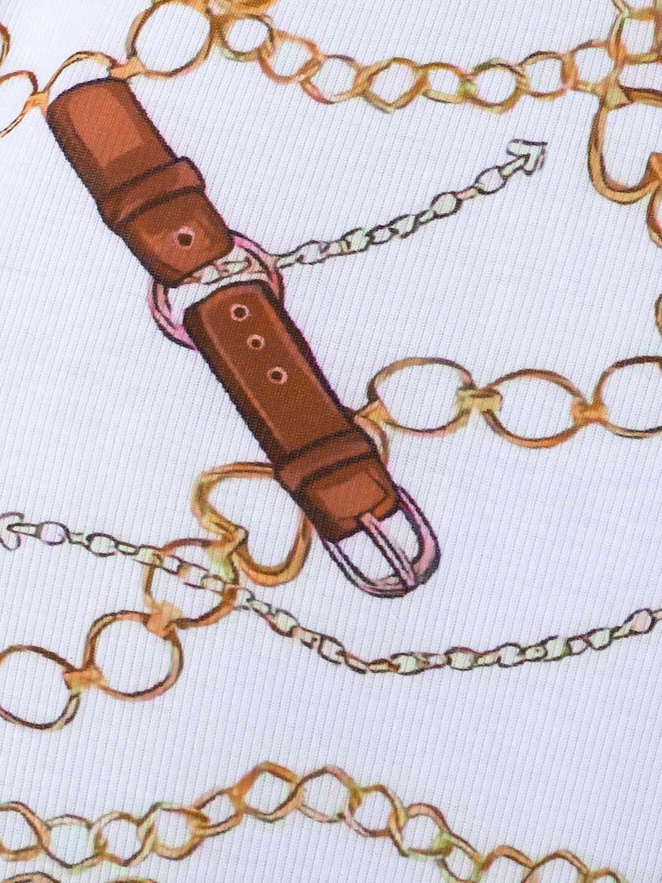 فستان كام بطباعة السلسلة للبنت الطفل مع تي شيرت عقدة أمامية