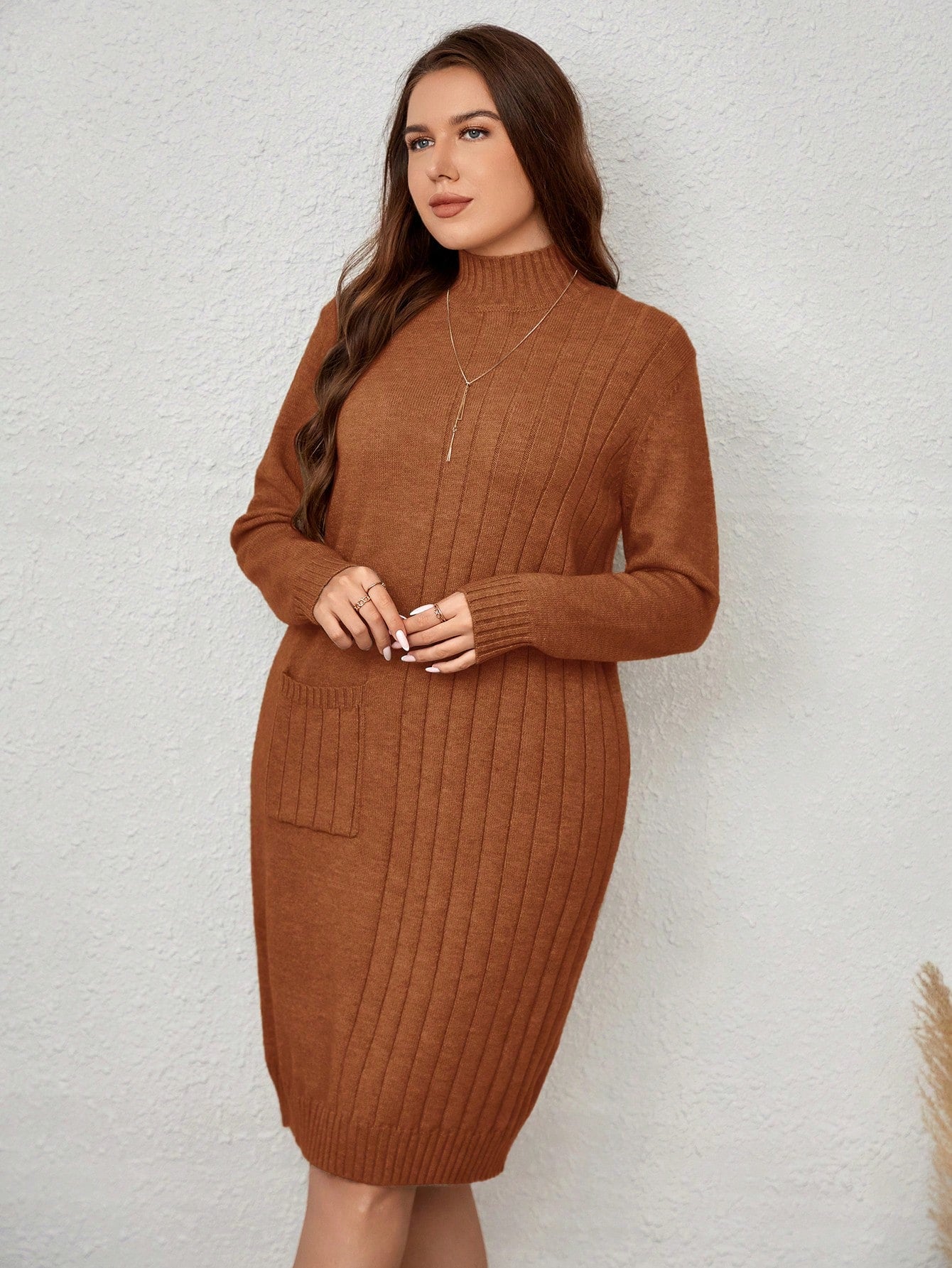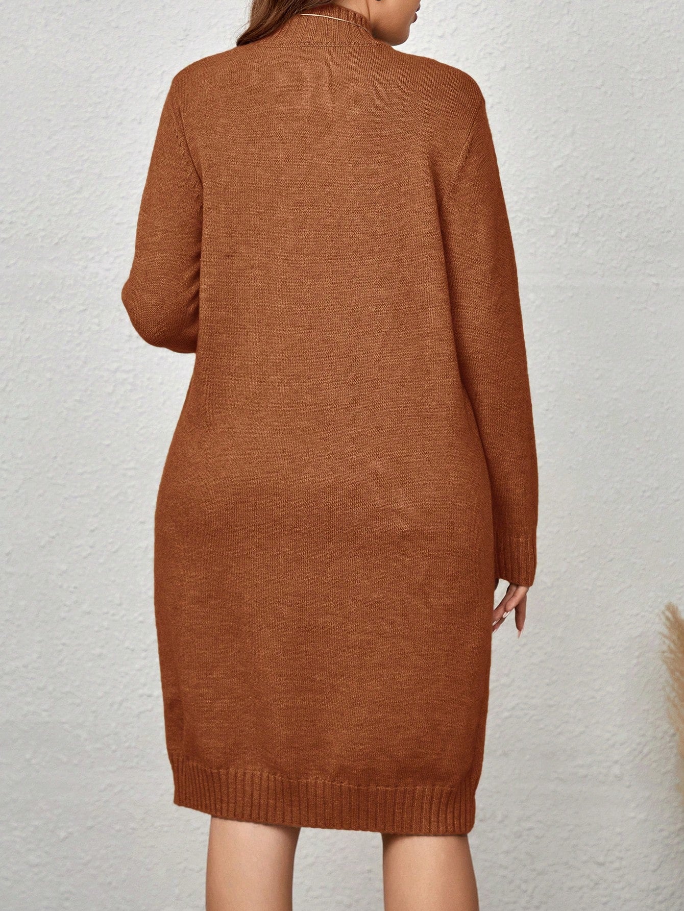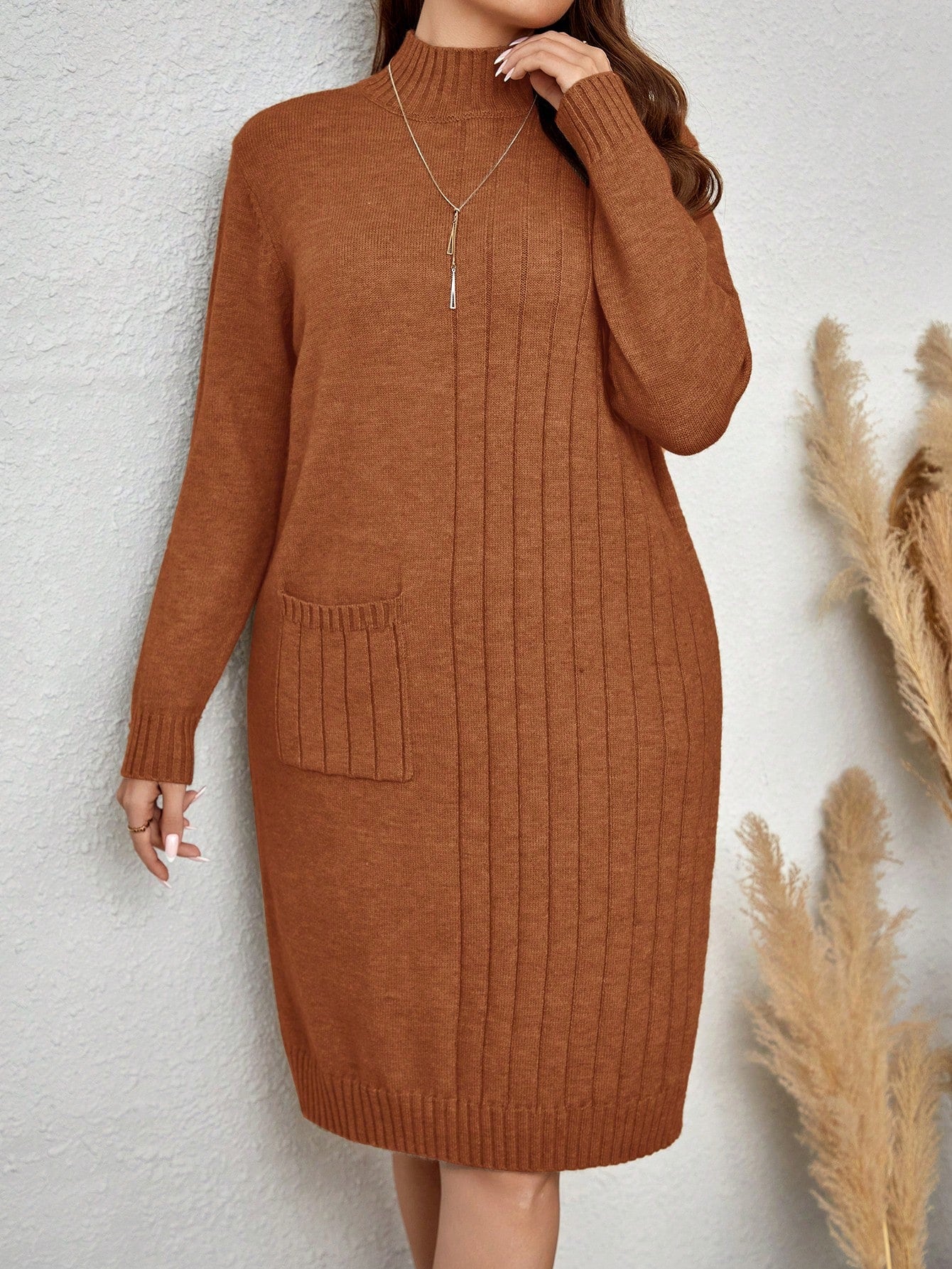 فستان كنزة صوفية مضفر بأكمام طويلة مع جيوب بمقاسات كبيرة