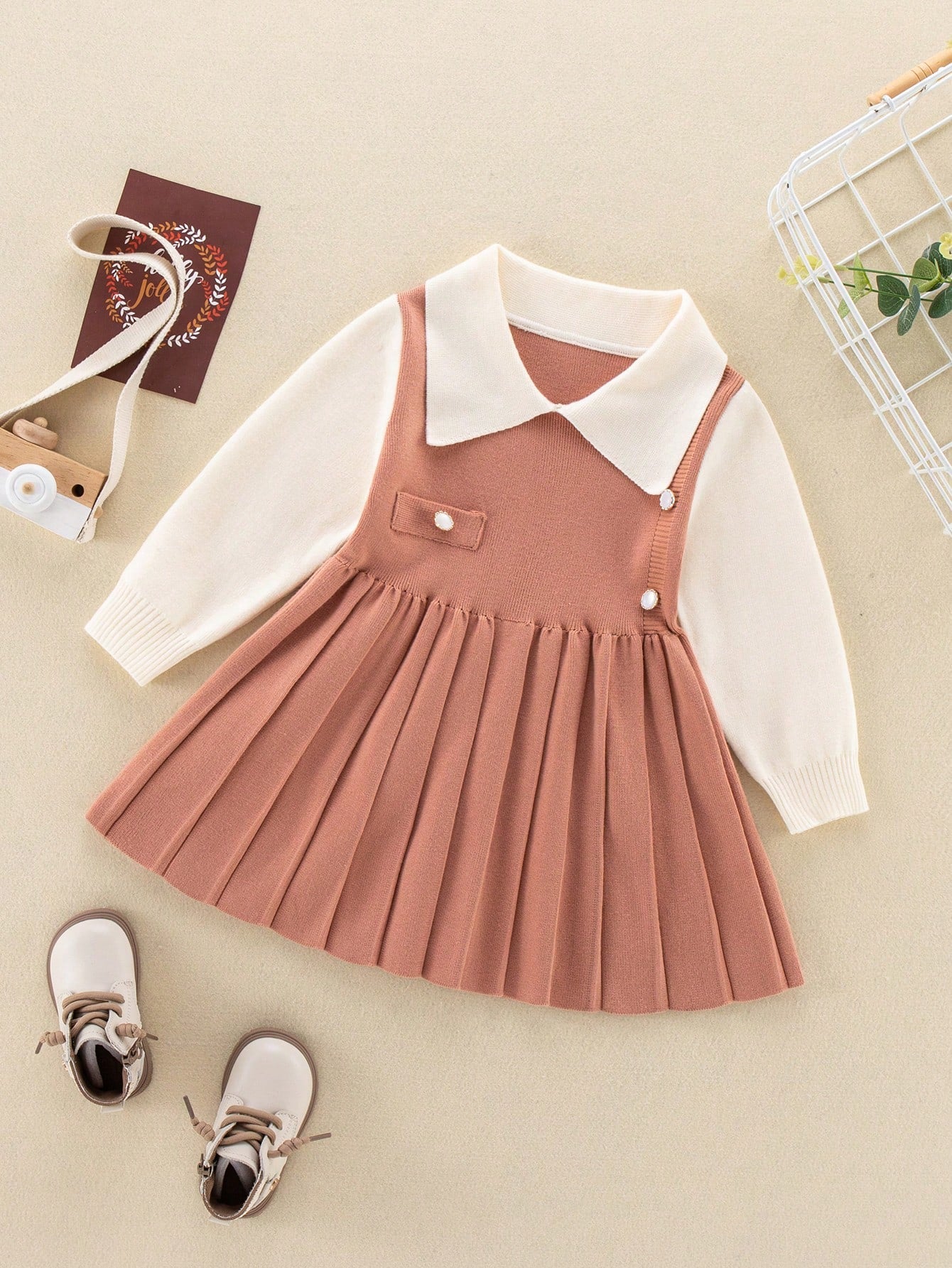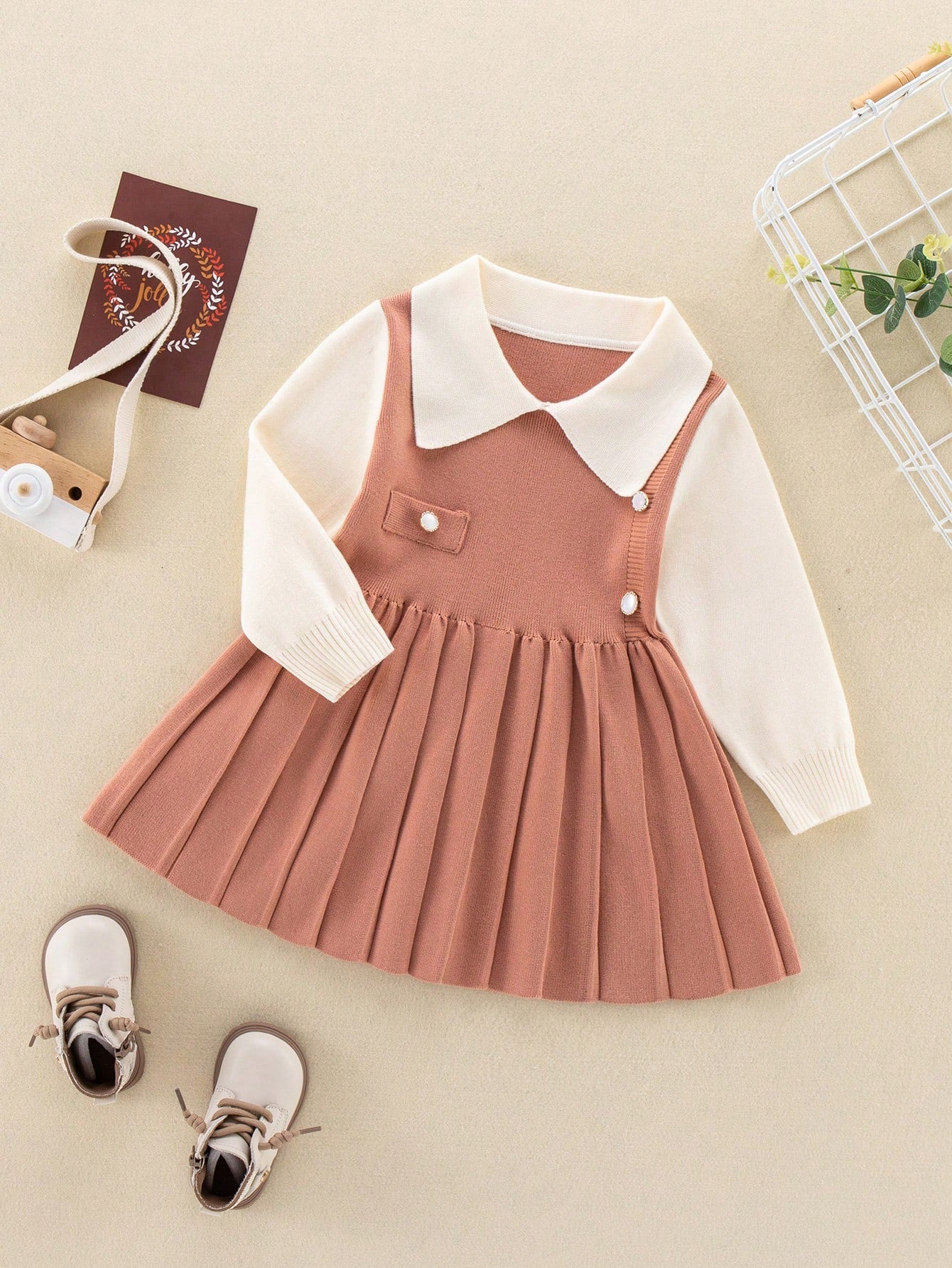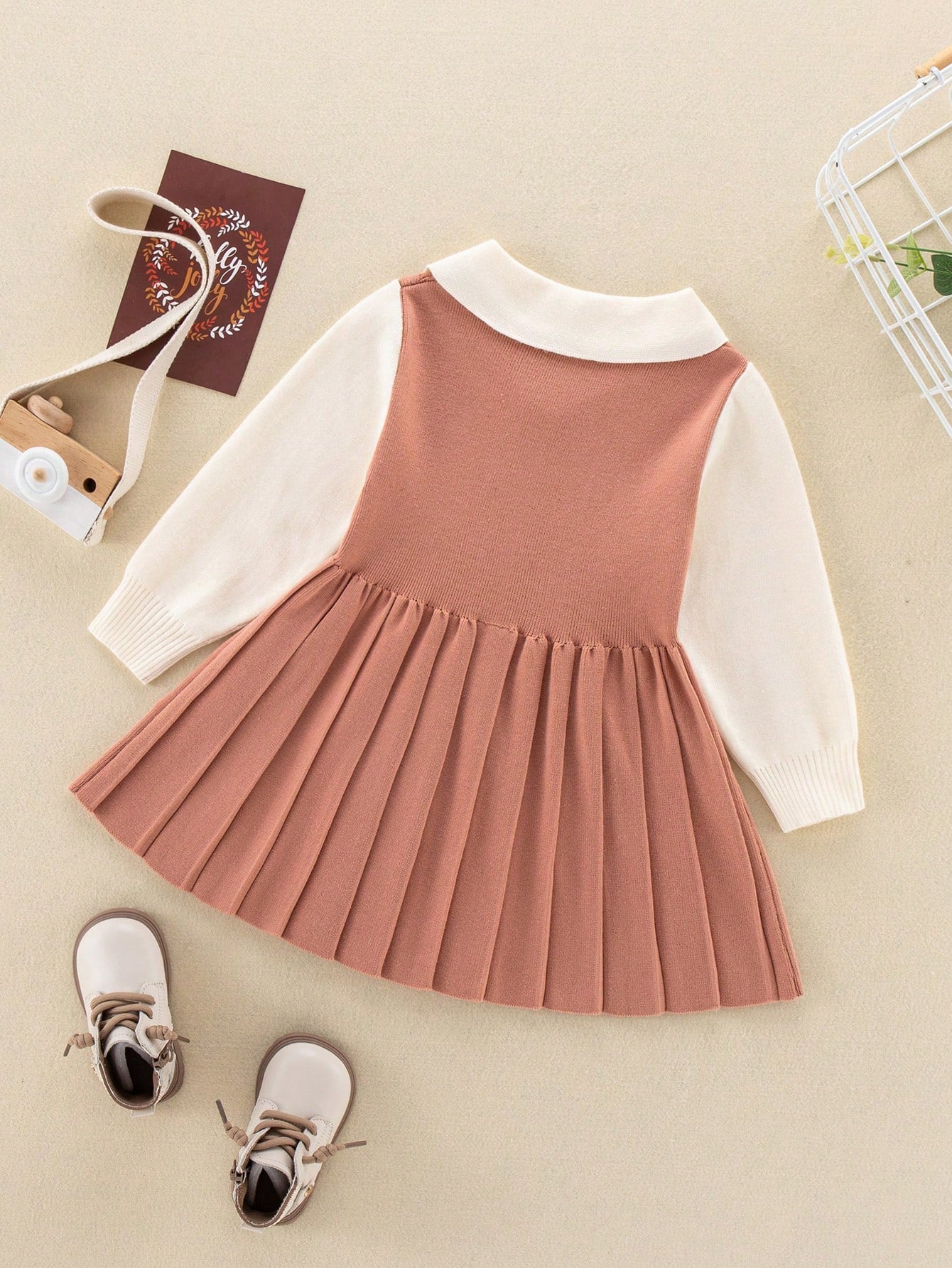 فستان لونين حافة تجاعيد 2 في 1 حافة تجاعيد بنات
