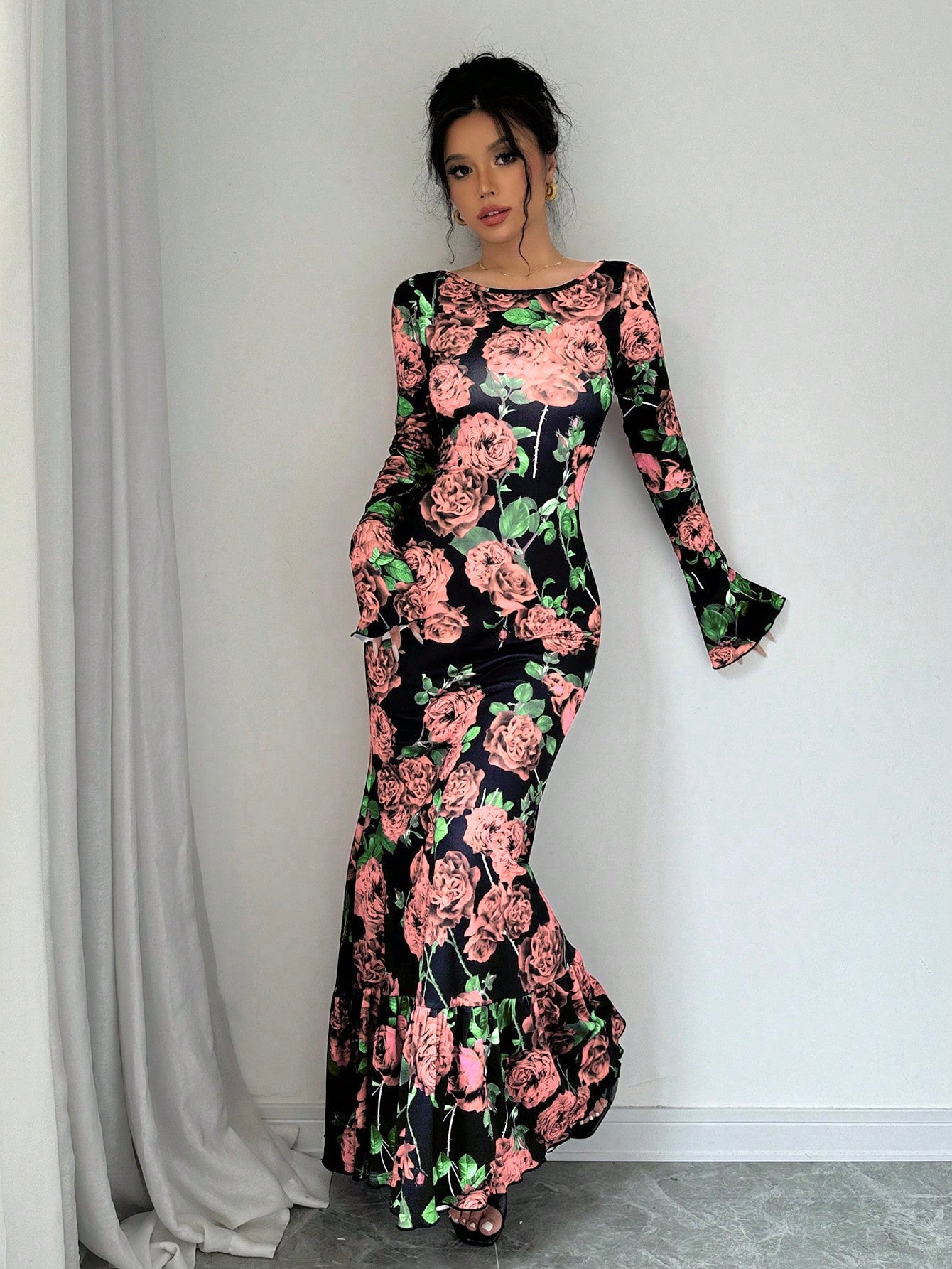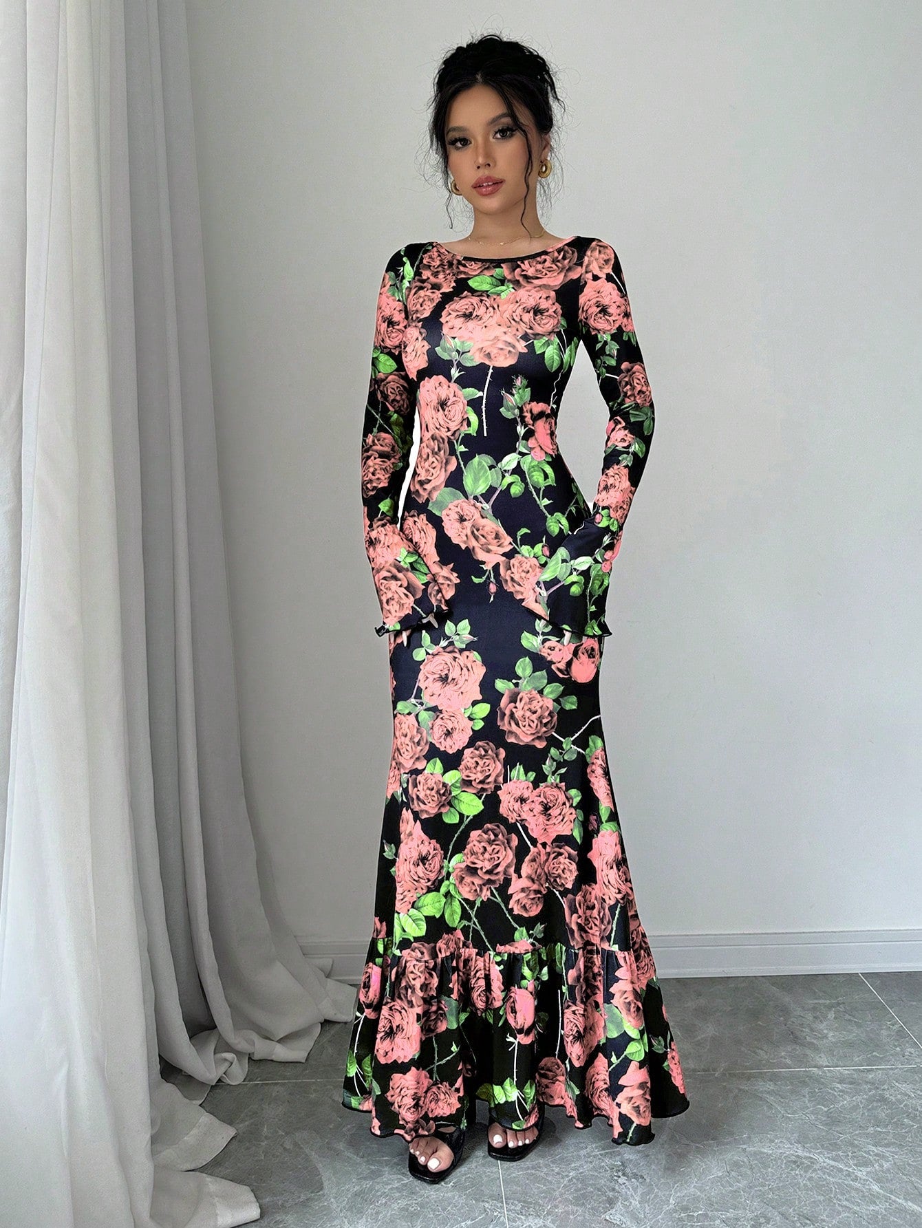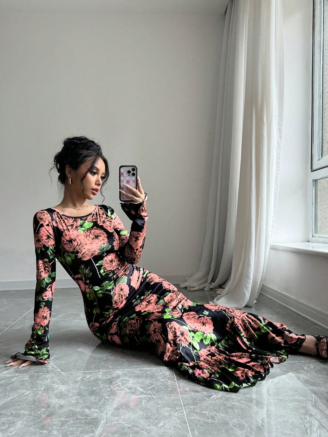 فستان ماكسي كاجوال للنساء بطبعات زهور