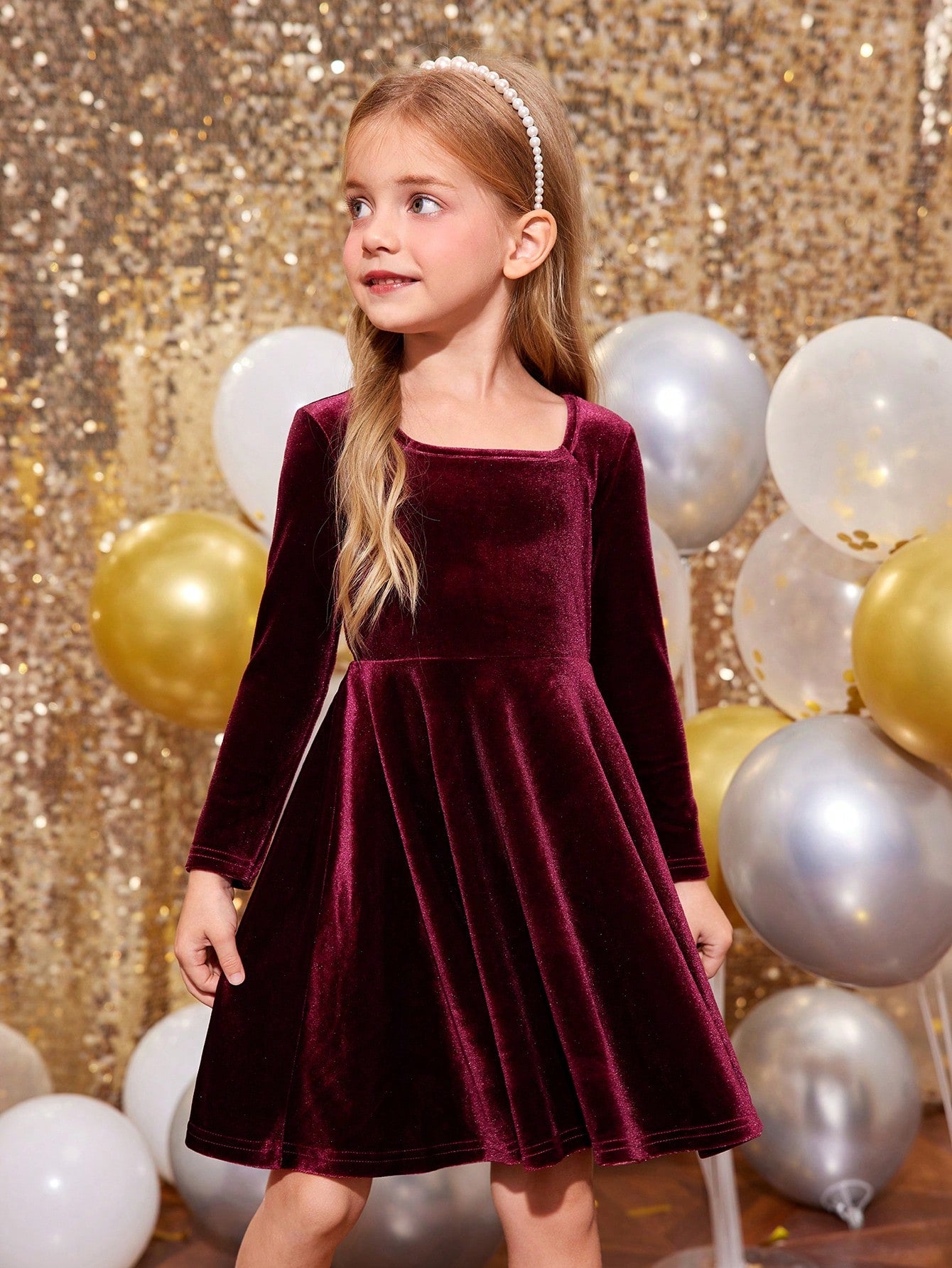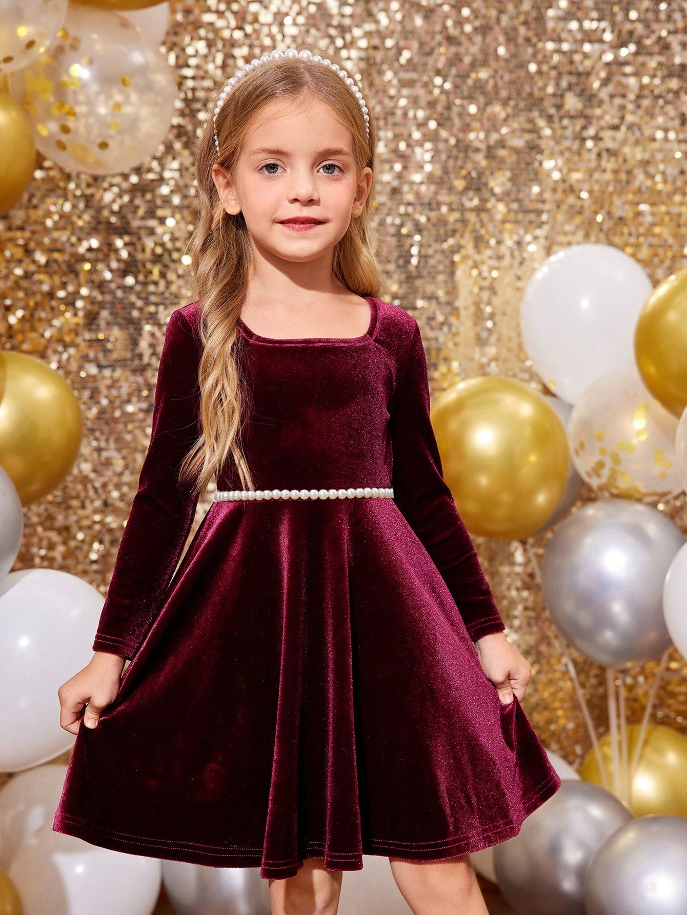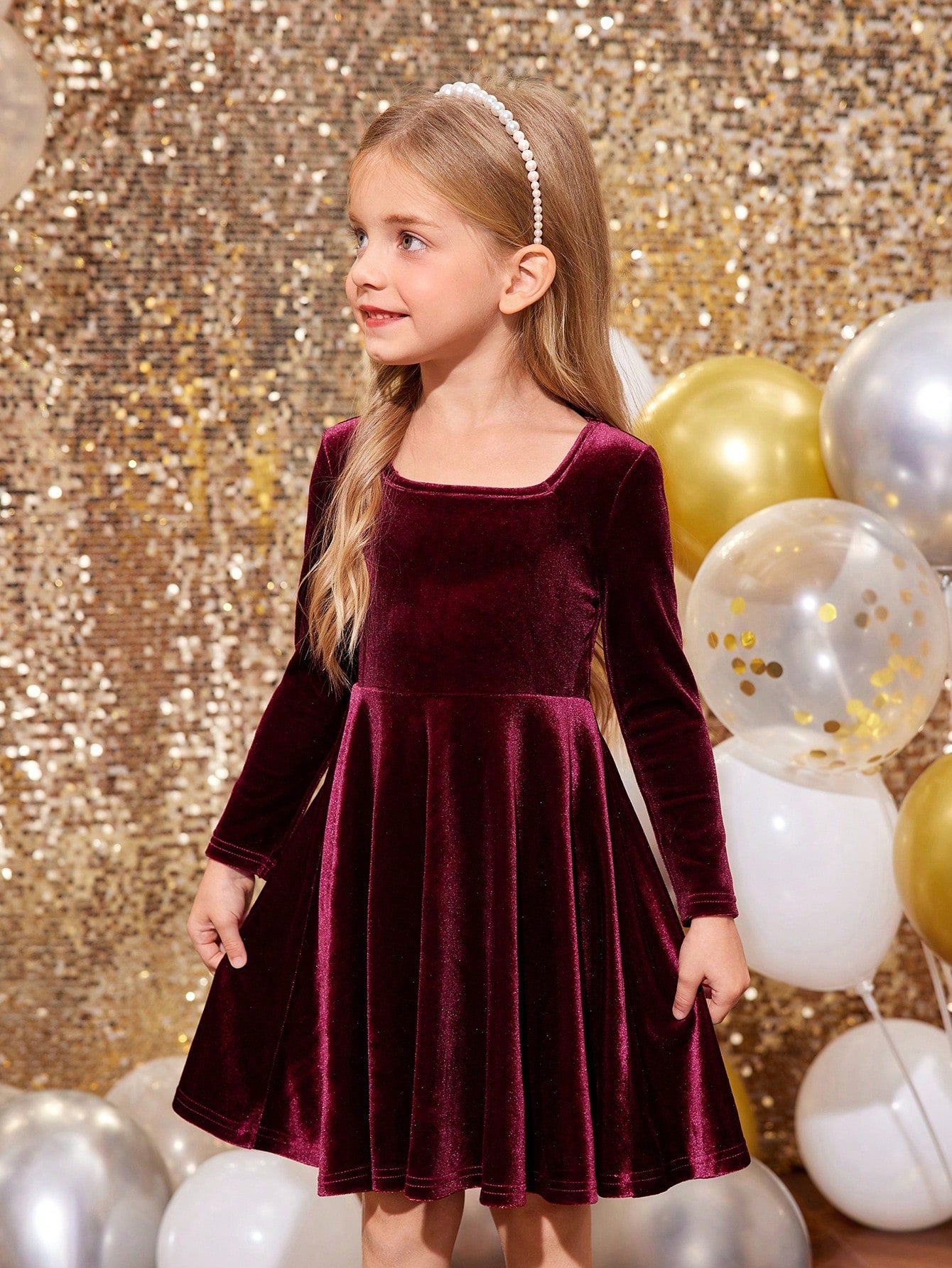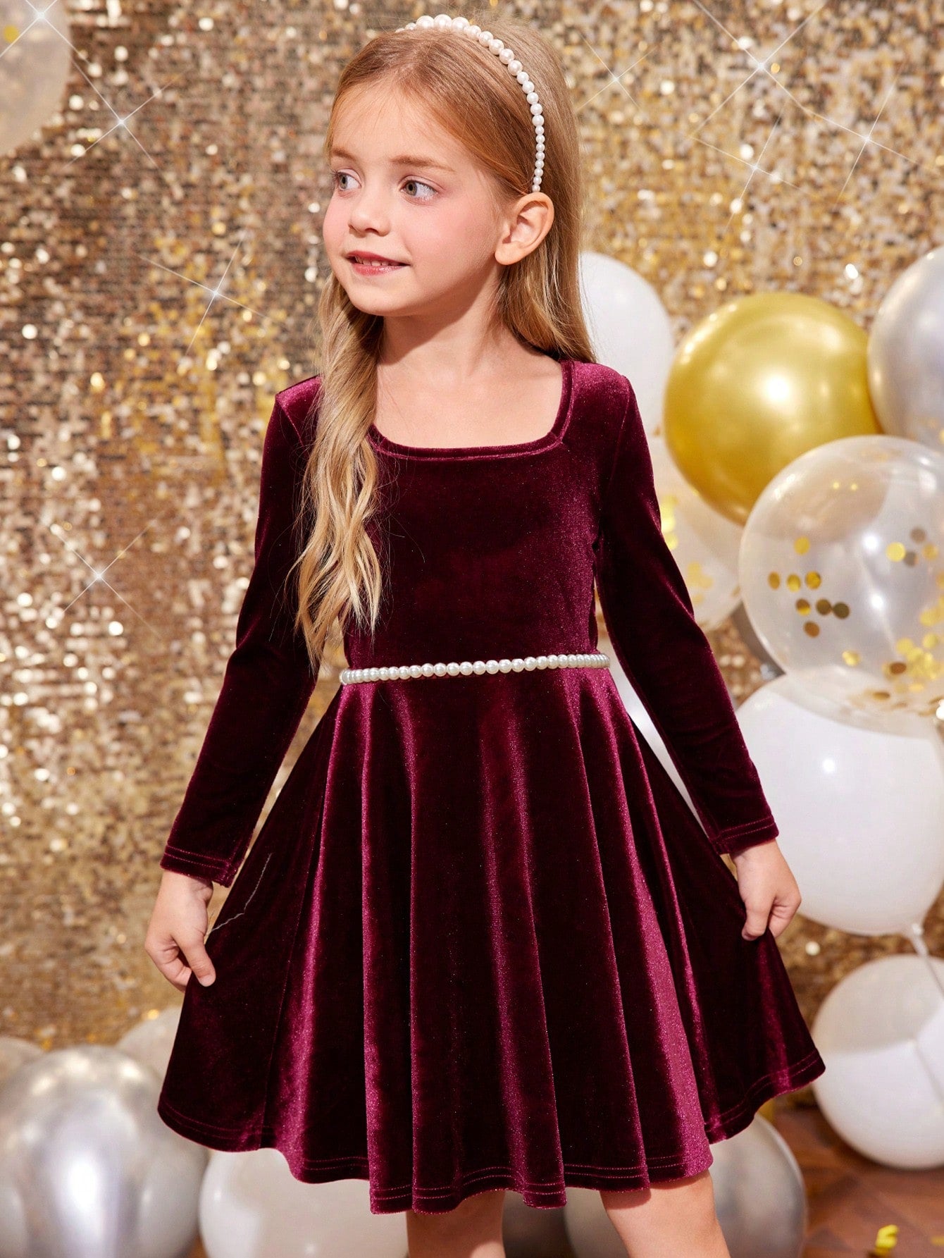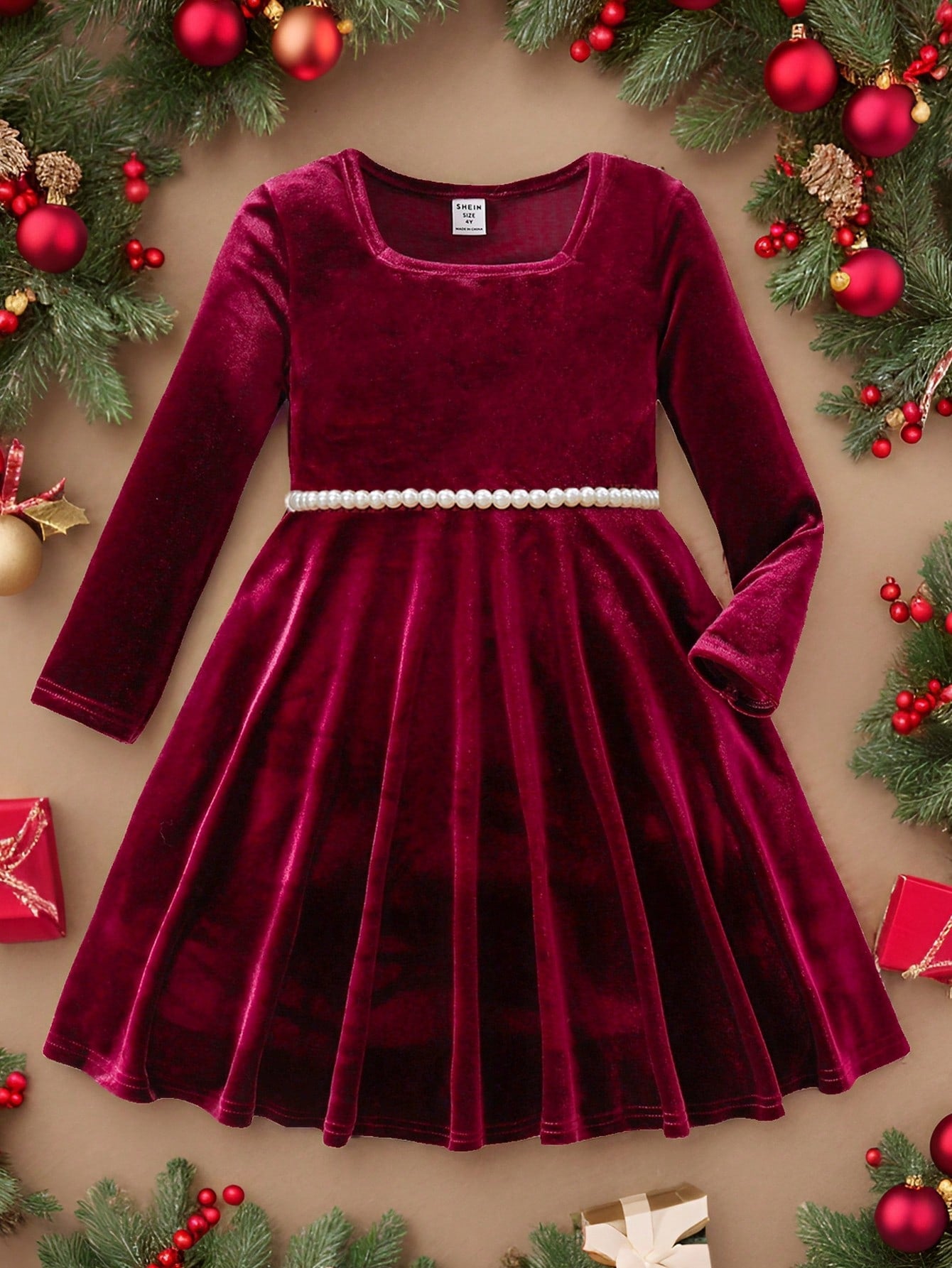 فستان مربع الرقبة مخطط مشغول بنمط الأزهار والحلقات والشريط ناعم وذو قصة مستقيمة