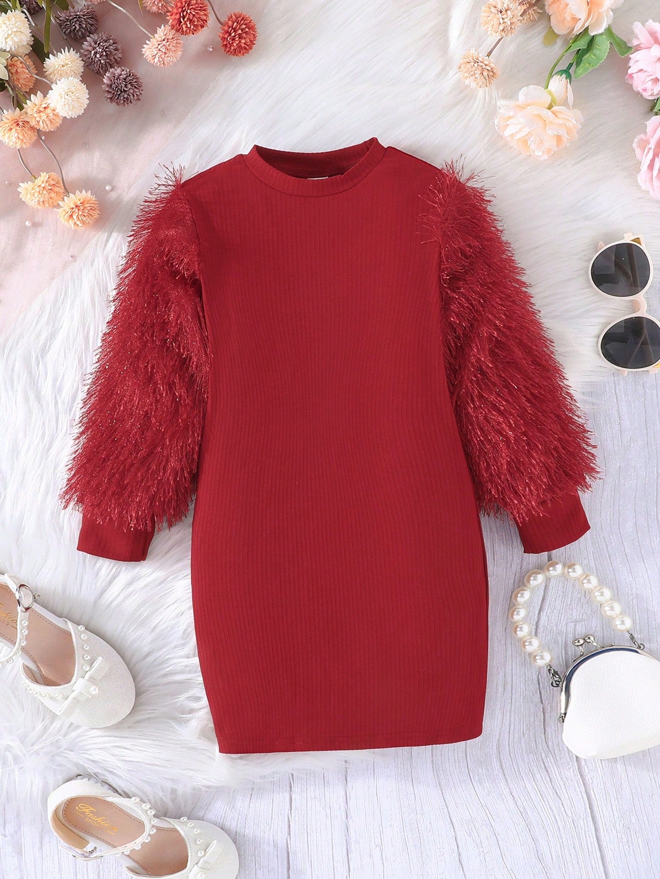 فستان مقلم زغبي بنت طفل