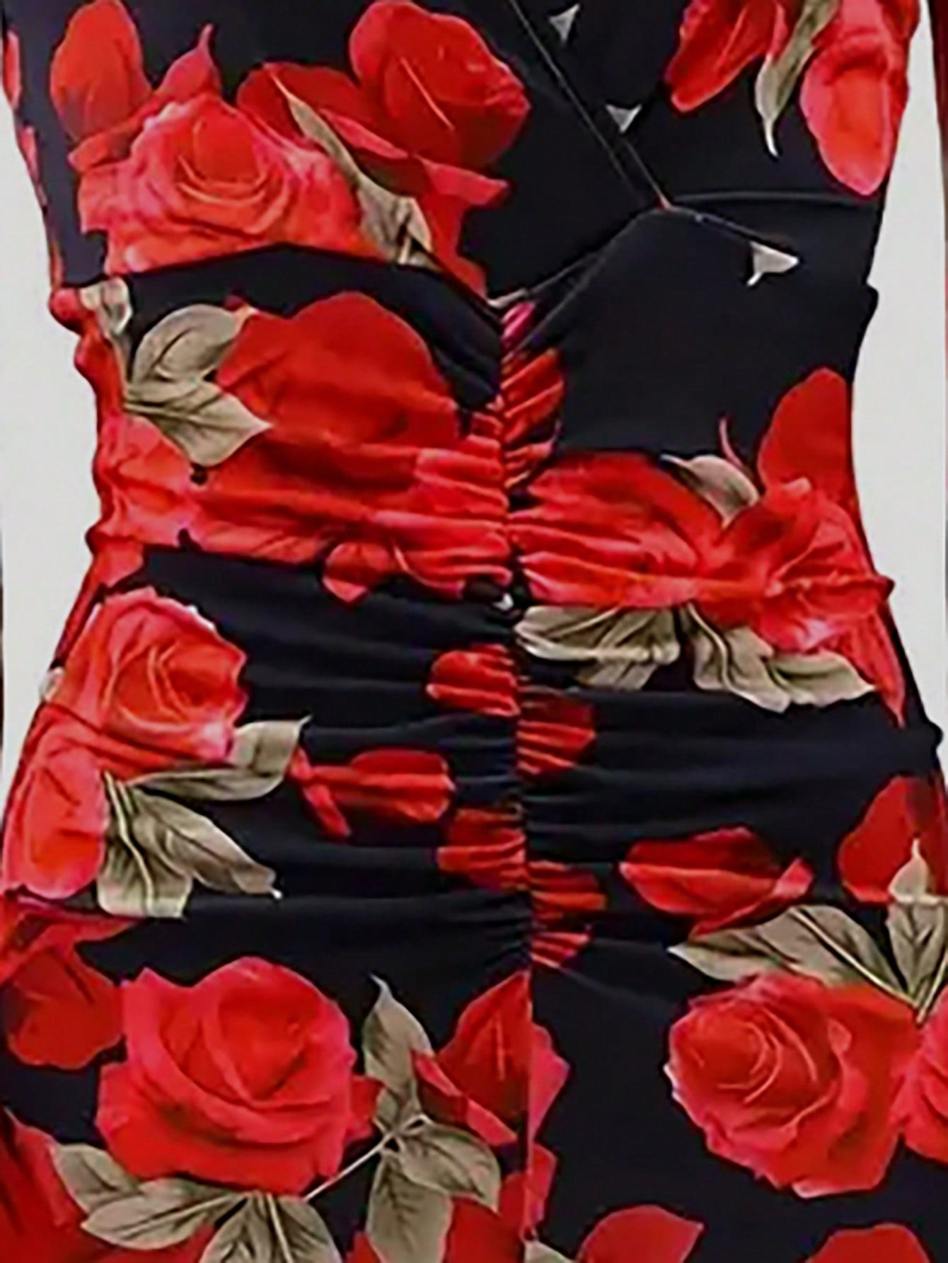 فستان نسائي بأكمام الفانوس وطبعات زهرية بشق