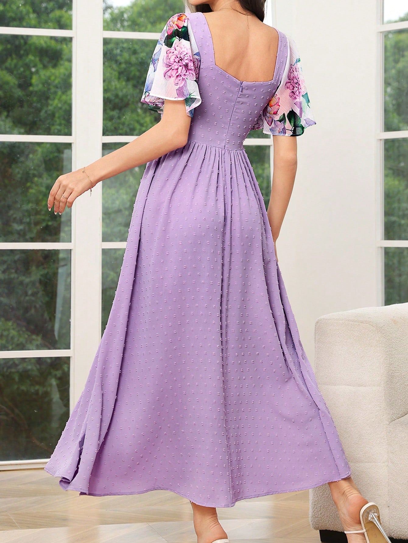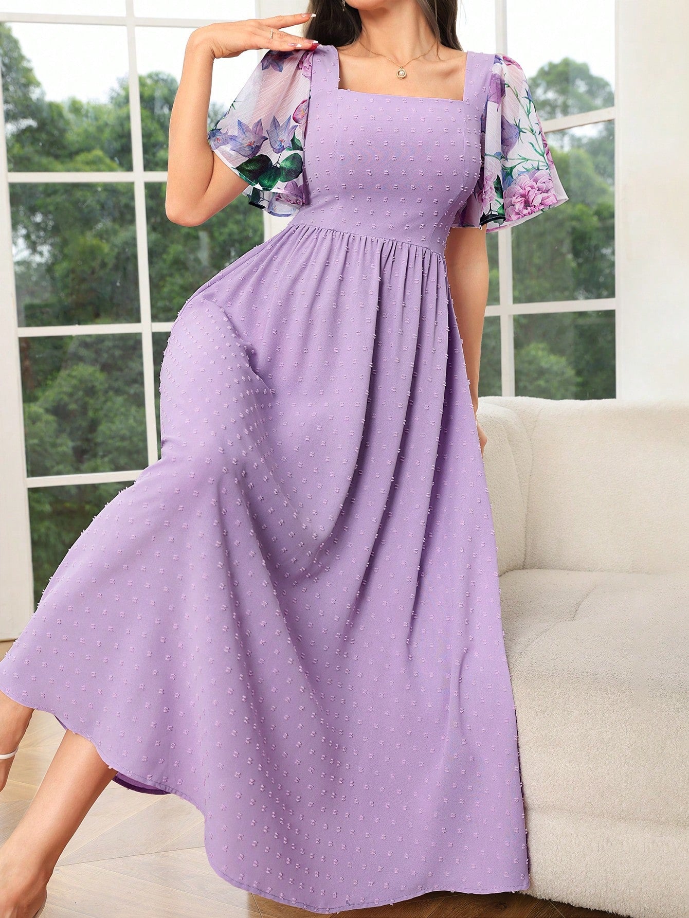 فستان نسائي بأكمام قصيرة بسيط يومي مطبوع