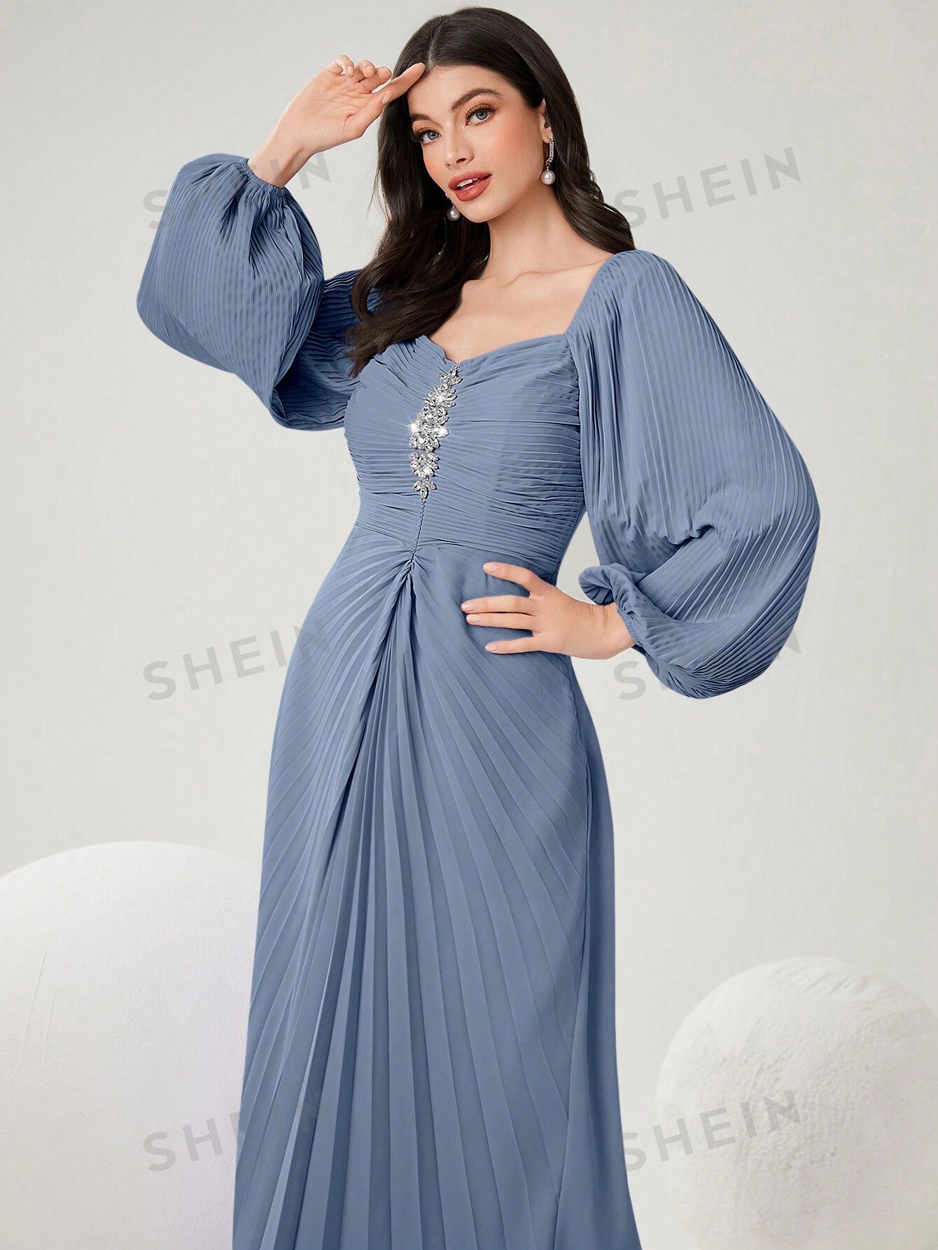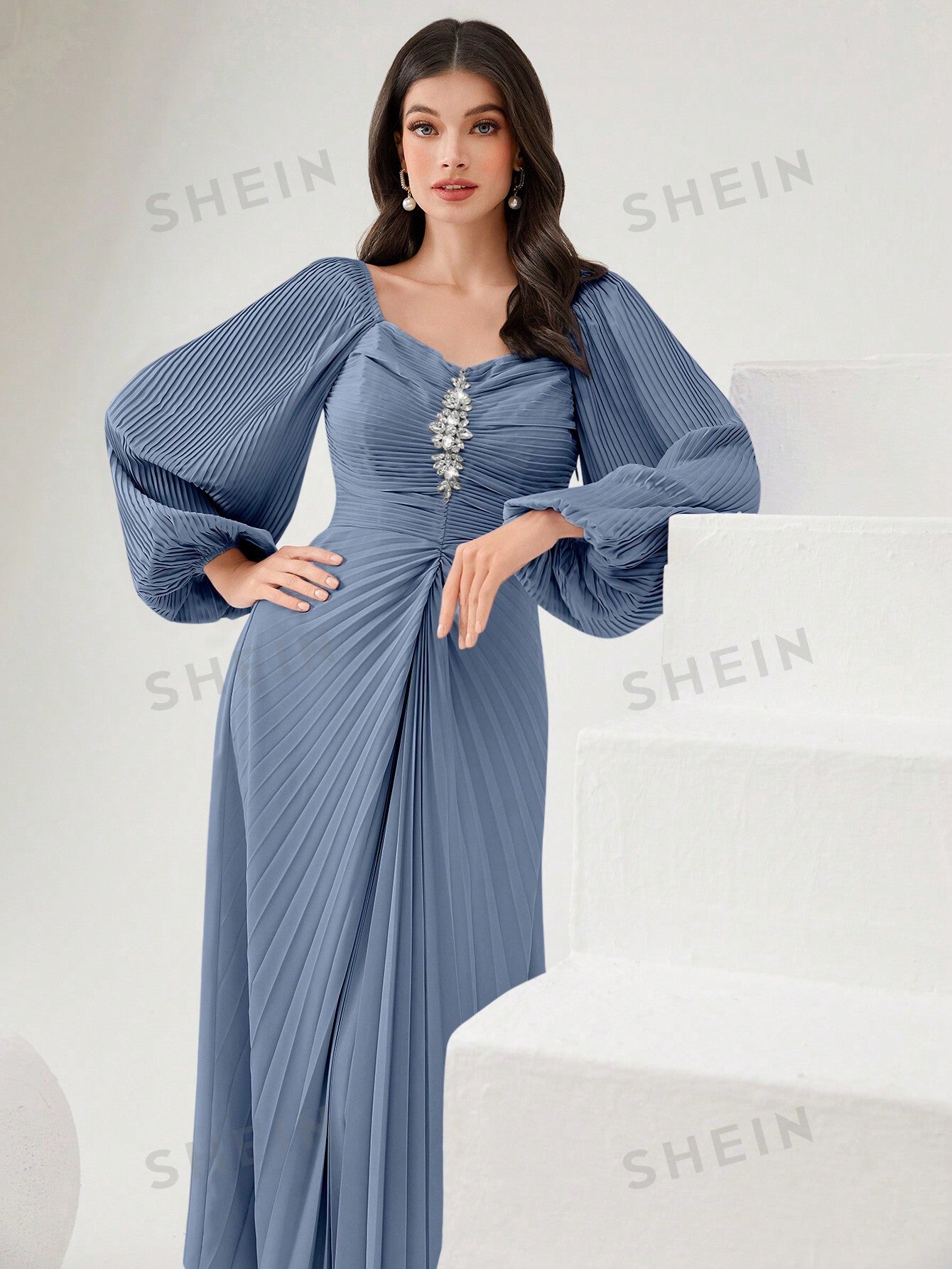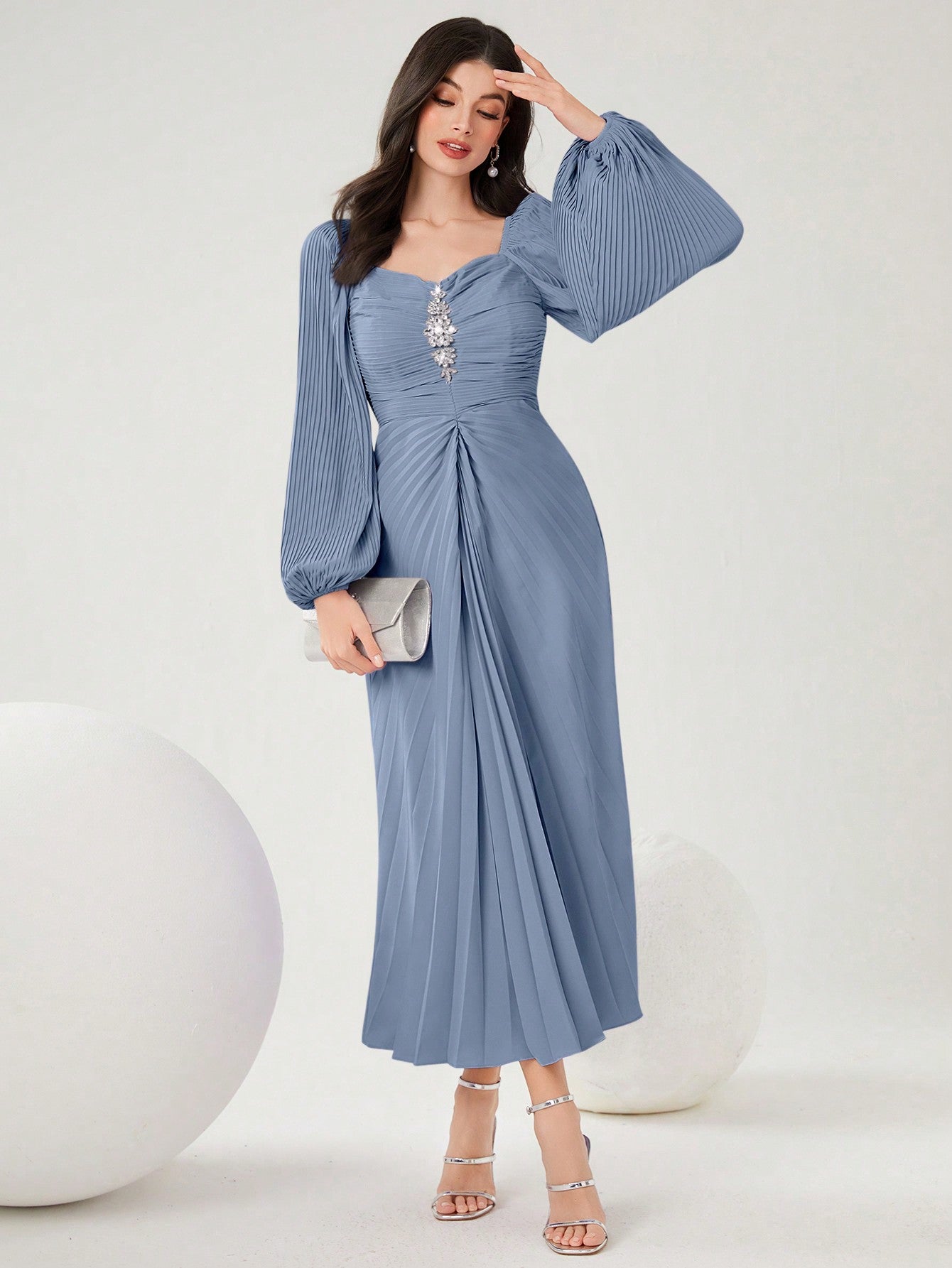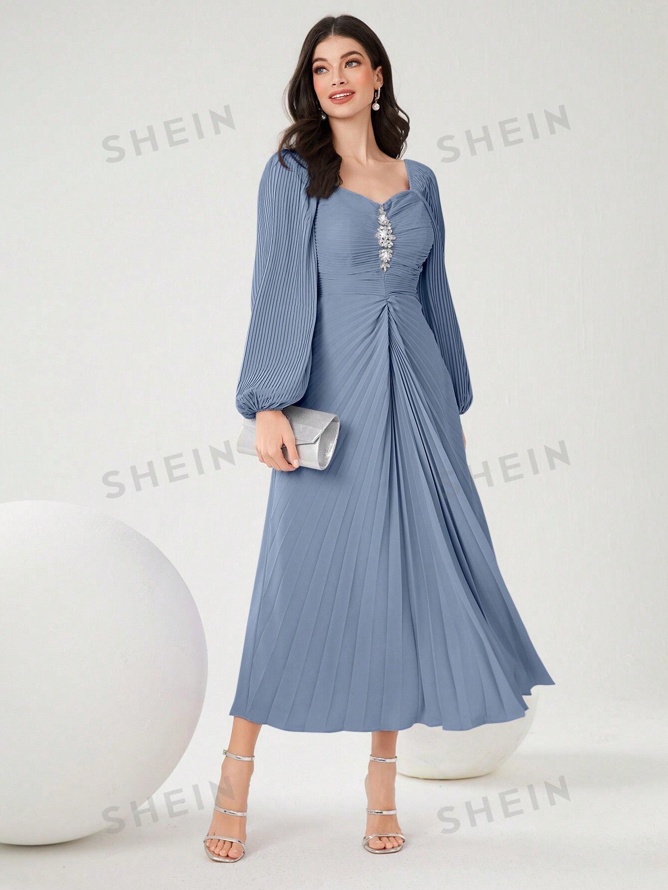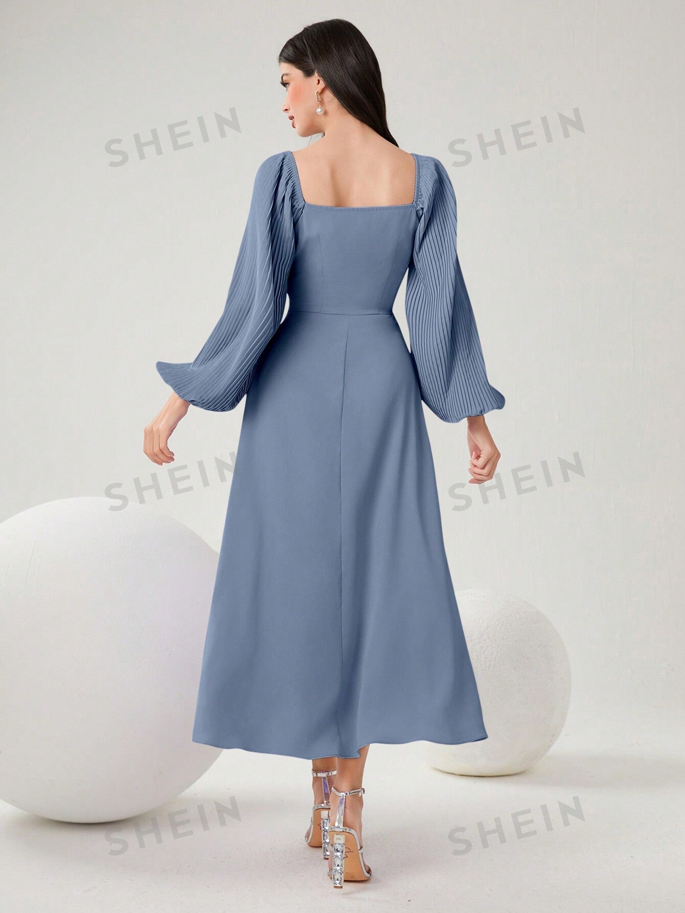 فستان نسائي بلون صلب وتصميم يتميز بقطعة منسدلة عند الرقبة بشكل القلب