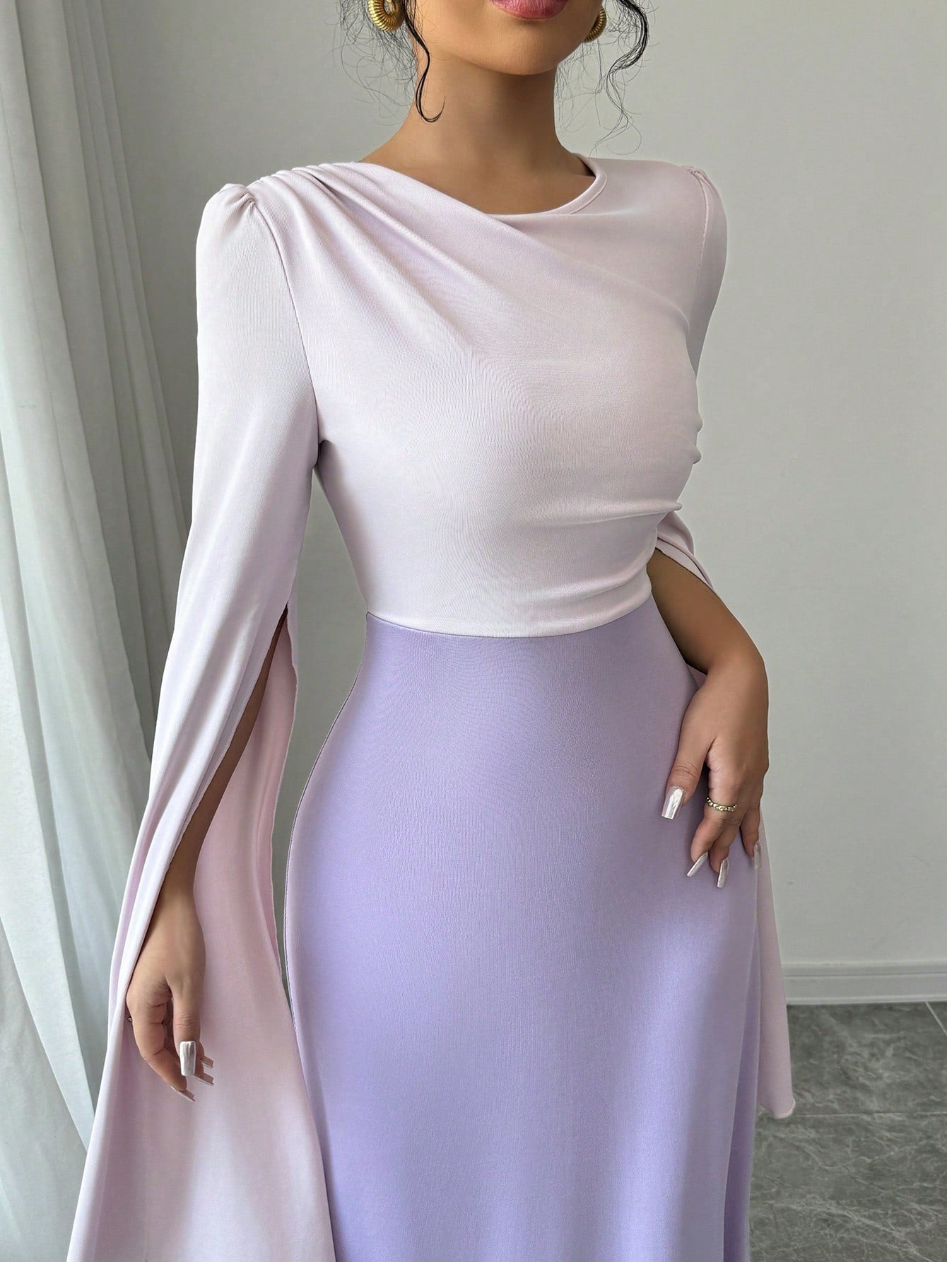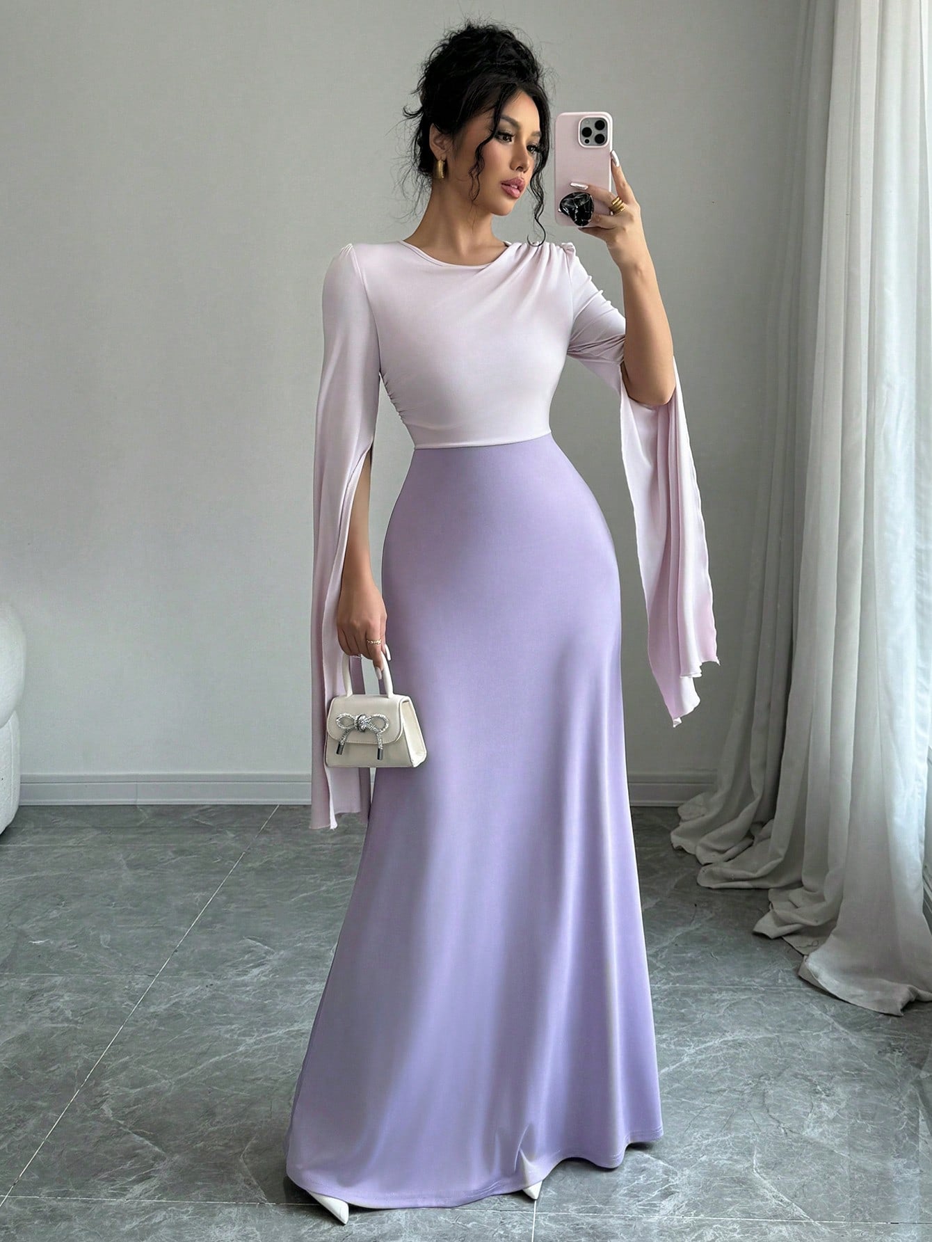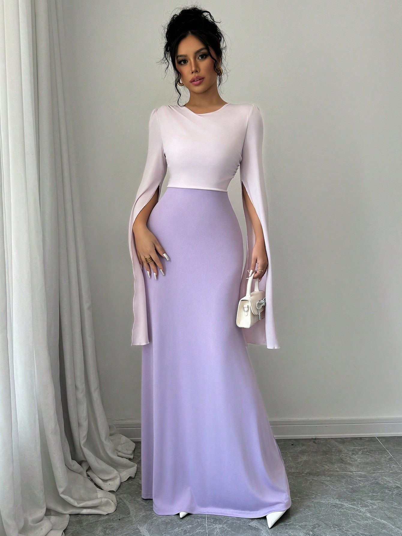 فستان نسائي طويل ذو أكمام منفصلة واسعة مخضر الذيل