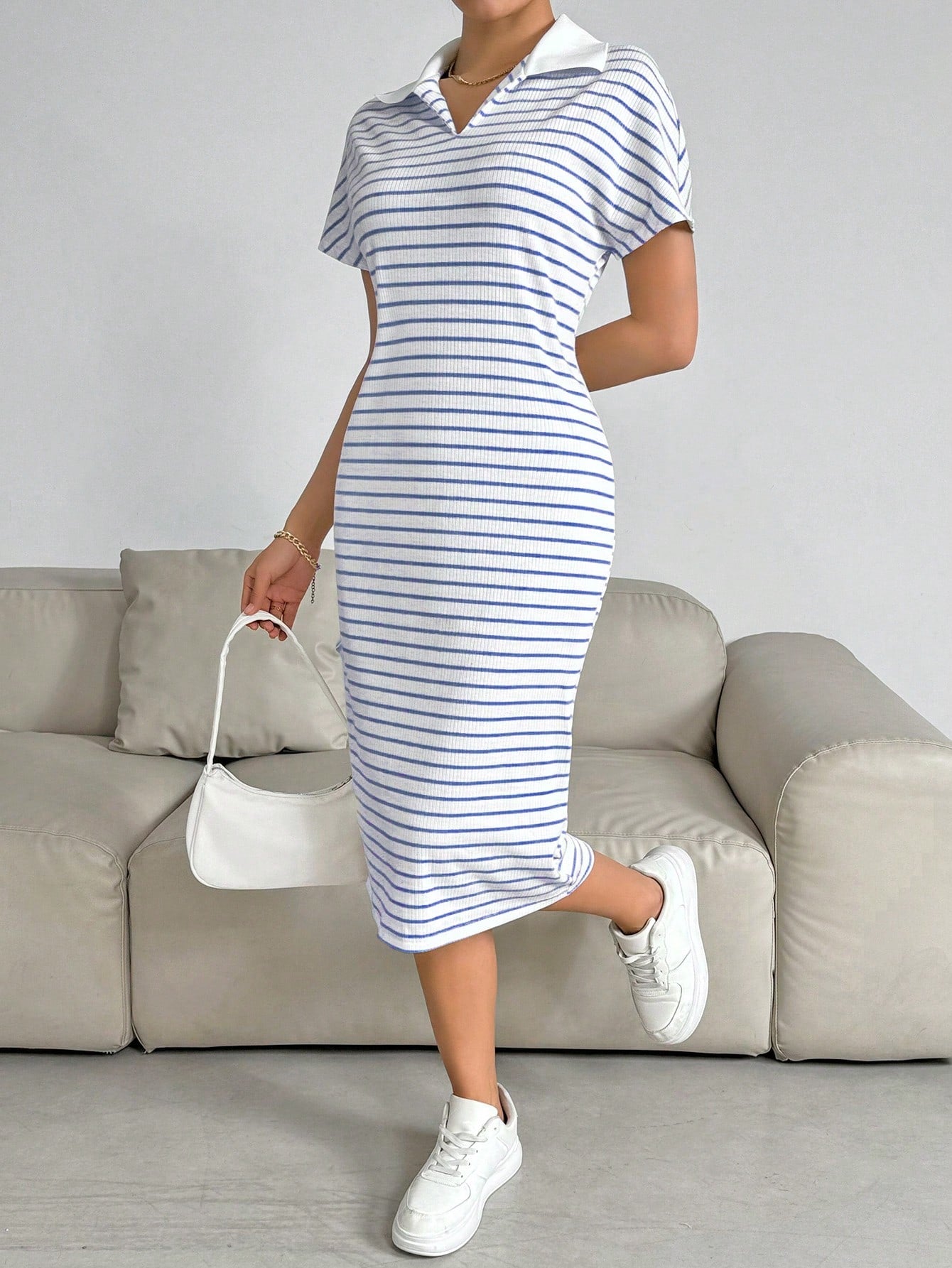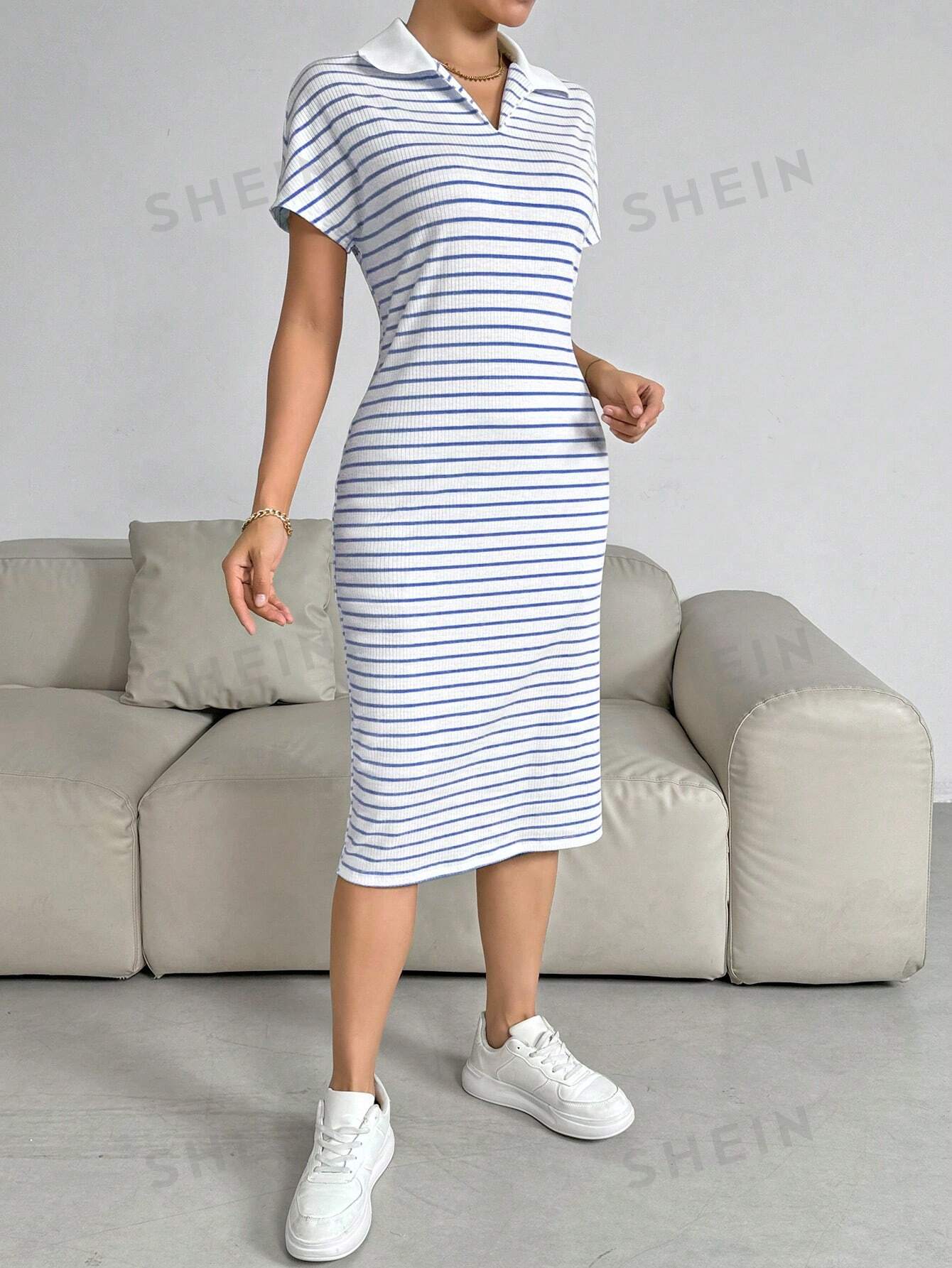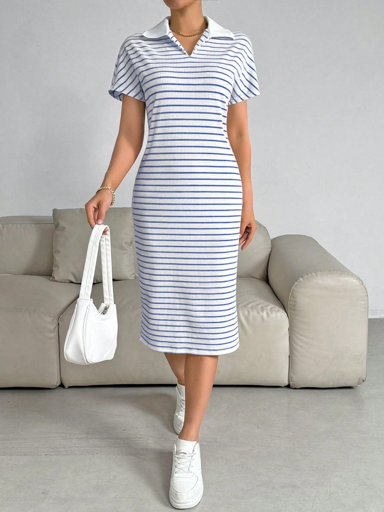 فستان نسائي مريح بالخطوط للارتداء اليومي في فصل الصيف