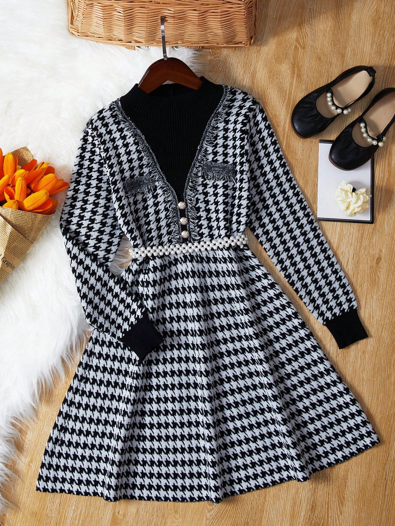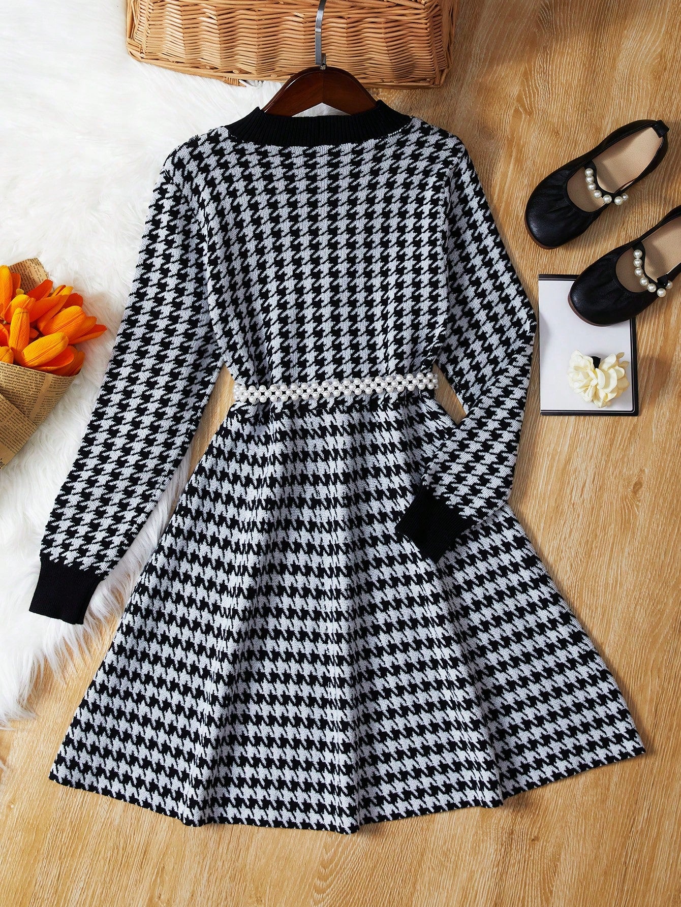 فستان نمط مسنن بتفاصيل رفرف بدون حزام بنت طفل