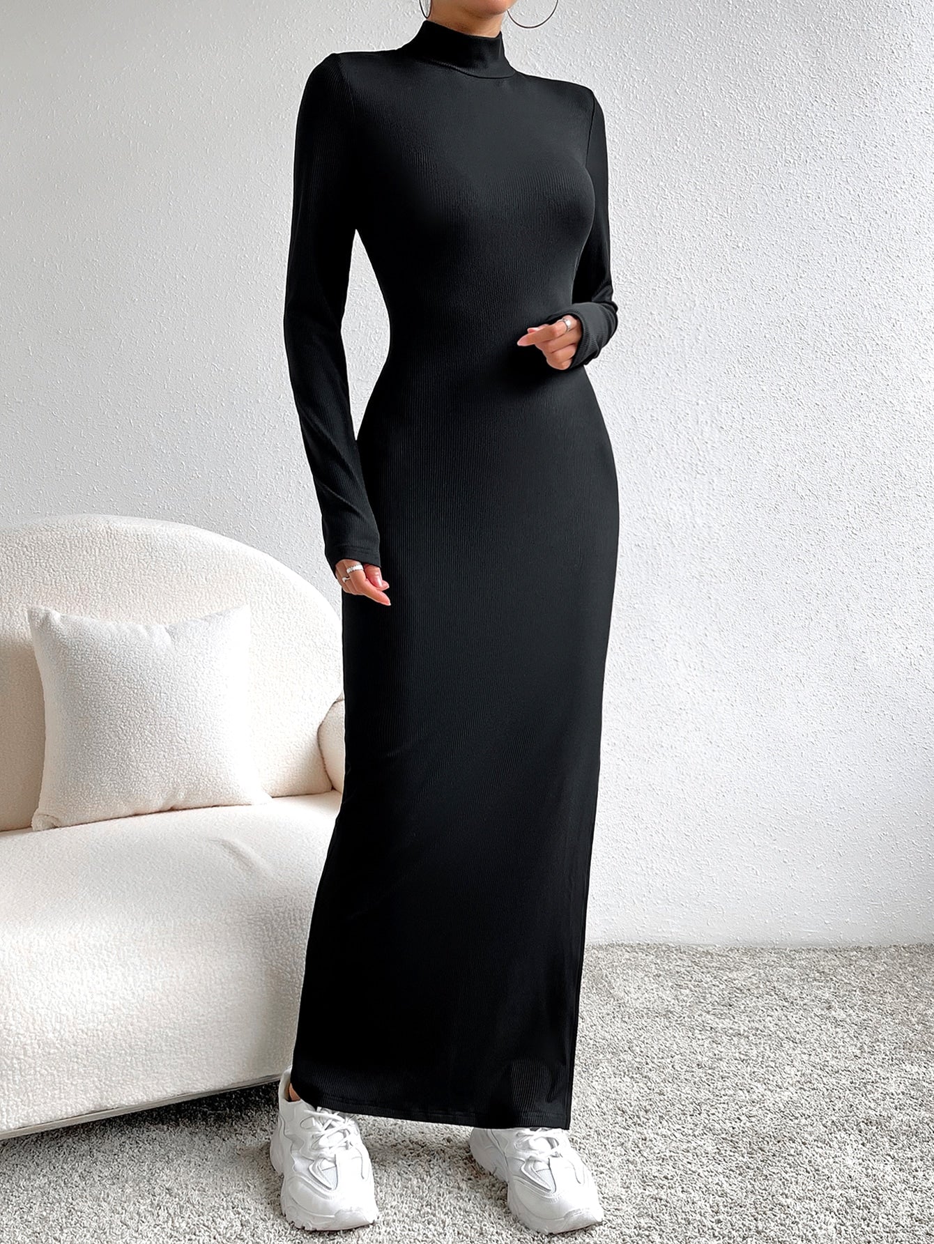 فستان وقوف الياقة فتحة للفخذ