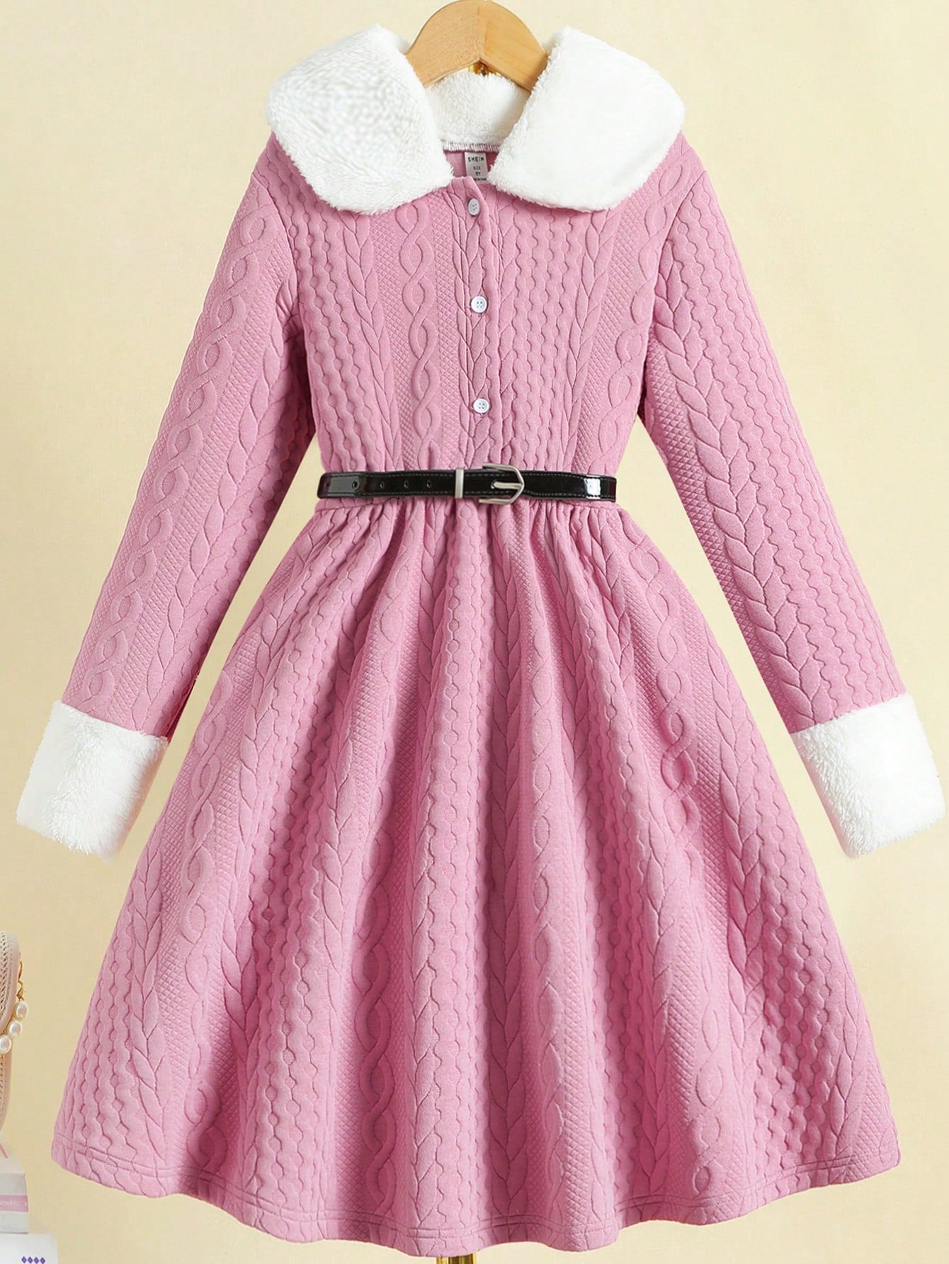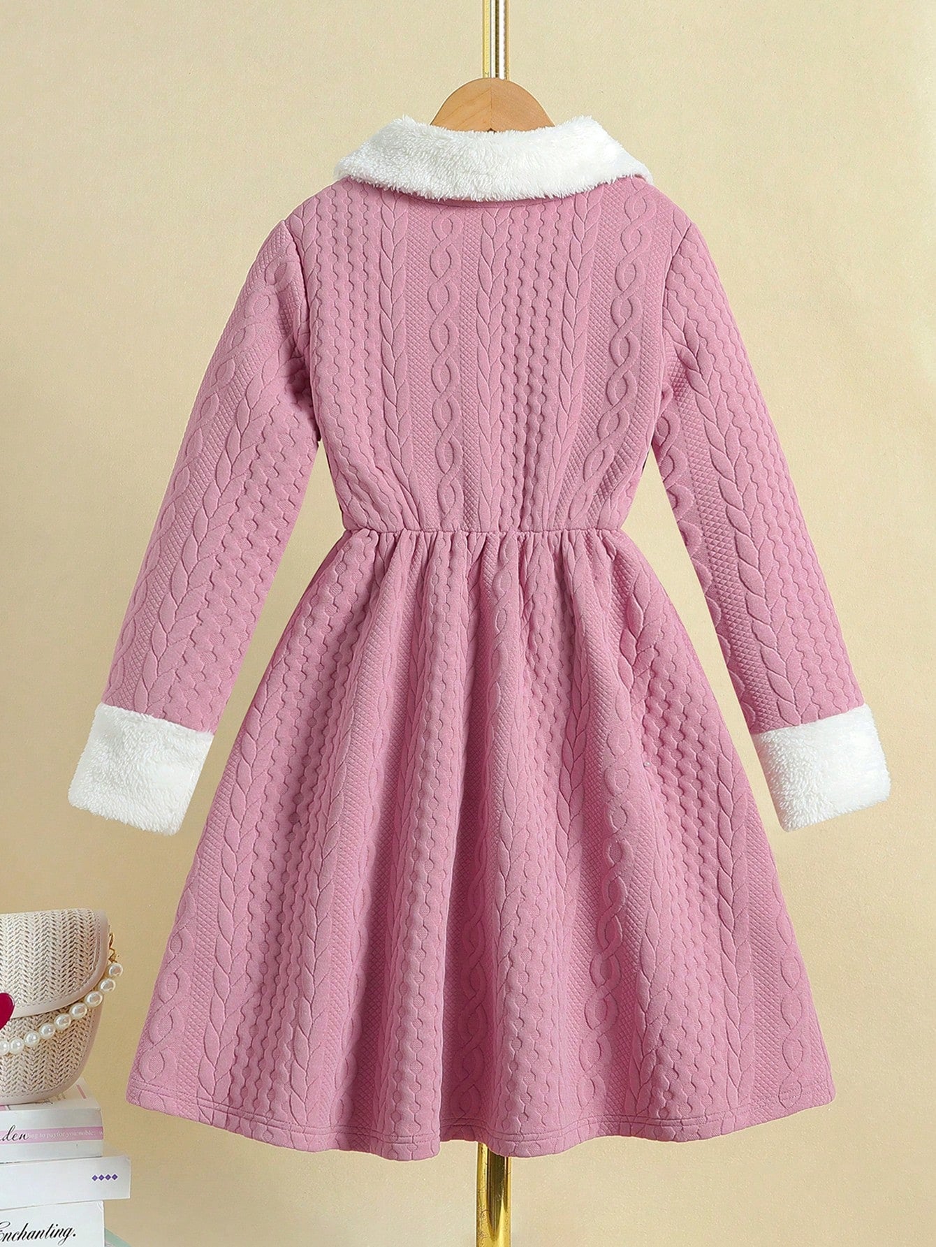 فستان ياقة بورغ محكم بدون حزام بنت طفل