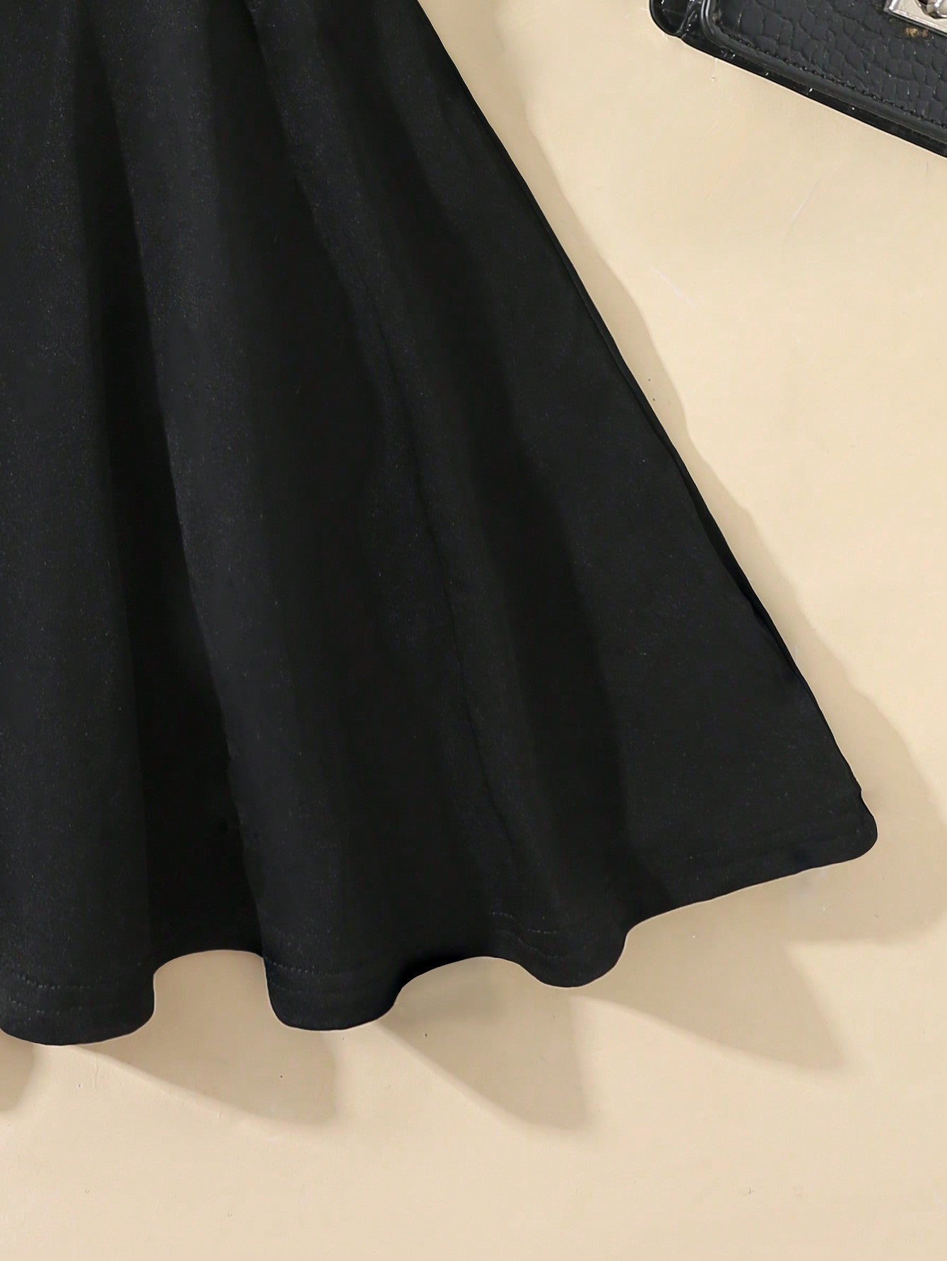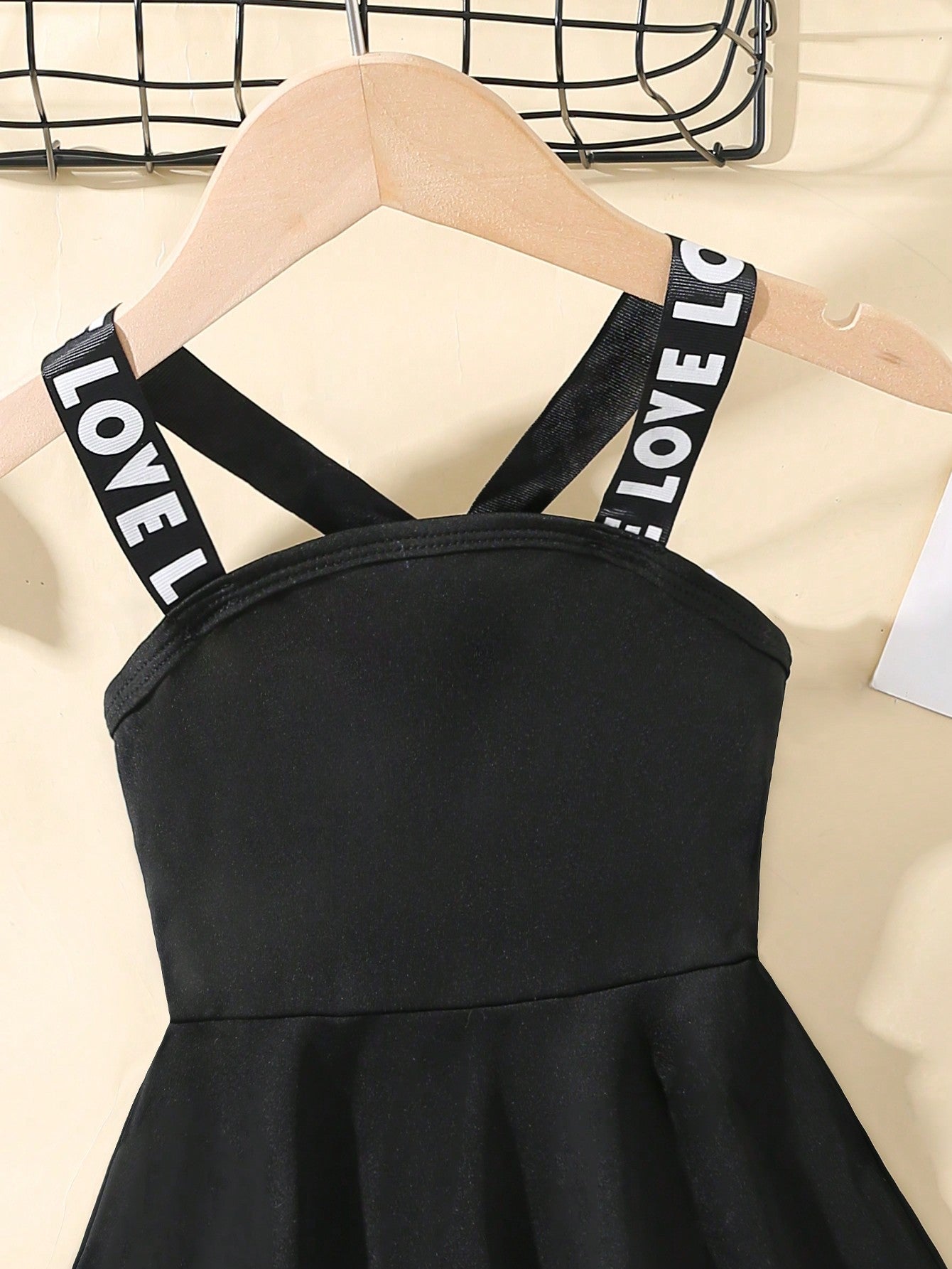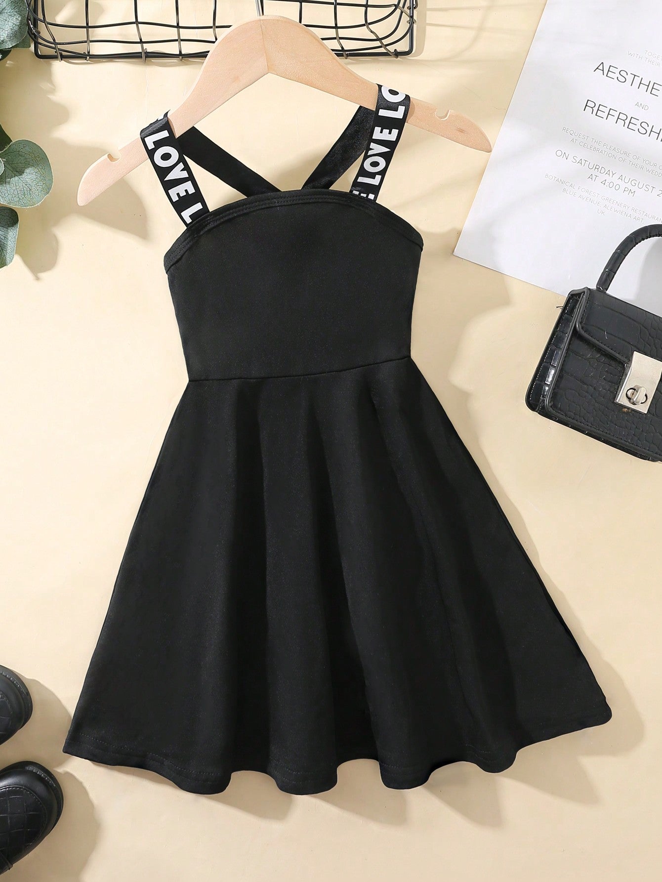 فستان A-Line عارض للفتيات باللون الصلب مع حمالات الكتف المطبوعة بالحروف