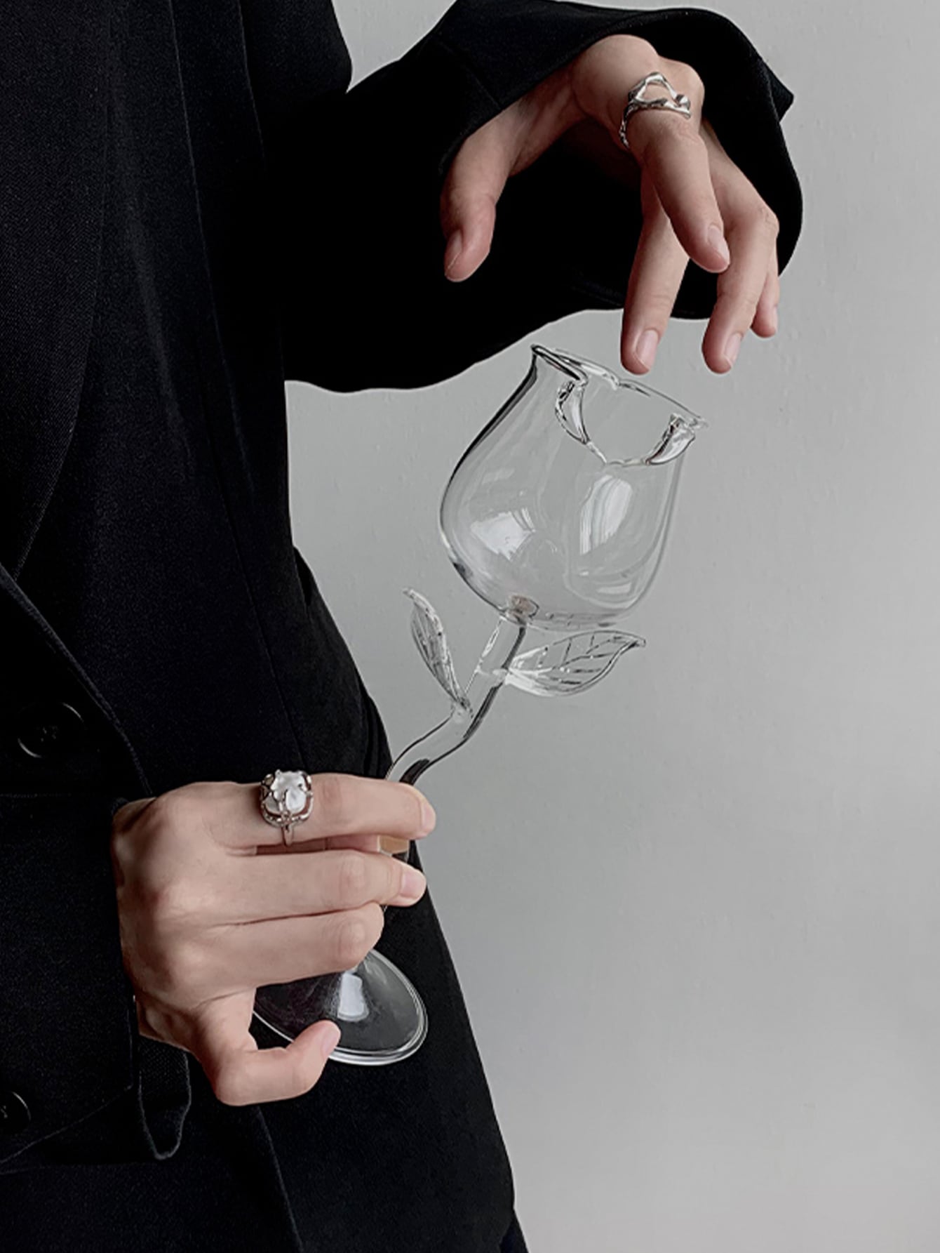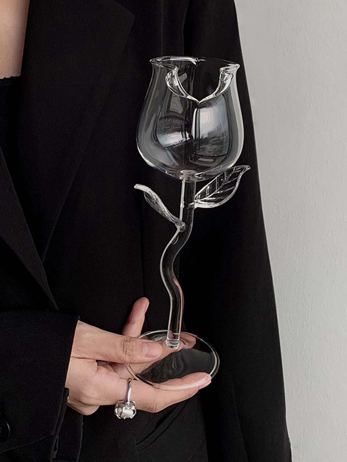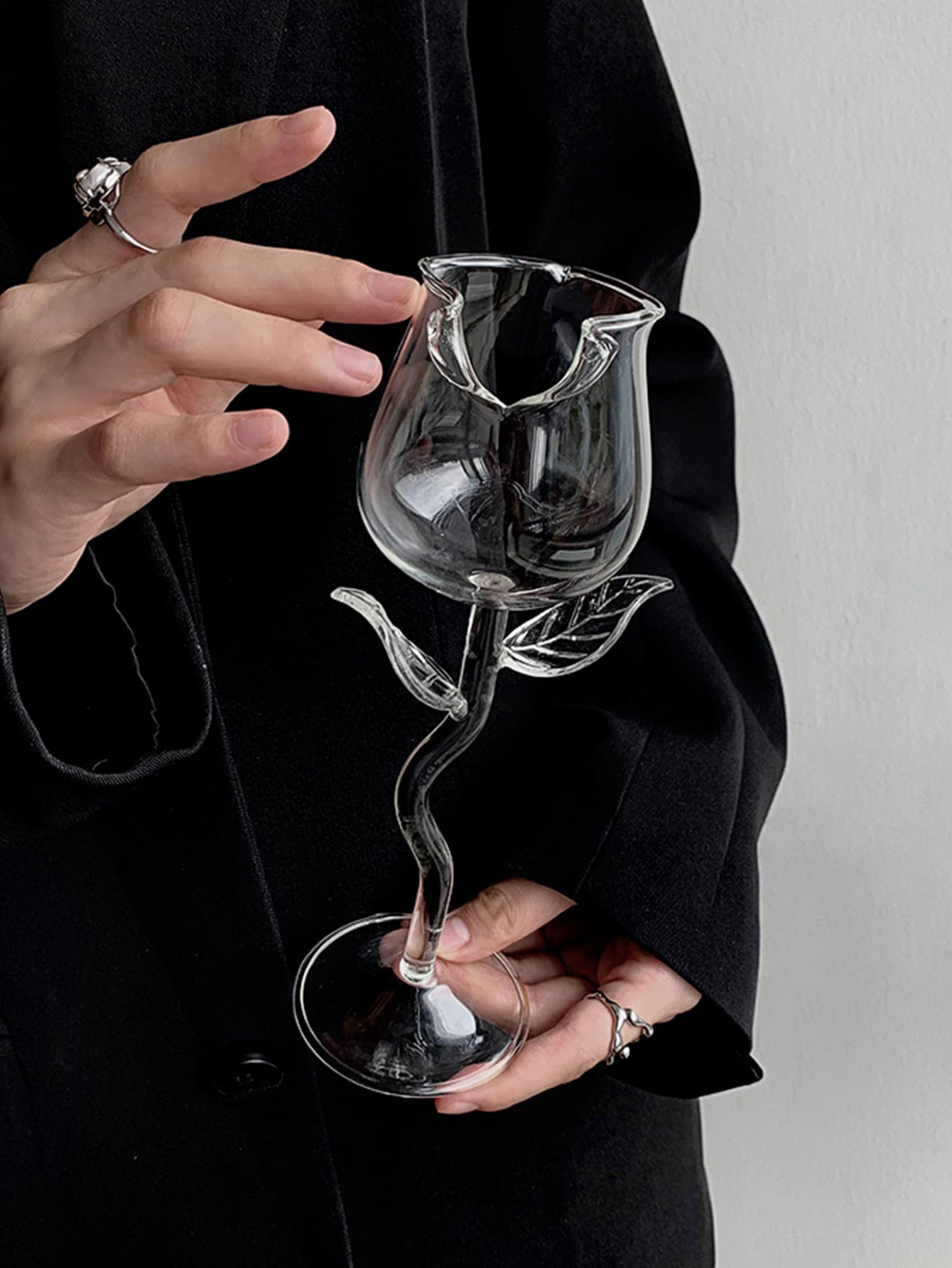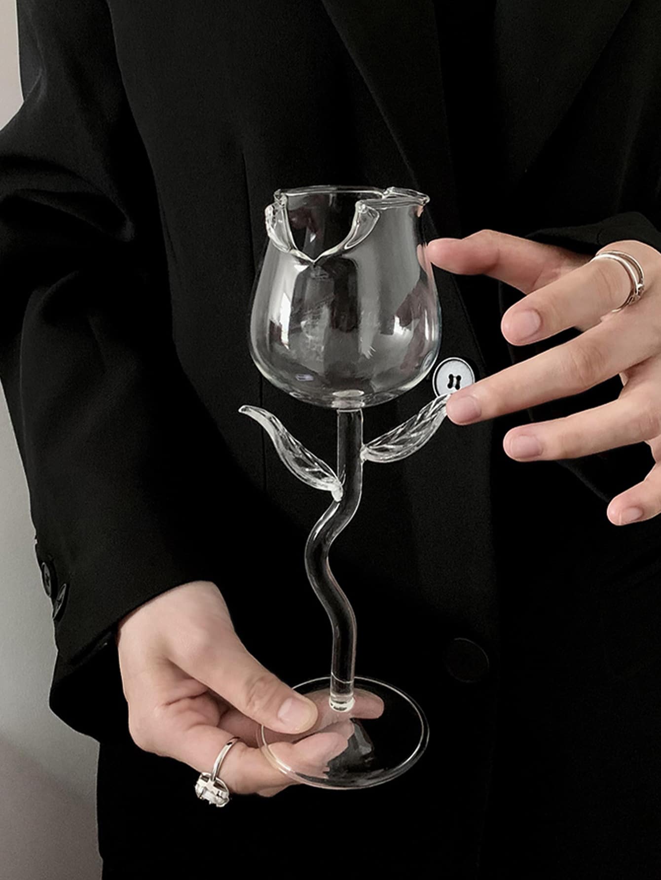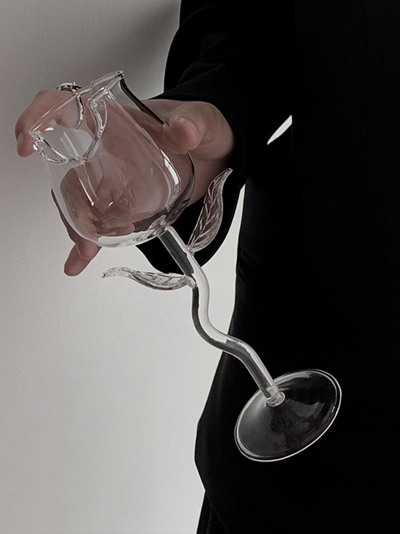 فنجان عالي زجاج مع وردة شكل , إبداع و بخير تصميم قطعة واحدة