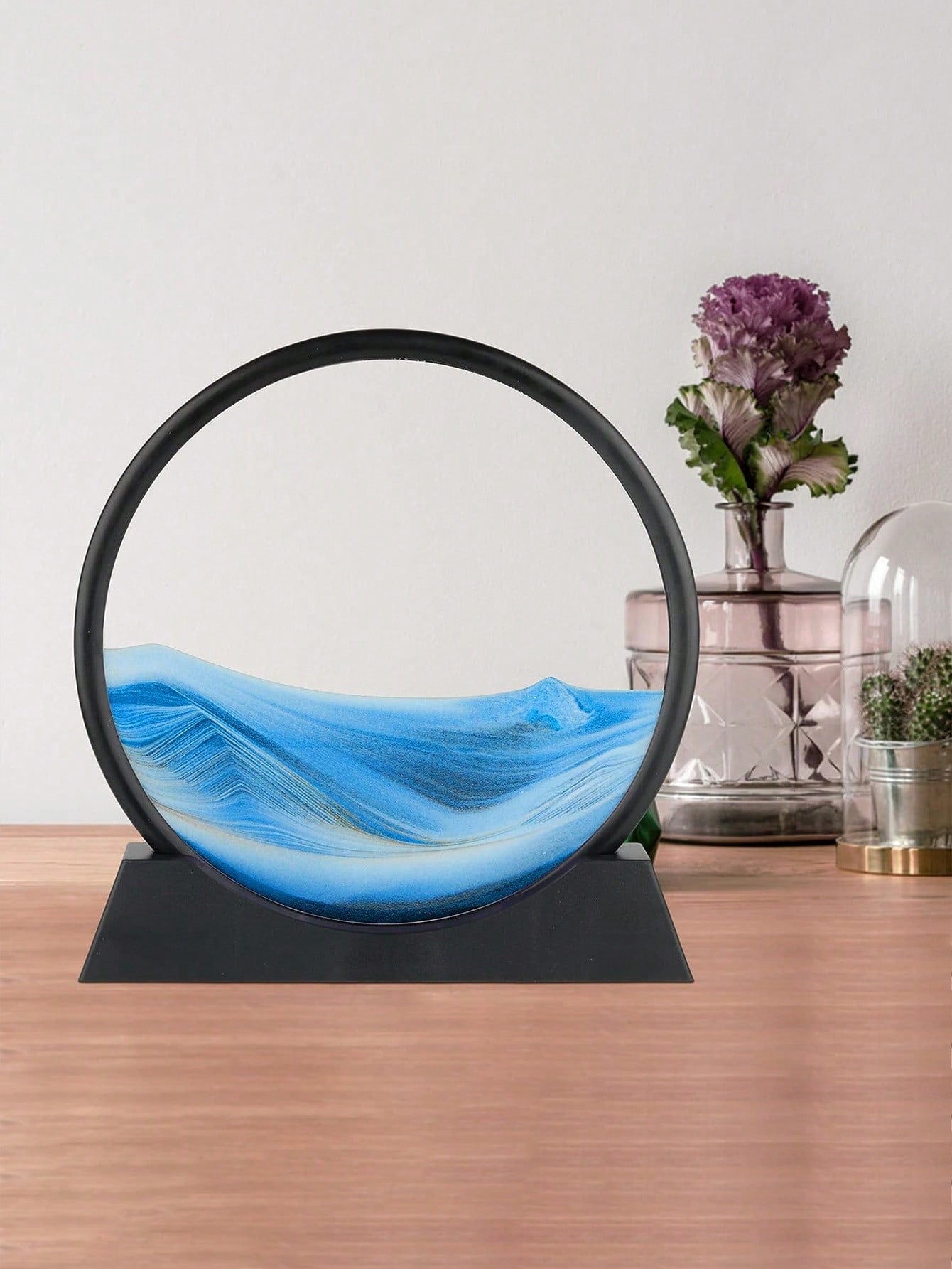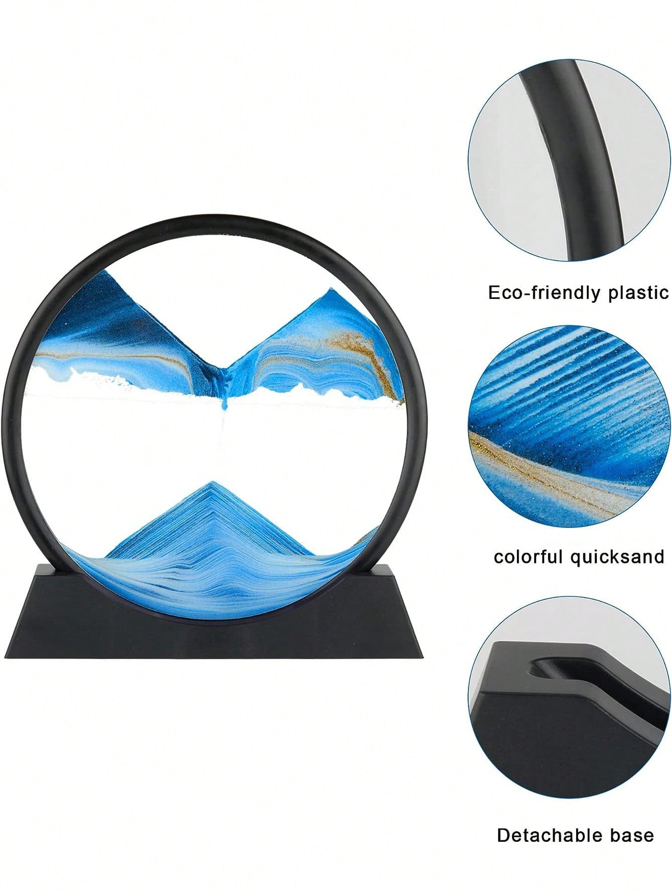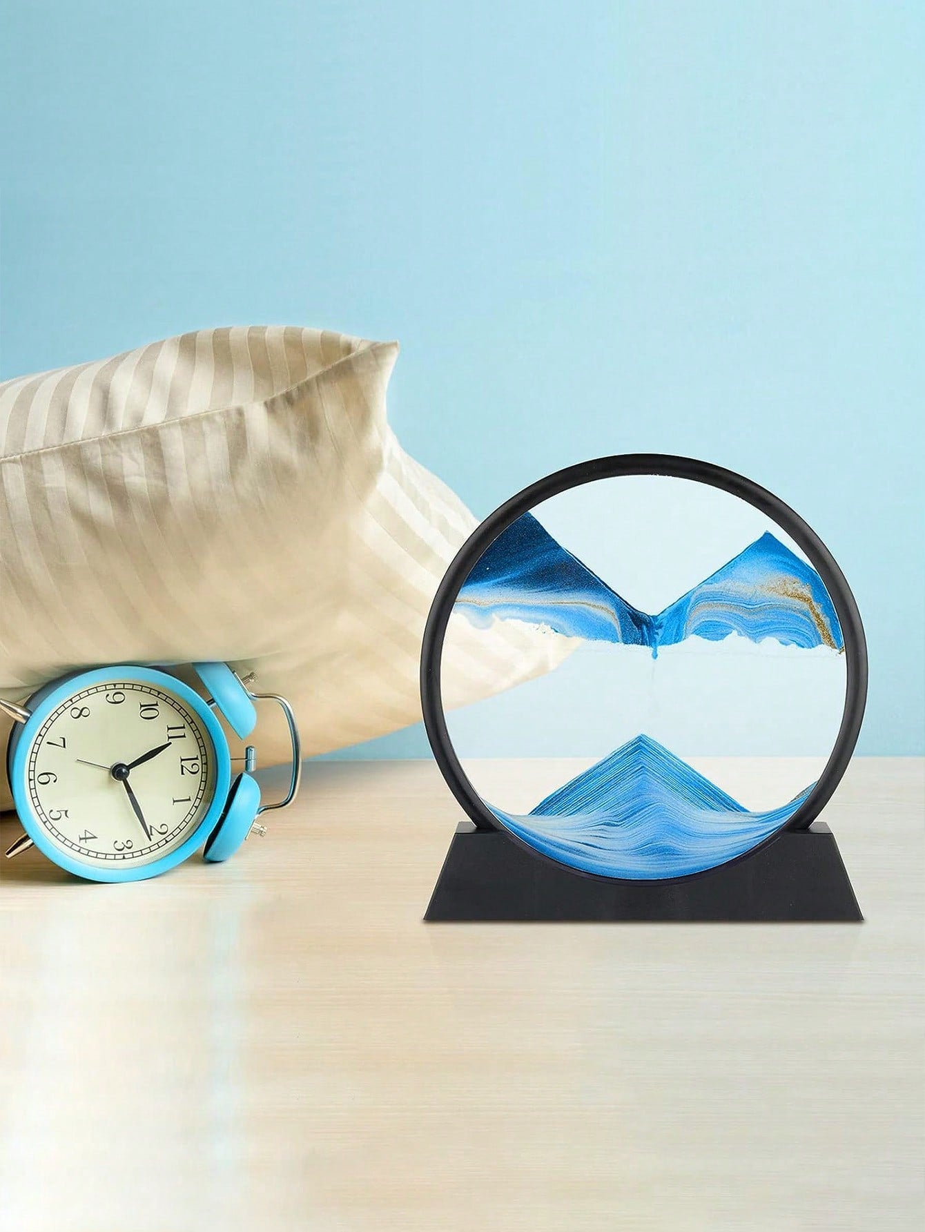 فن الرمل المتحرك ثلاثي الأبعاد المزخرف بالزجاج المناسب لديكور المكتب أو المنزل، اطار صورة الساعة الرملية الديناميكية الزرقاء المحيطية - صورة رملية مكتبية