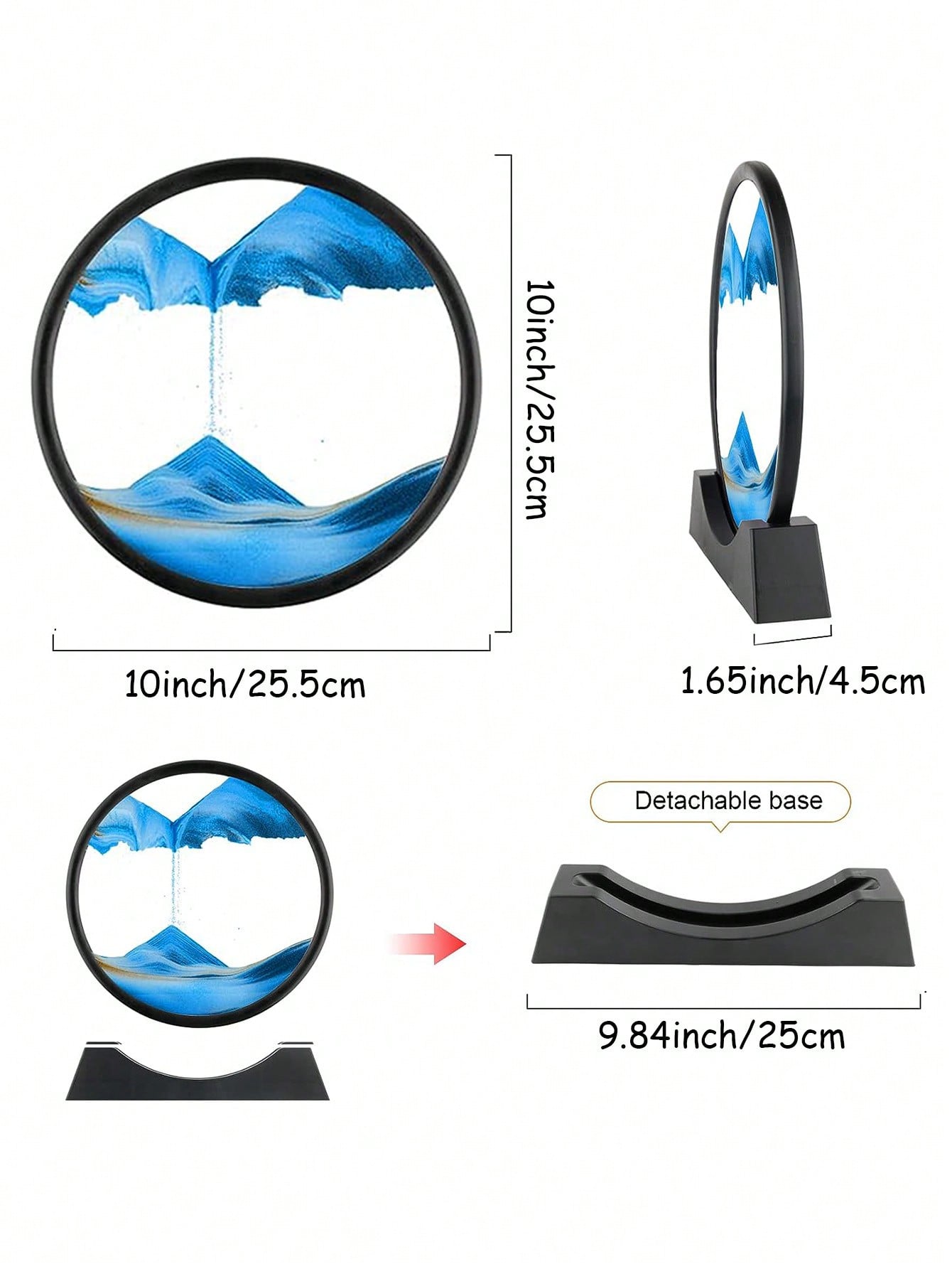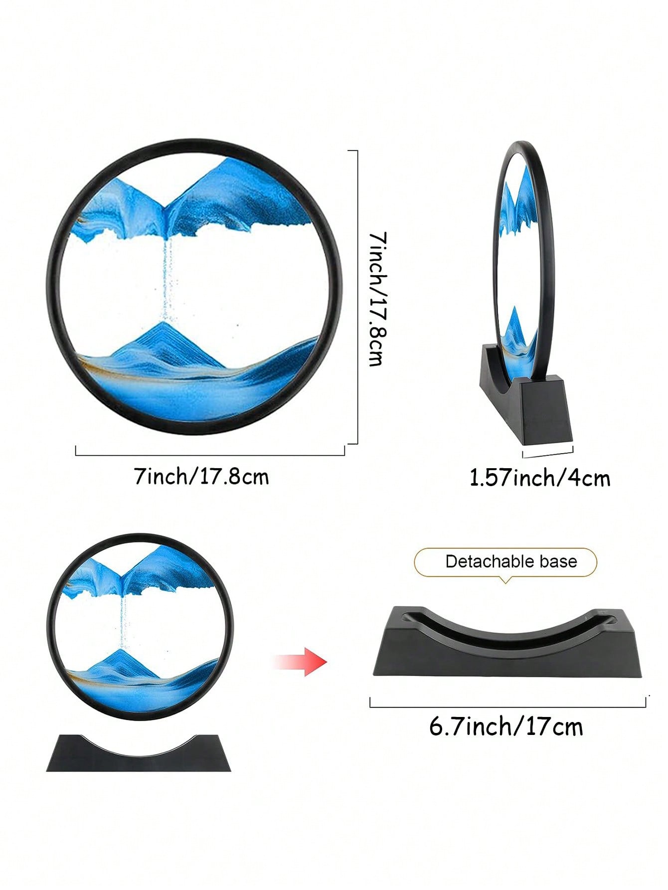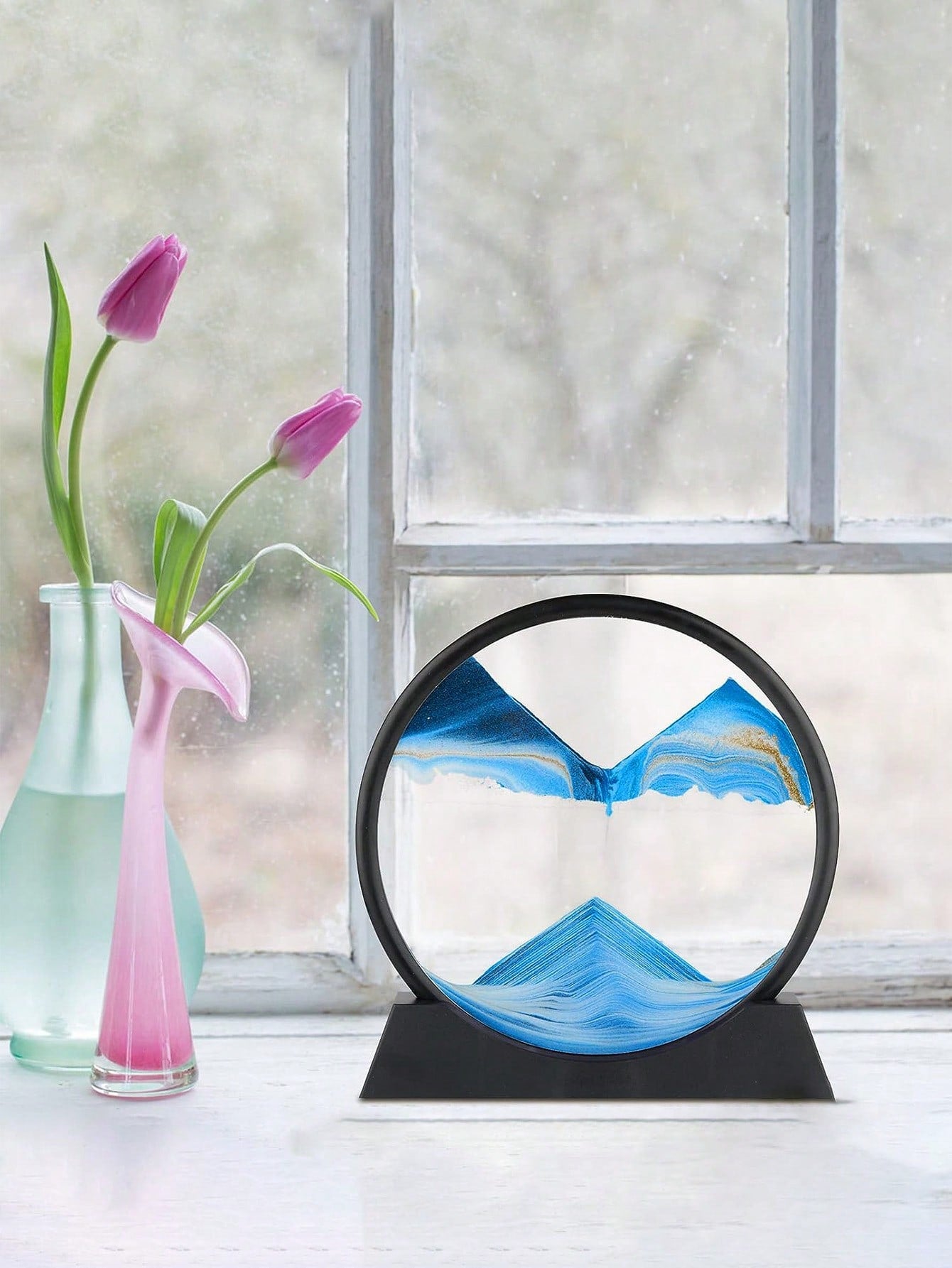 فن الرمل المتحرك ثلاثي الأبعاد المزخرف بالزجاج المناسب لديكور المكتب أو المنزل، اطار صورة الساعة الرملية الديناميكية الزرقاء المحيطية - صورة رملية مكتبية